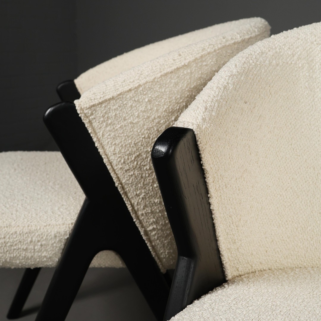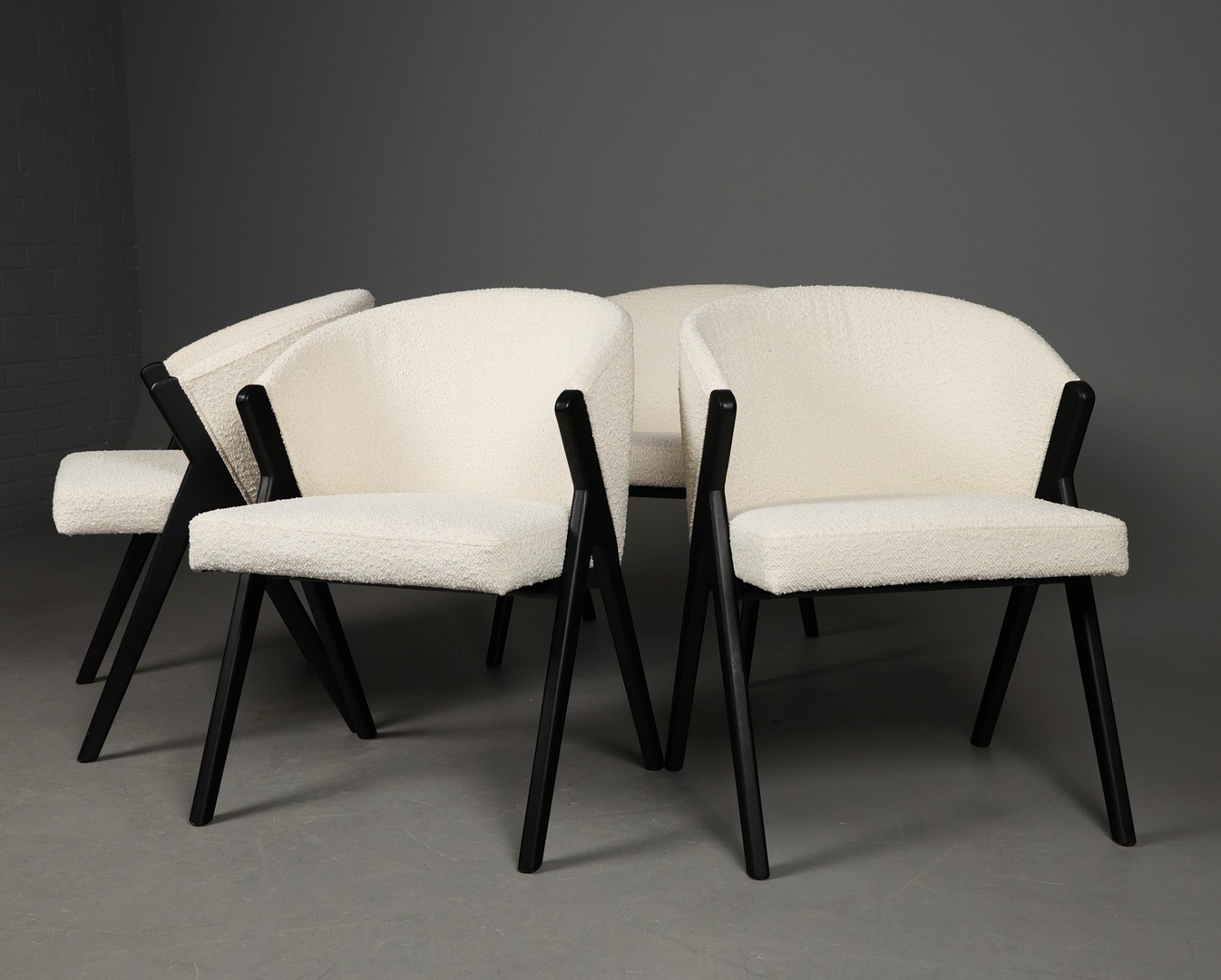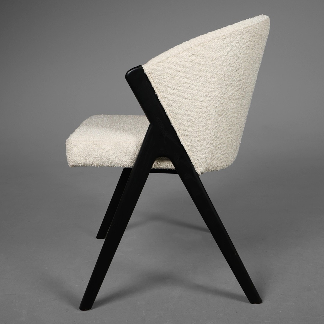 ANDREW MARTIN CIRI DINING CHAIRS, A SET OF FOUR (4). white boucle upholstery, 80cm H x 59cm W x 60cm D.