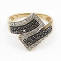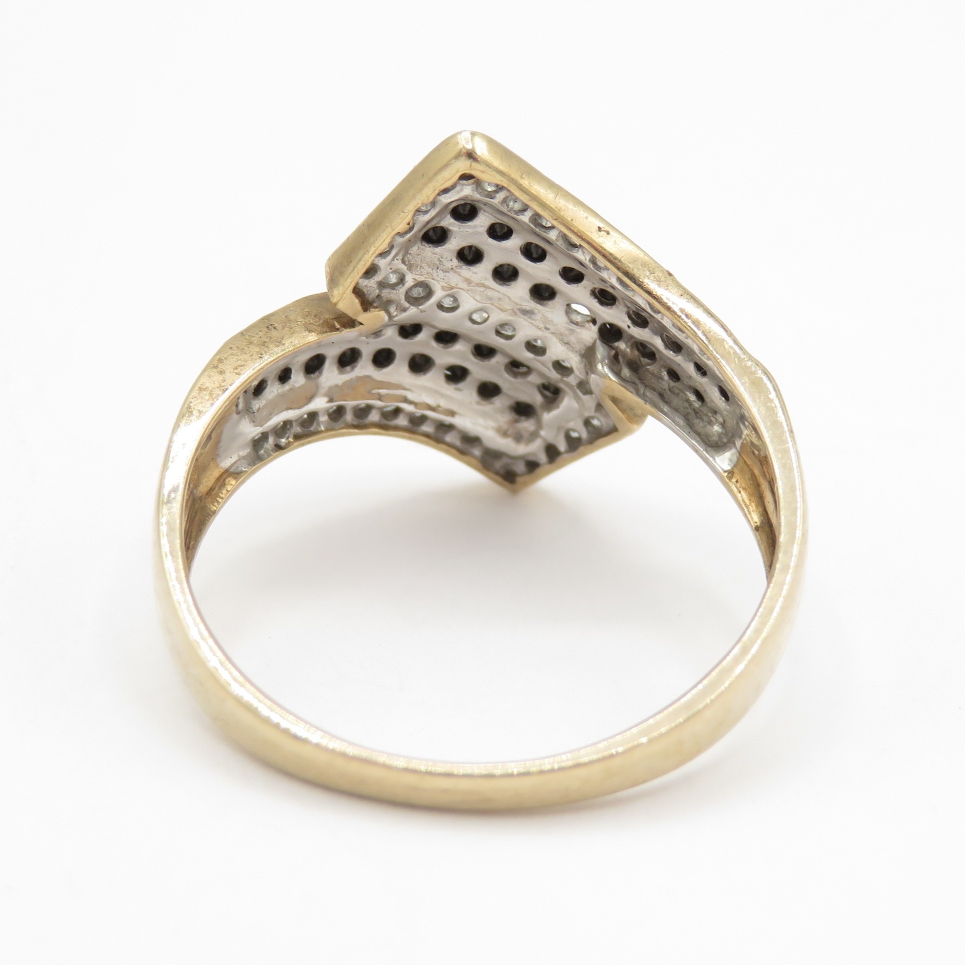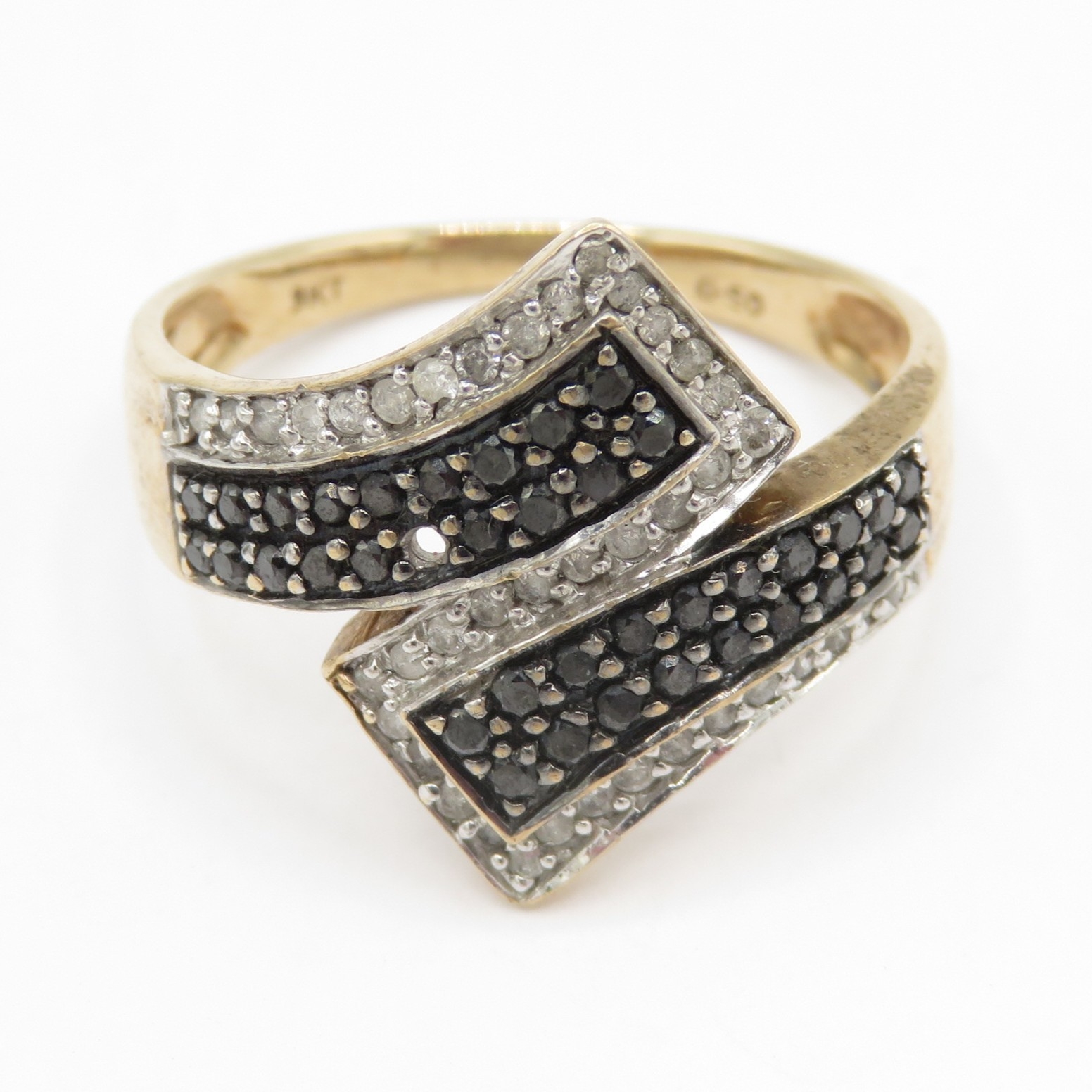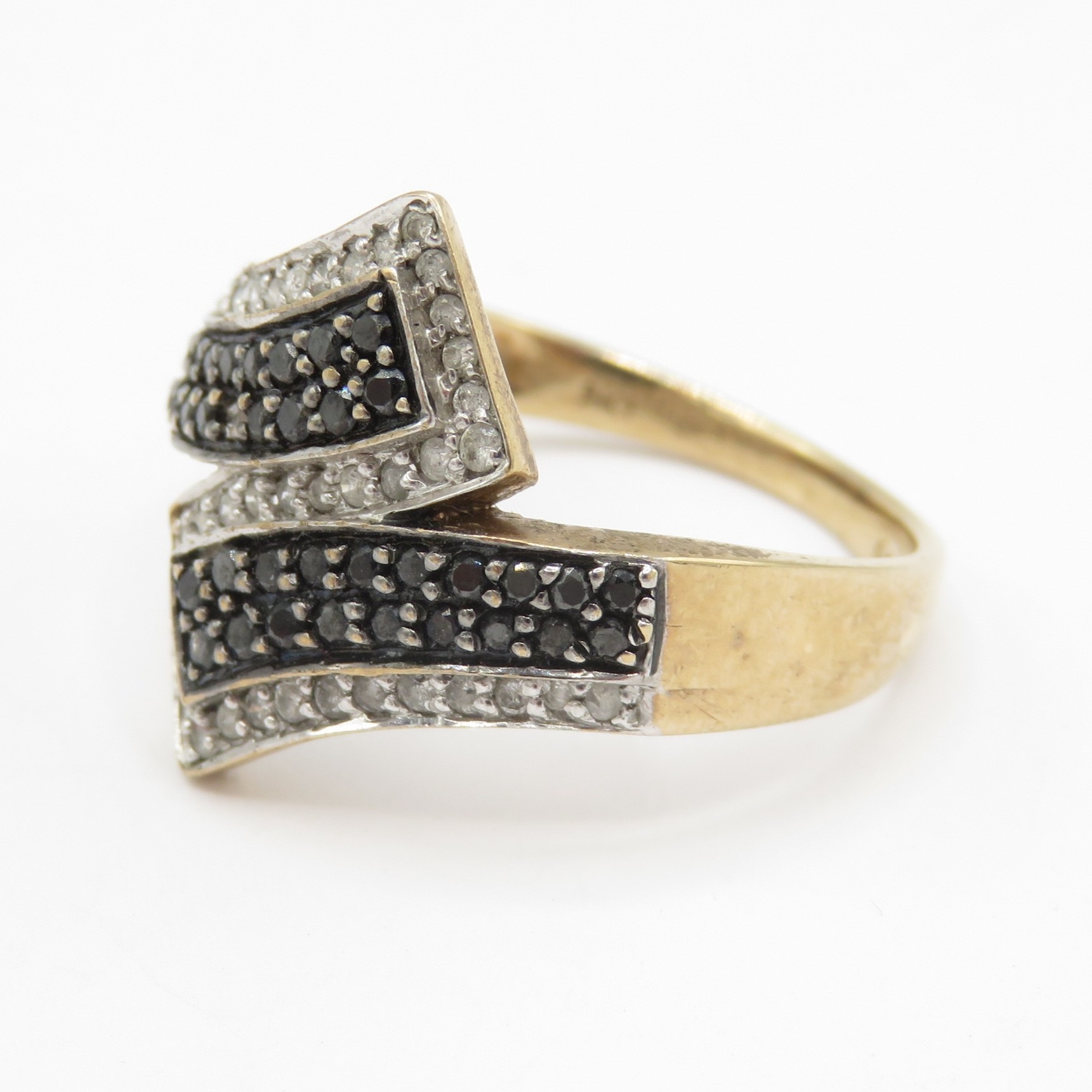 9ct gold diamond and black moissanite wrap ring - stone missing (2.8g) Size P