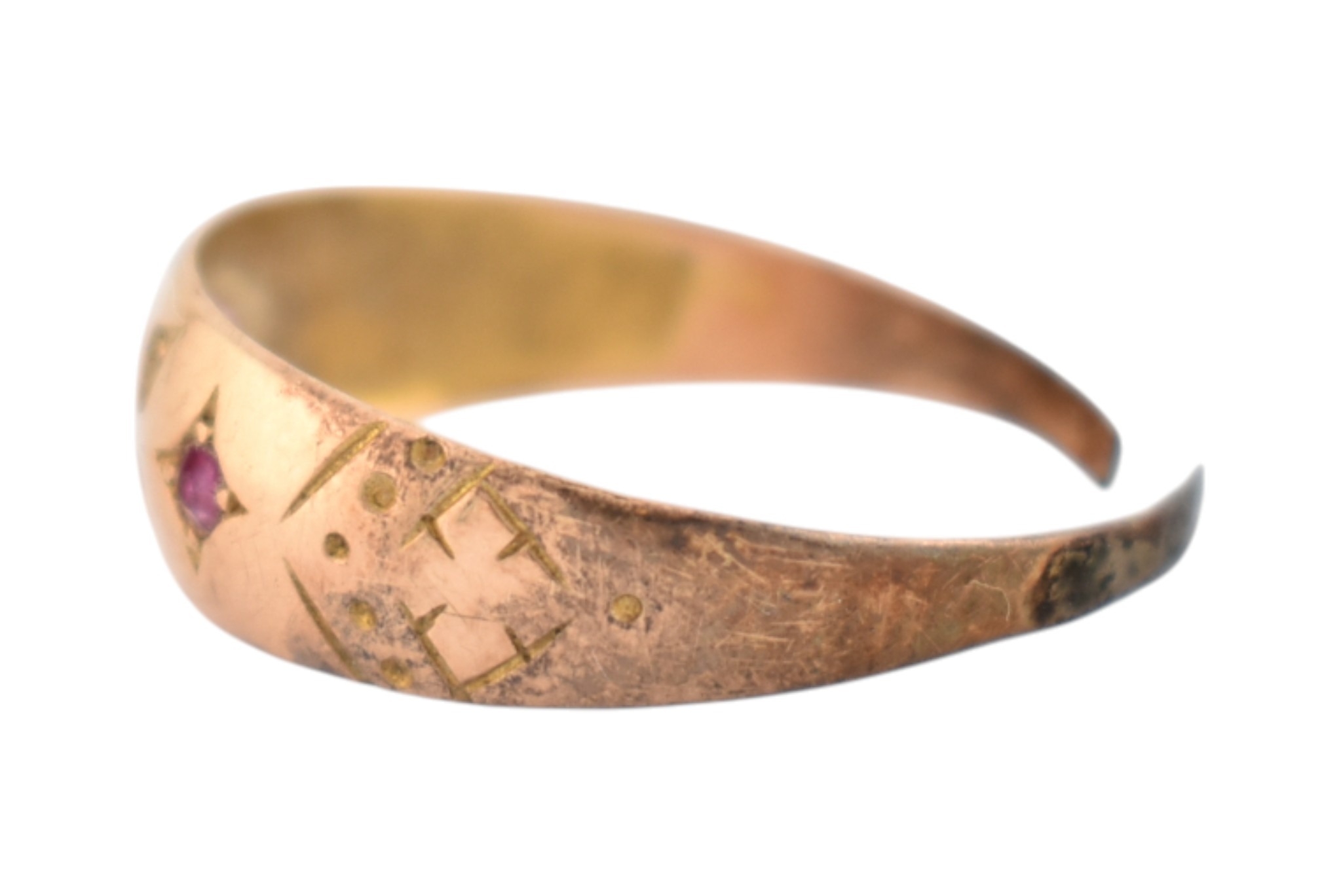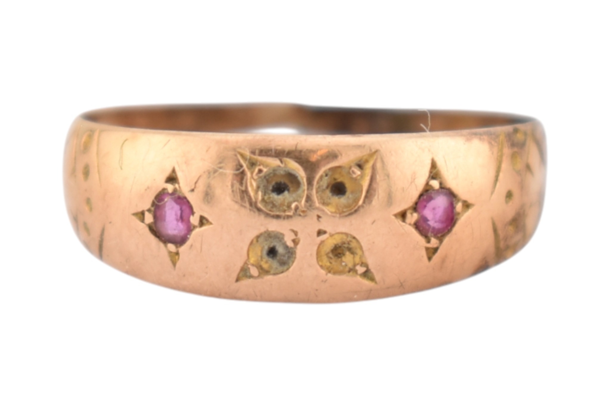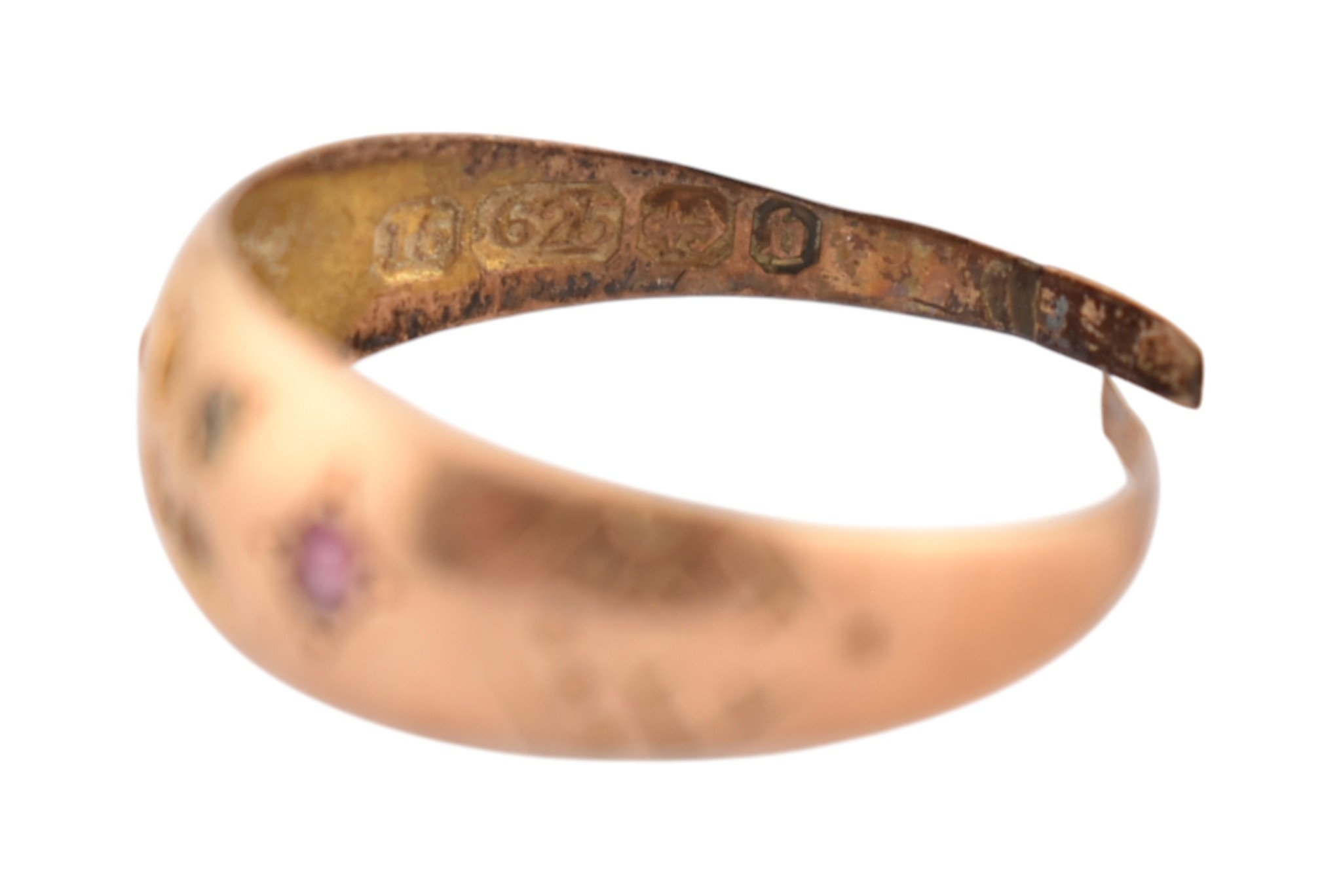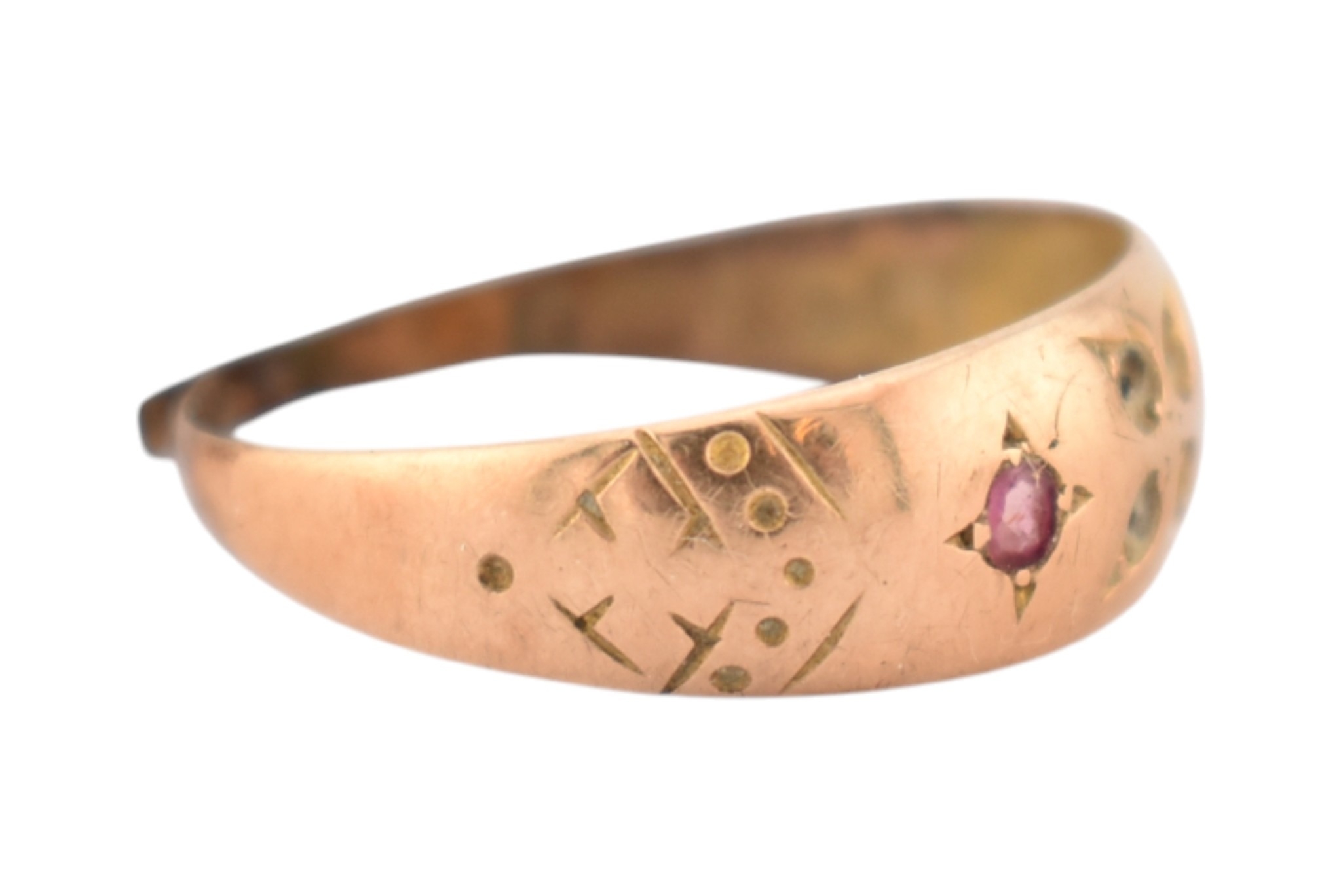 A Victorian 19th century hallmarked 15ct gold ring band ring. Hallmarked Birmingham 1876. AF. Weight 1.2g.