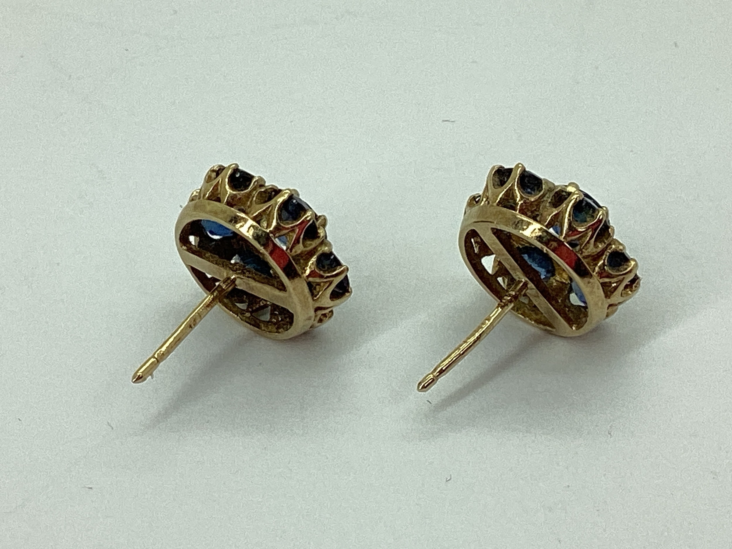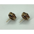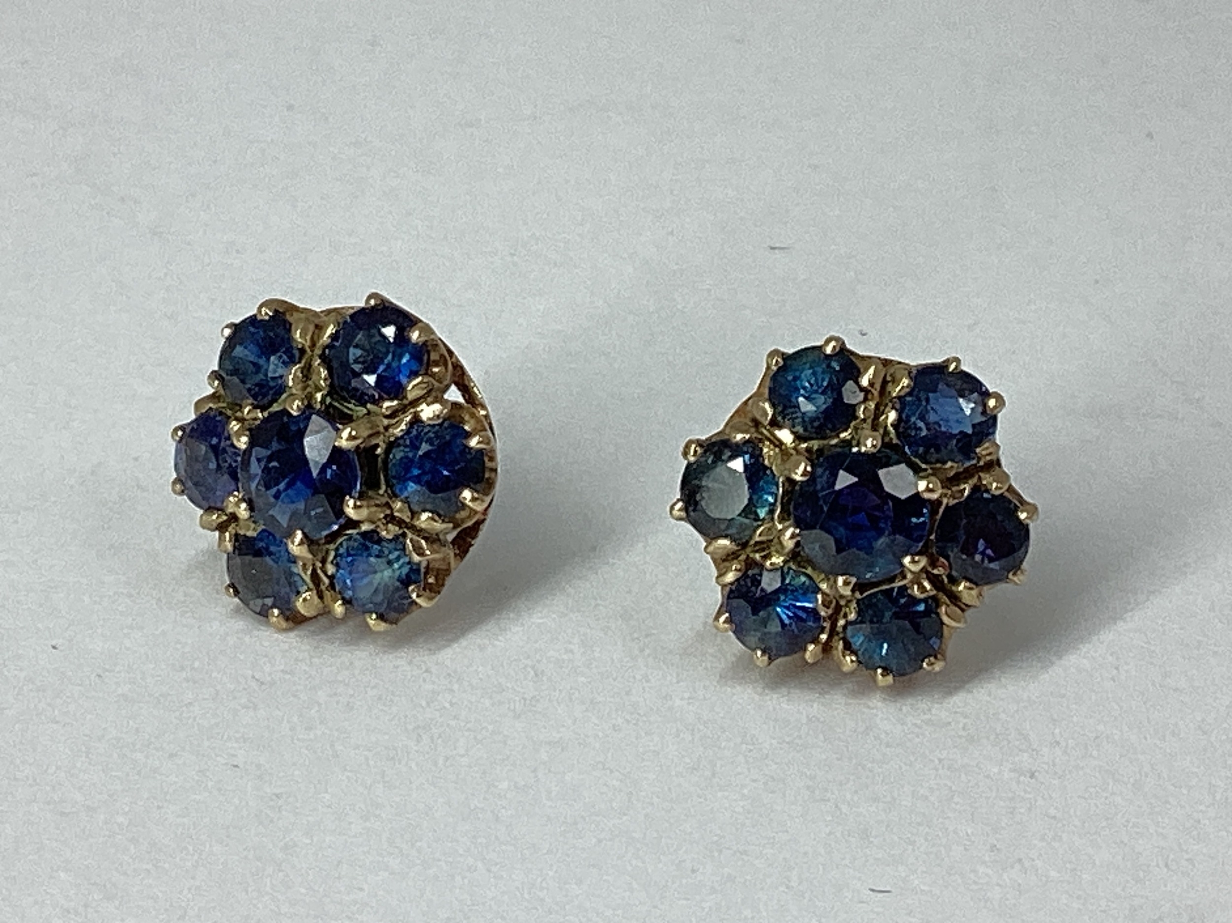 A Pair of Stone Set Cluster Earrings, of flowerhead design, claw set throughout, stamped "375" (lacking scroll backs). [514721]