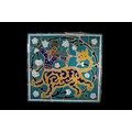 A Persian Isfahan Mosaic Tile Depicting a Hunter on a Leopard, 20th Century.