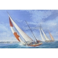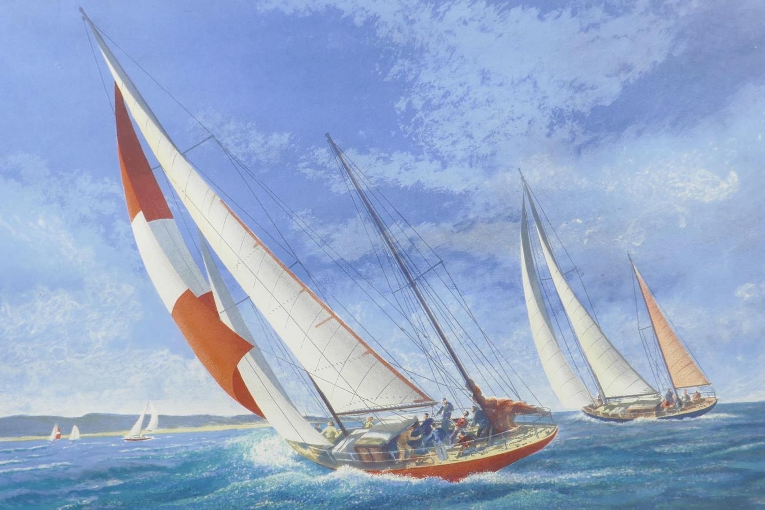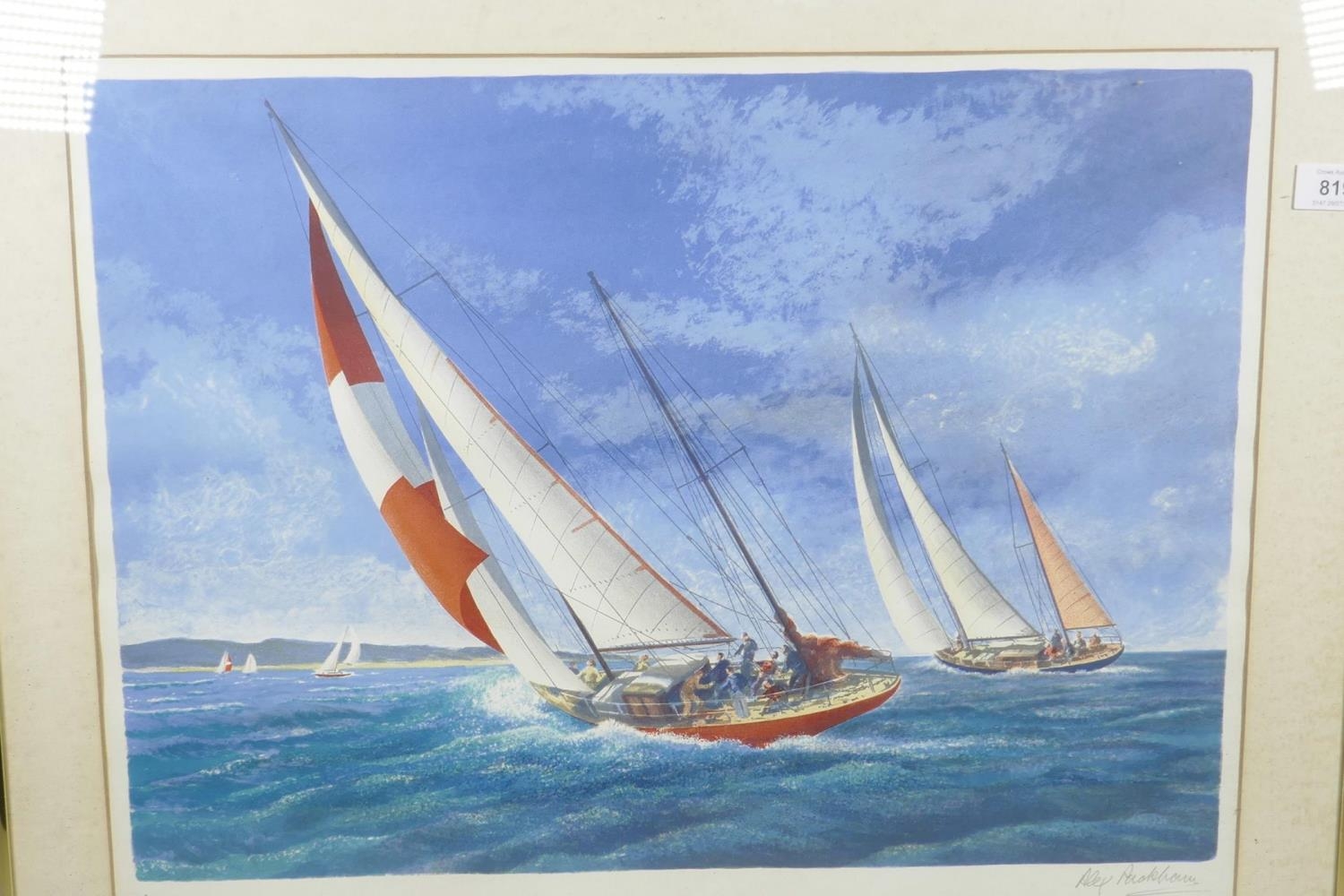 Alex Packham, artist's proof, colour print of a racing yacht, signed, 22" x 15"