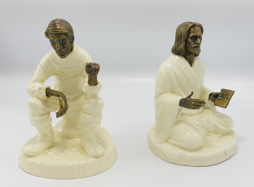 Minton Pottery & Bronze Seconds Figures: Travelers Tales & The Sage(2)