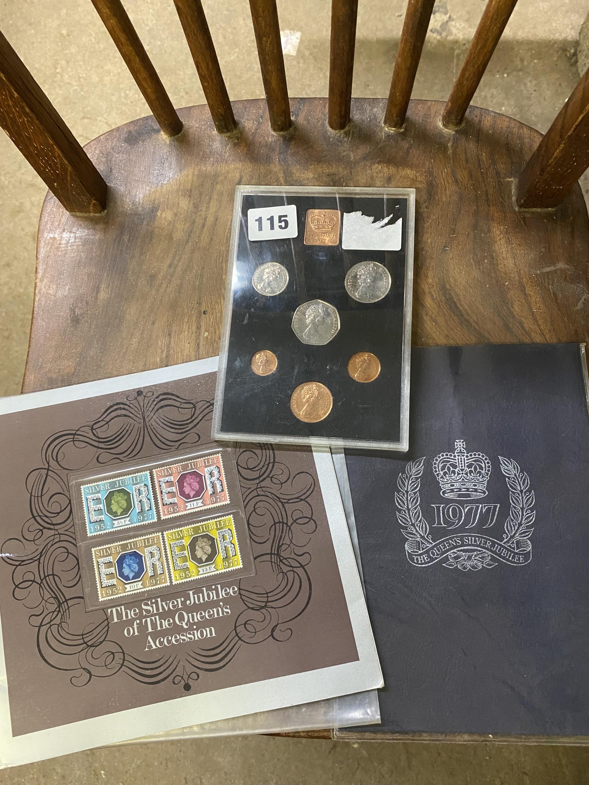 Set of 6 1977 QE II coins and 1977 Jubilee booklet with four stamps