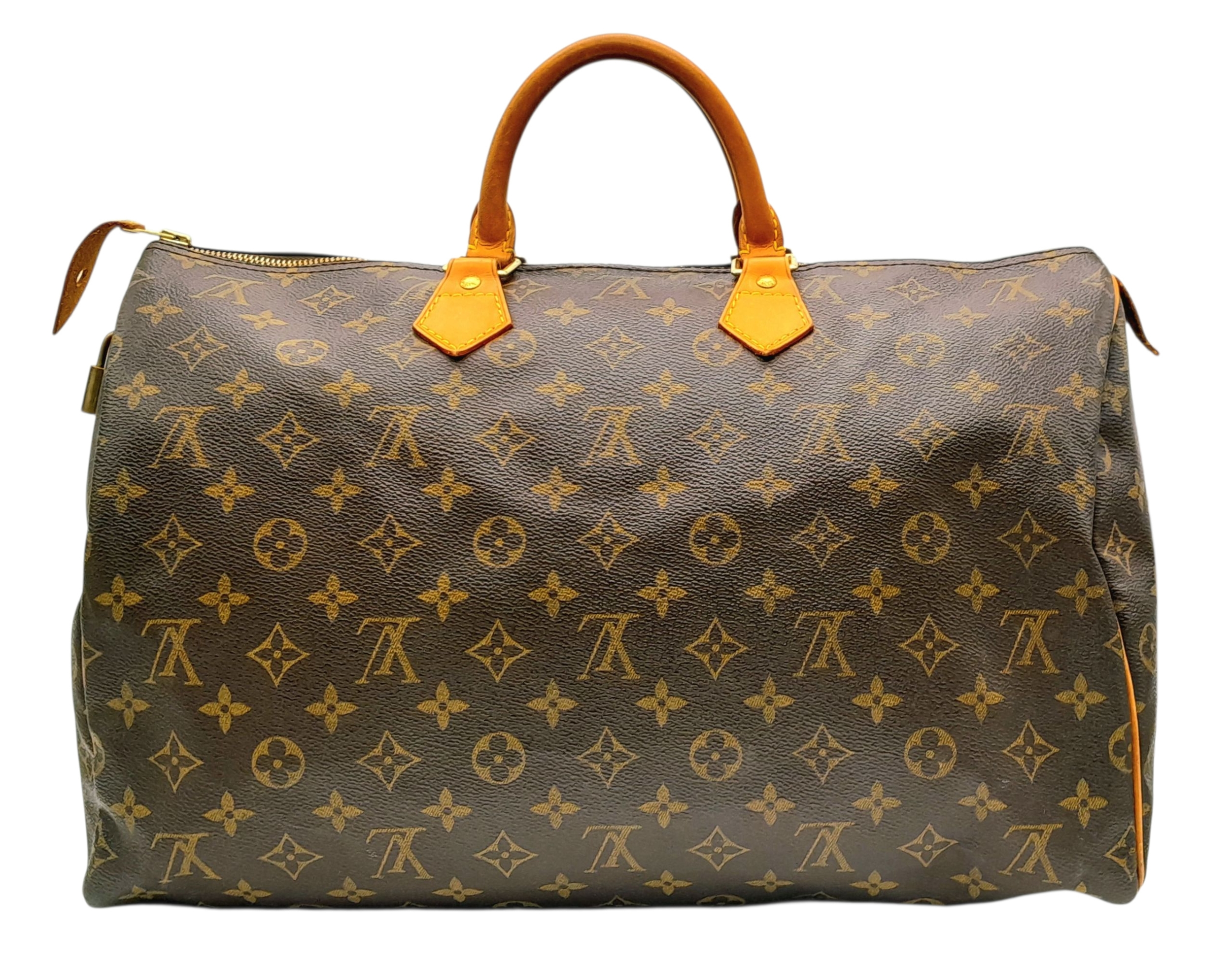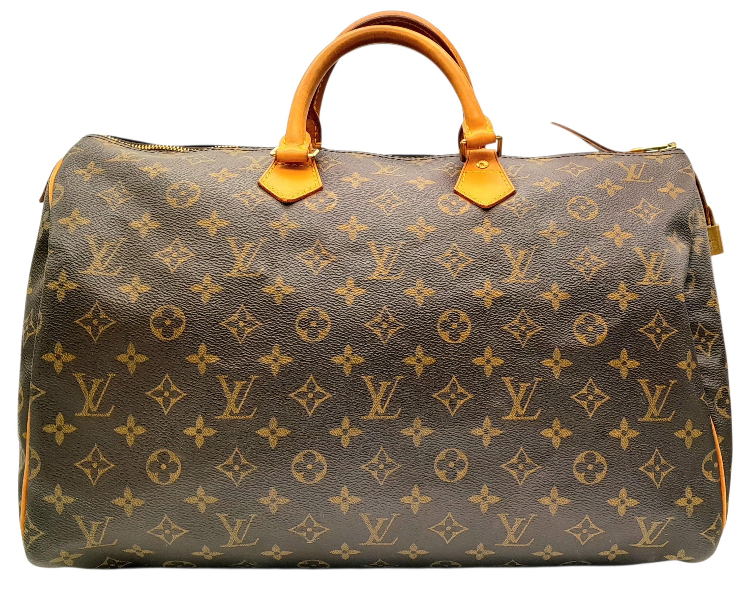 A Louis Vuitton Canvas Monogram Speedy 40 Bag. Come with dust cover and internal organizer. 40 x 27cm. Please see photos for conditions. STK025465
