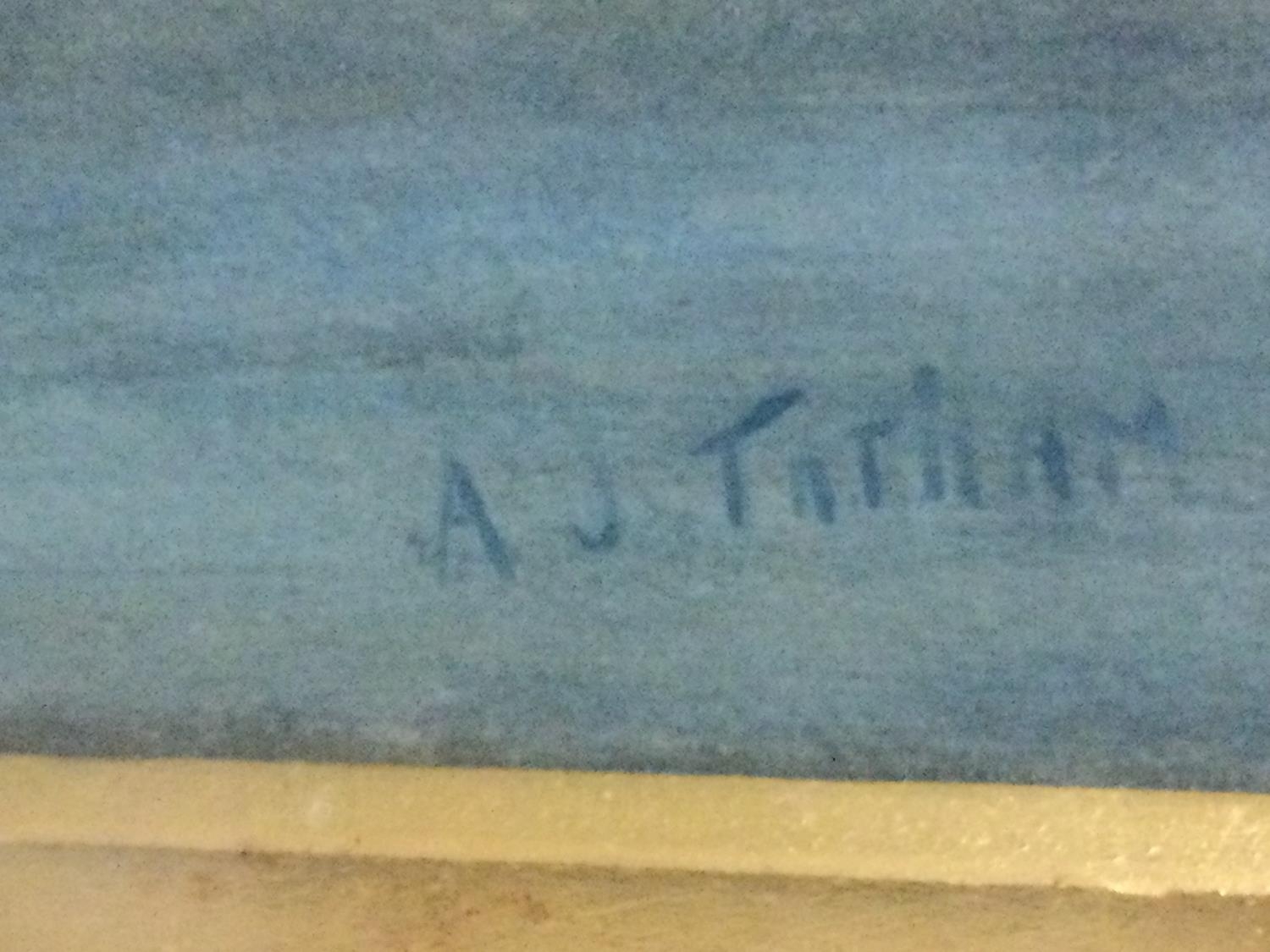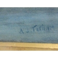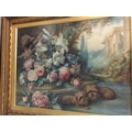 A gilt framed watercolour depicting dogs amongst flowers with classical buildings beyond.signed A J Tatham .55 cm x75 cm .