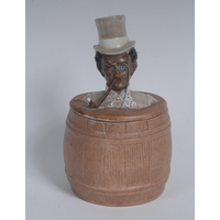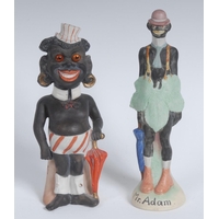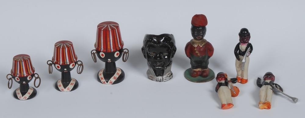 An early 20th century Continental bisque porcelain novelty egg cup, as the head of a black enteratiner, 8cm; etc (6)