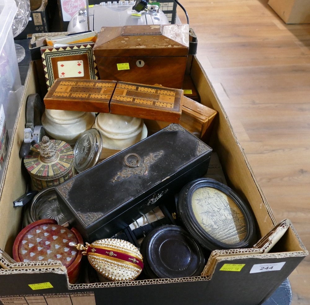 Tea caddy, wooden boxes, trinket pots, coffee bean spoons etc