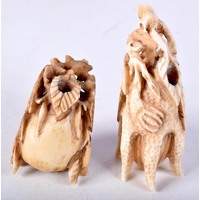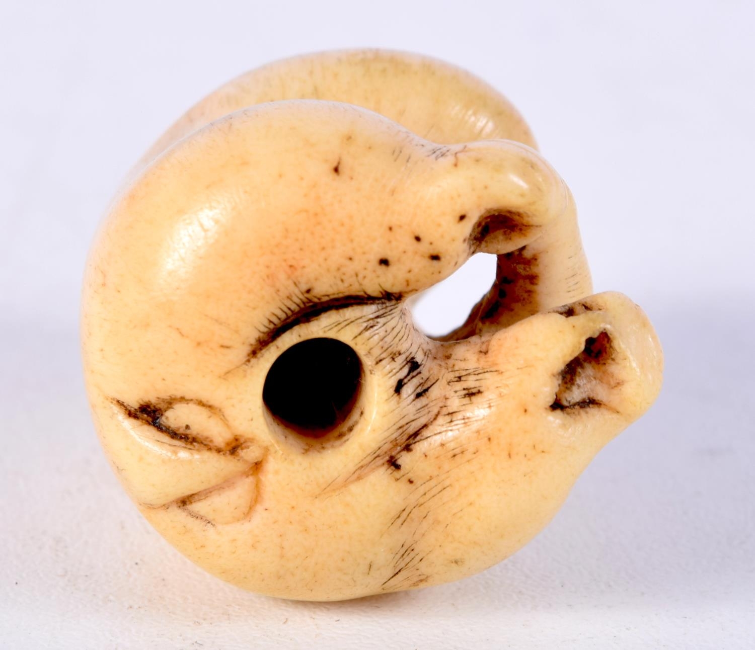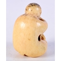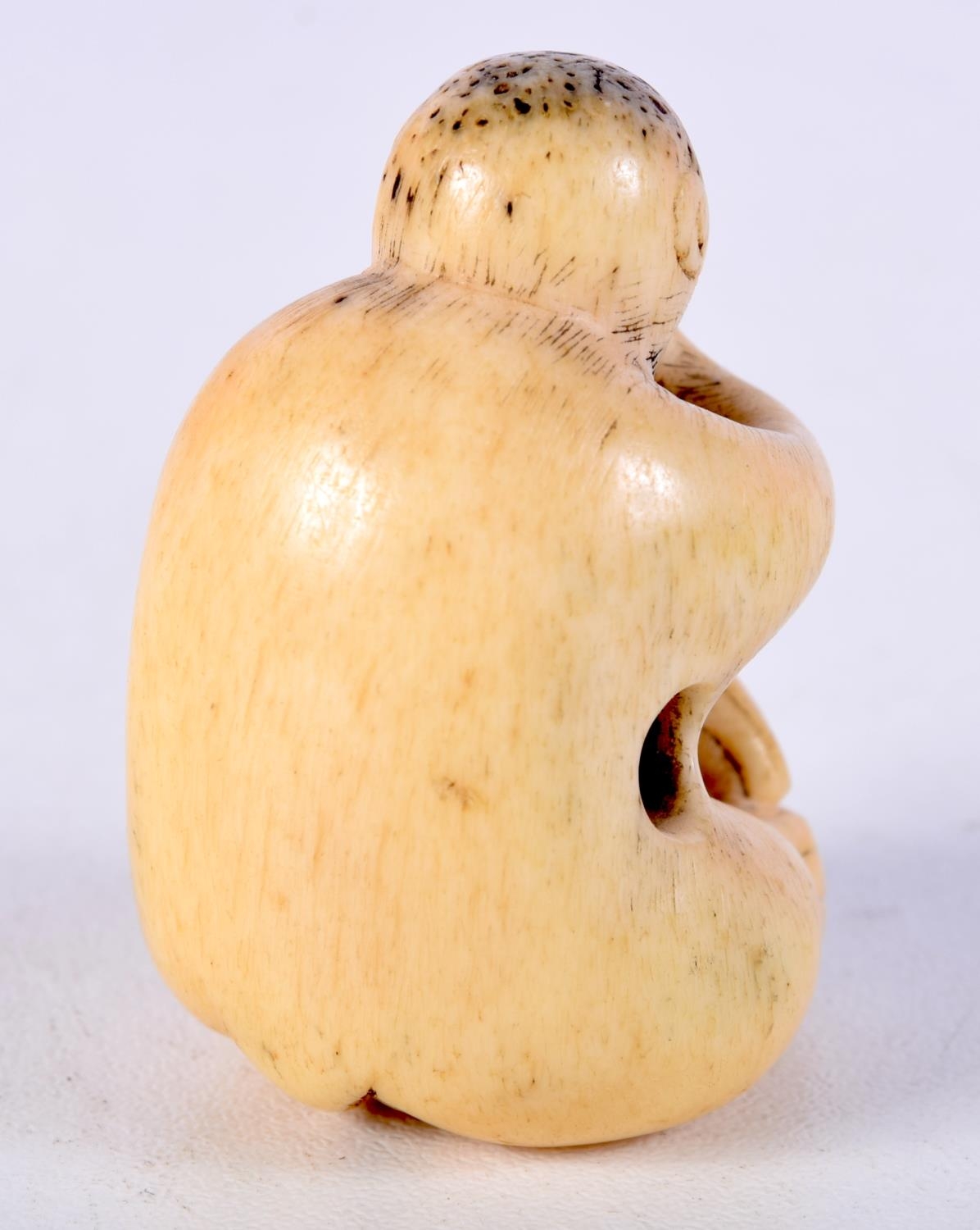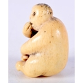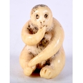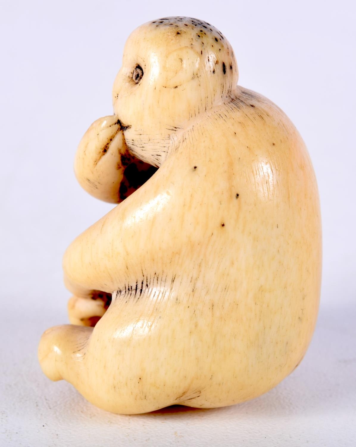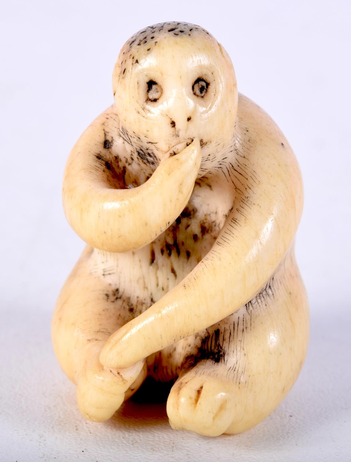 A 19TH CENTURY JAPANESE MEIJI PERIOD CARVED STAG ANTLER NETSUKE formed as a seated monkey. 4 cm x 2 cm.