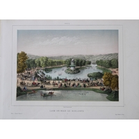 This print was drawn and lithographed by Charles Riviere depicting Paris in the mid-nineteenth century, presented in the popular panoramic style of the day. This panoramic work contained a selection of twenty-four illustrated views of Paris, scarcely found in colour.