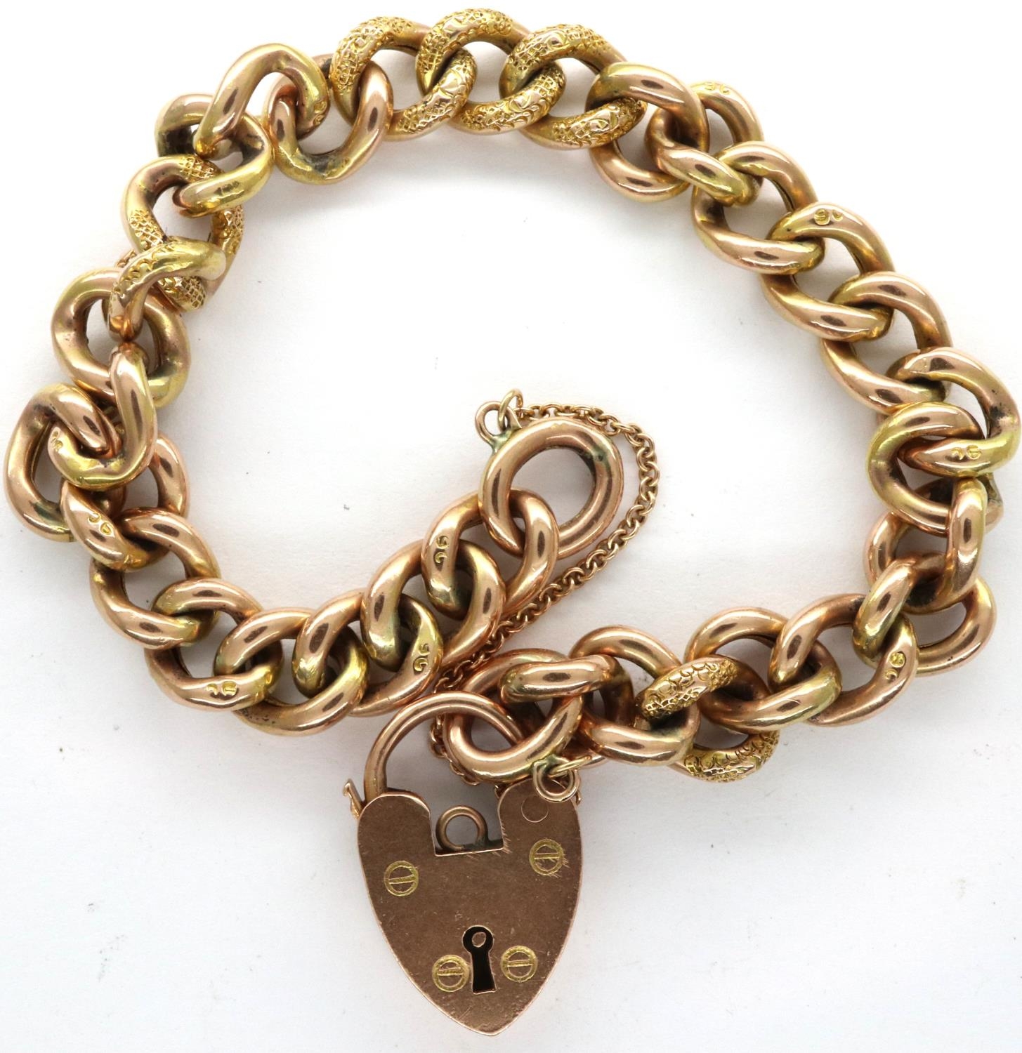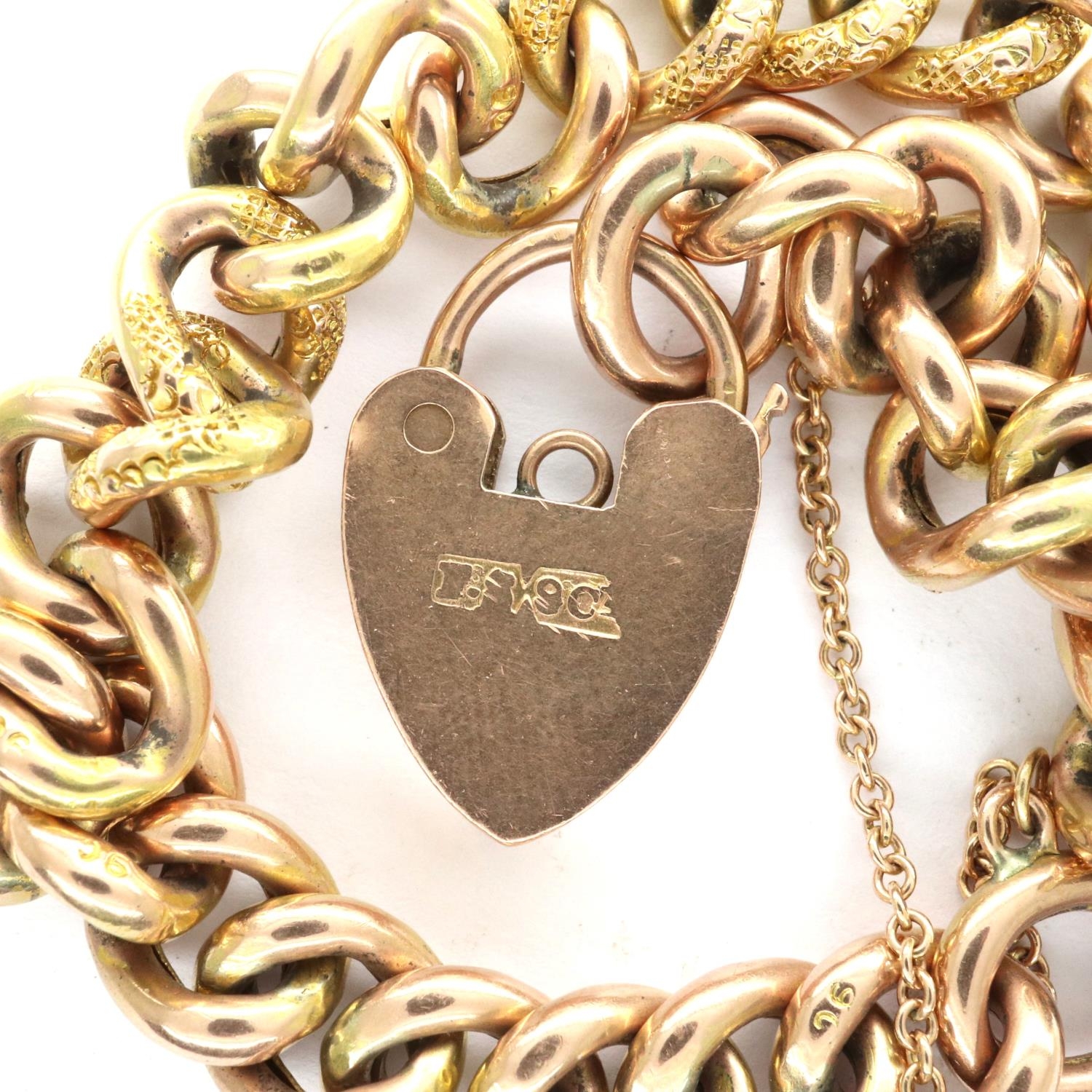 9ct gold link bracelet with safety chain and padlock clasp, L: 18 cm, 13.1g. P&P Group 1 (£14+VAT for the first lot and £1+VAT for subsequent lots)