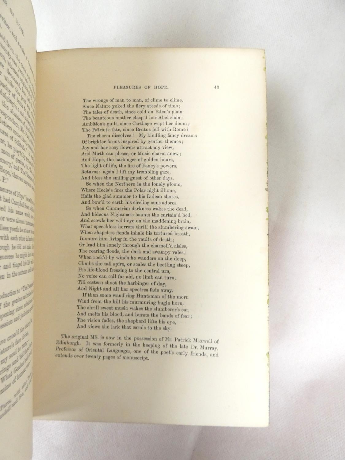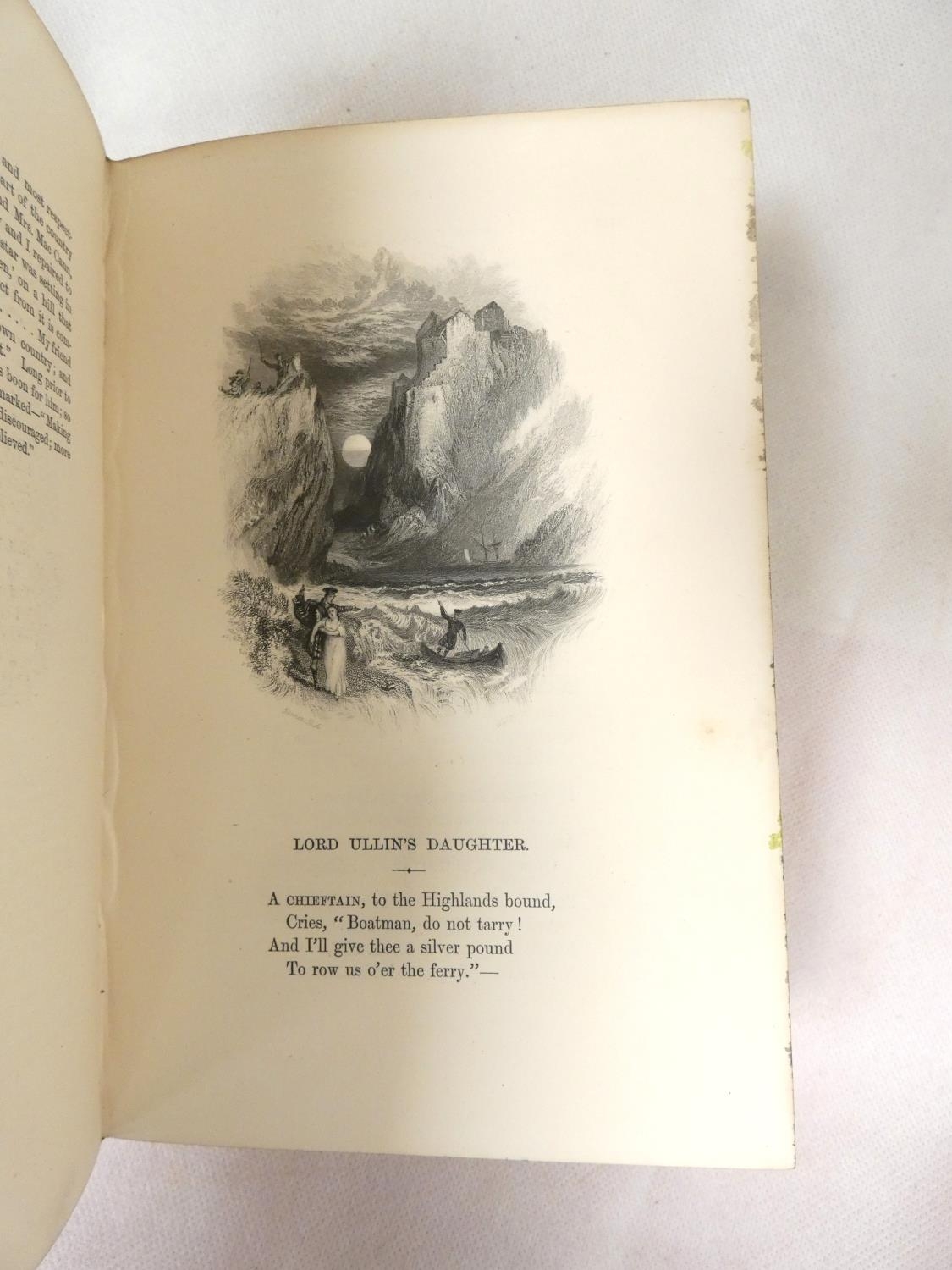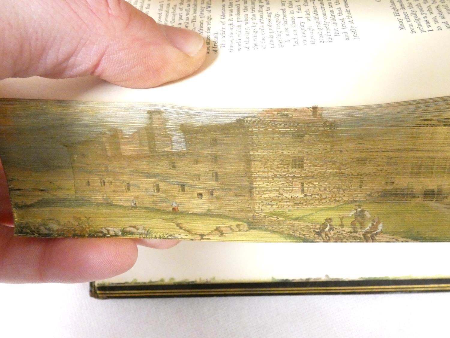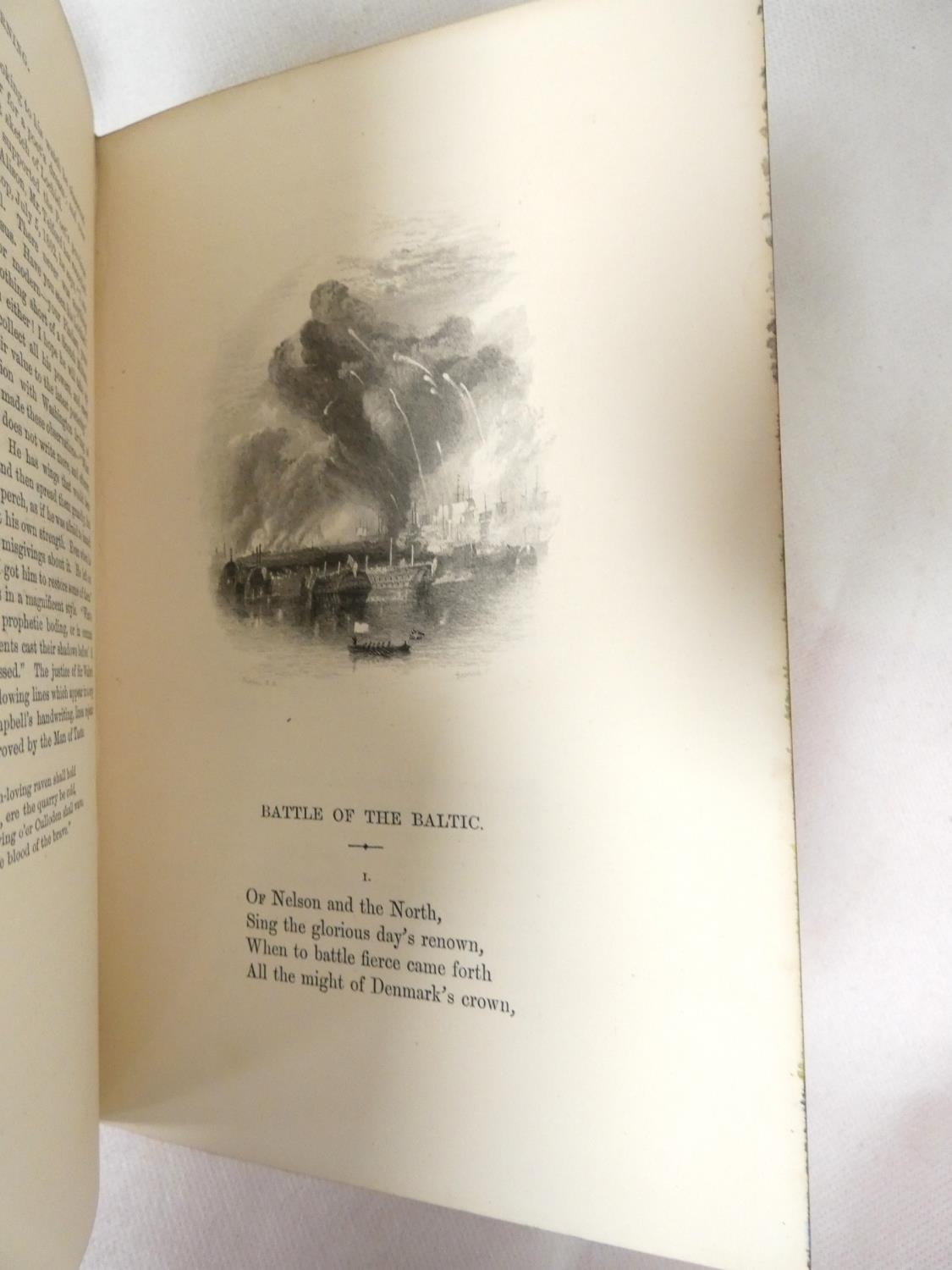FORE-EDGE PAINTING. Campbell Thomas. The Poetical Works. Eng. frontis. & text vignettes. Nice dark morocco, marbled endpapers, a.e.g. with a good fore-edge painting of Linlithgow Palace, figures in the foreground. Edward Moxon, 1854.