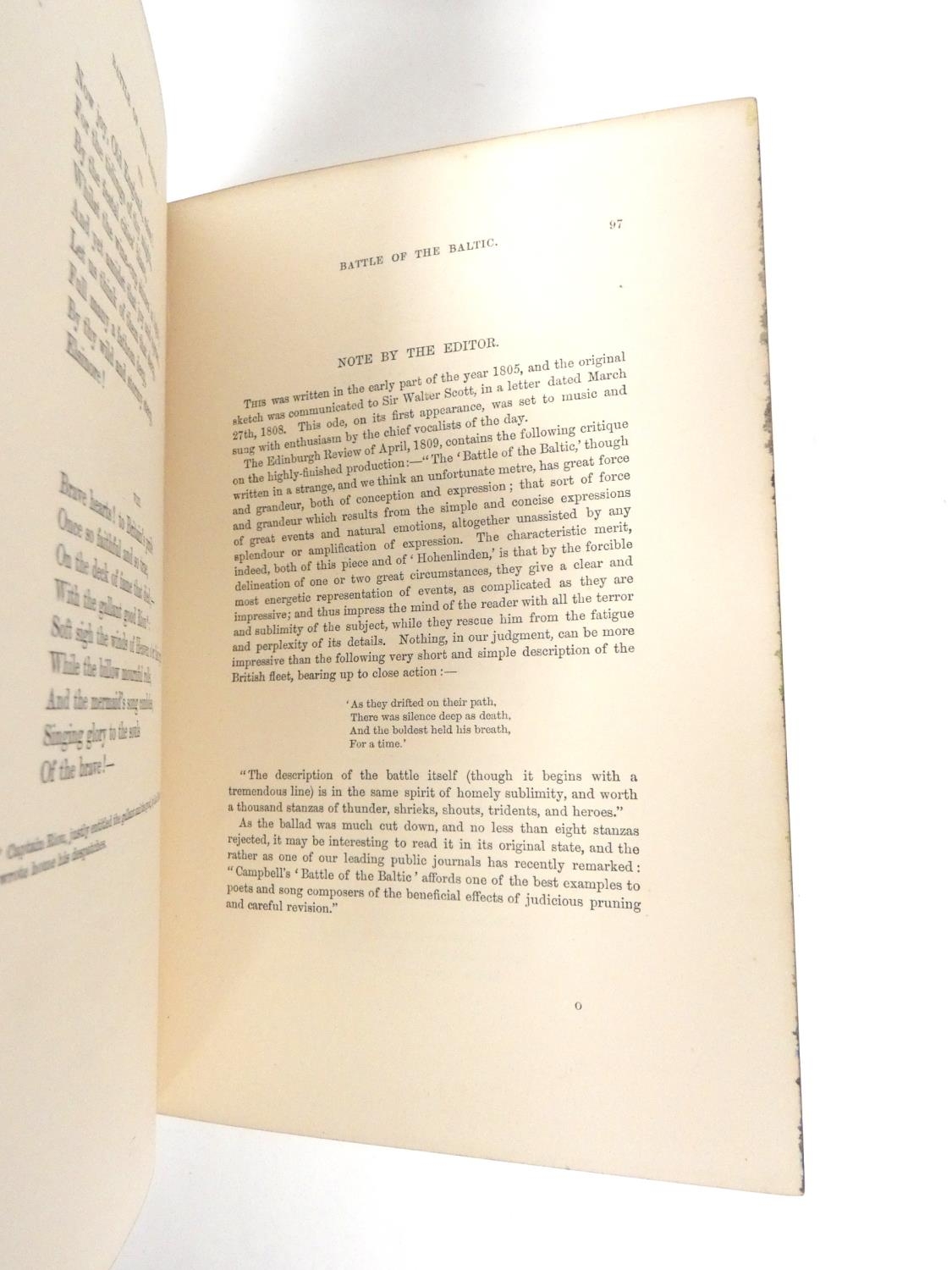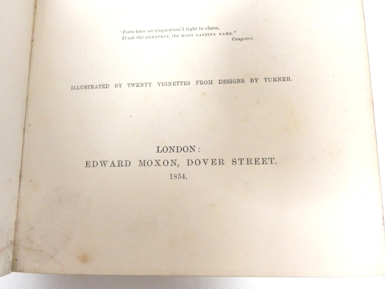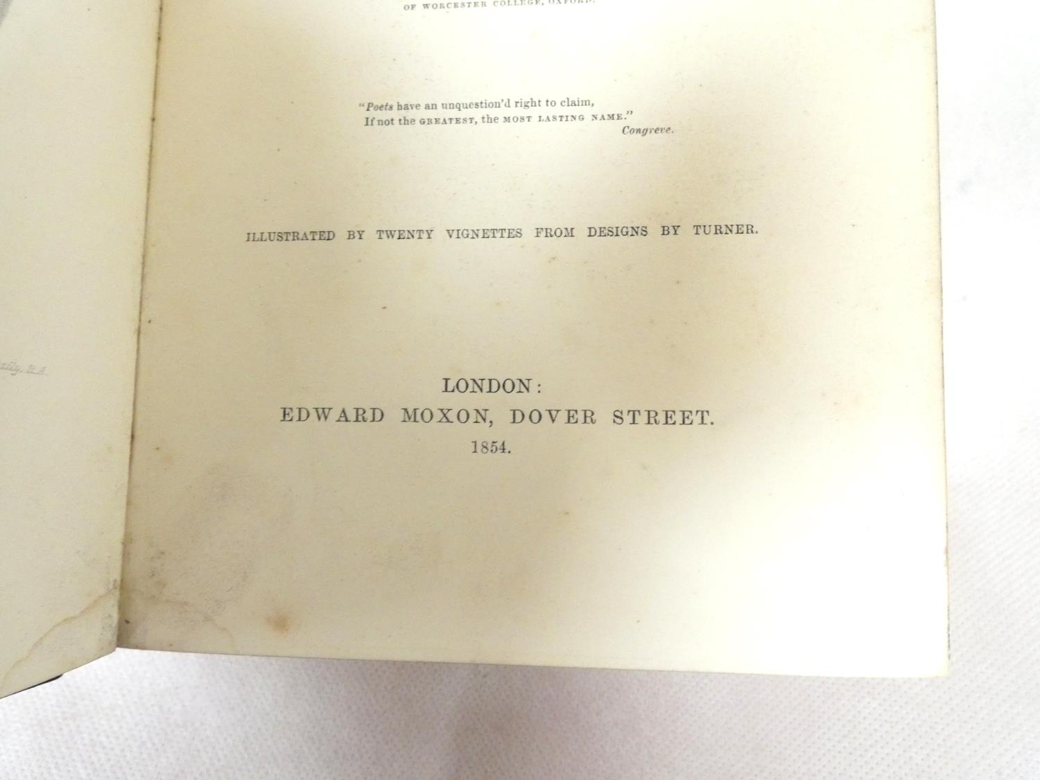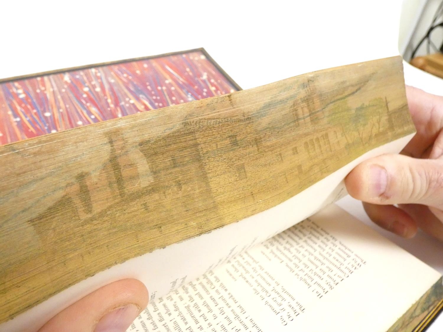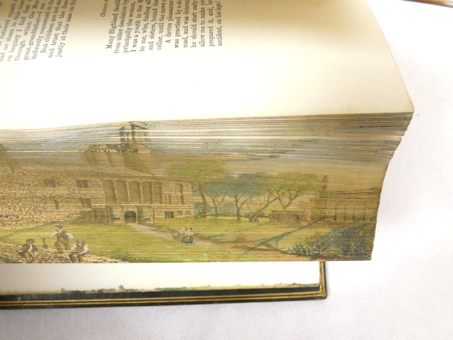 FORE-EDGE PAINTING. Campbell Thomas. The Poetical Works. Eng. frontis. & text vignettes. Nice dark morocco, marbled endpapers, a.e.g. with a good fore-edge painting of Linlithgow Palace, figures in the foreground. Edward Moxon, 1854.