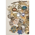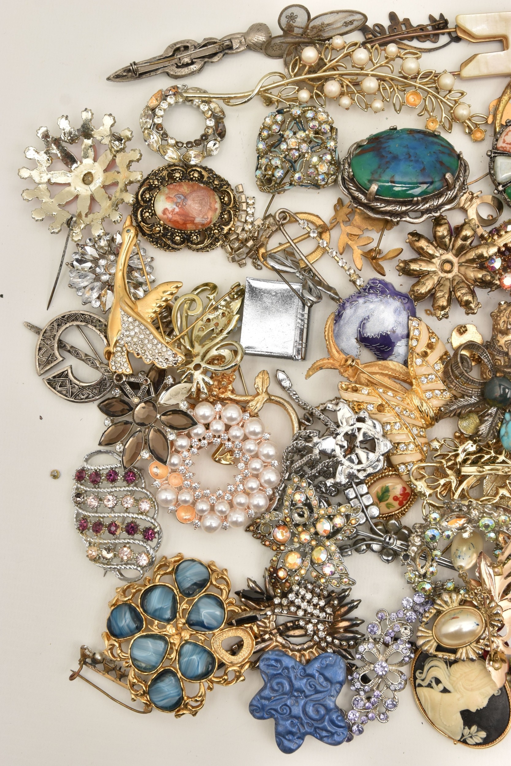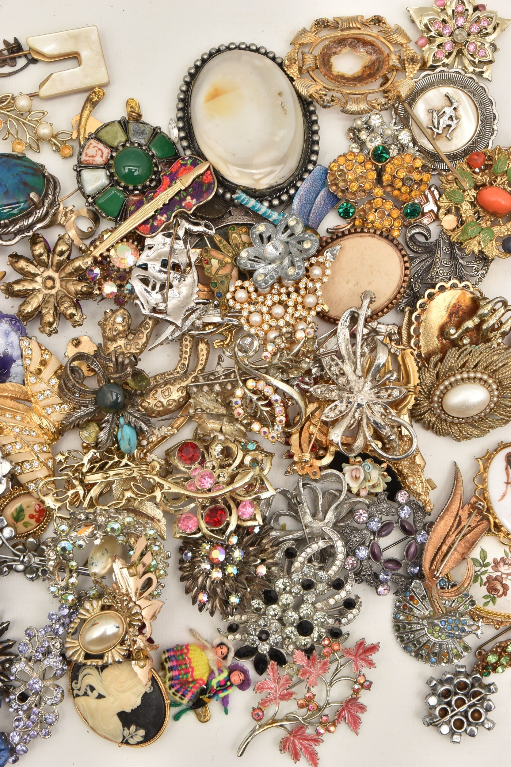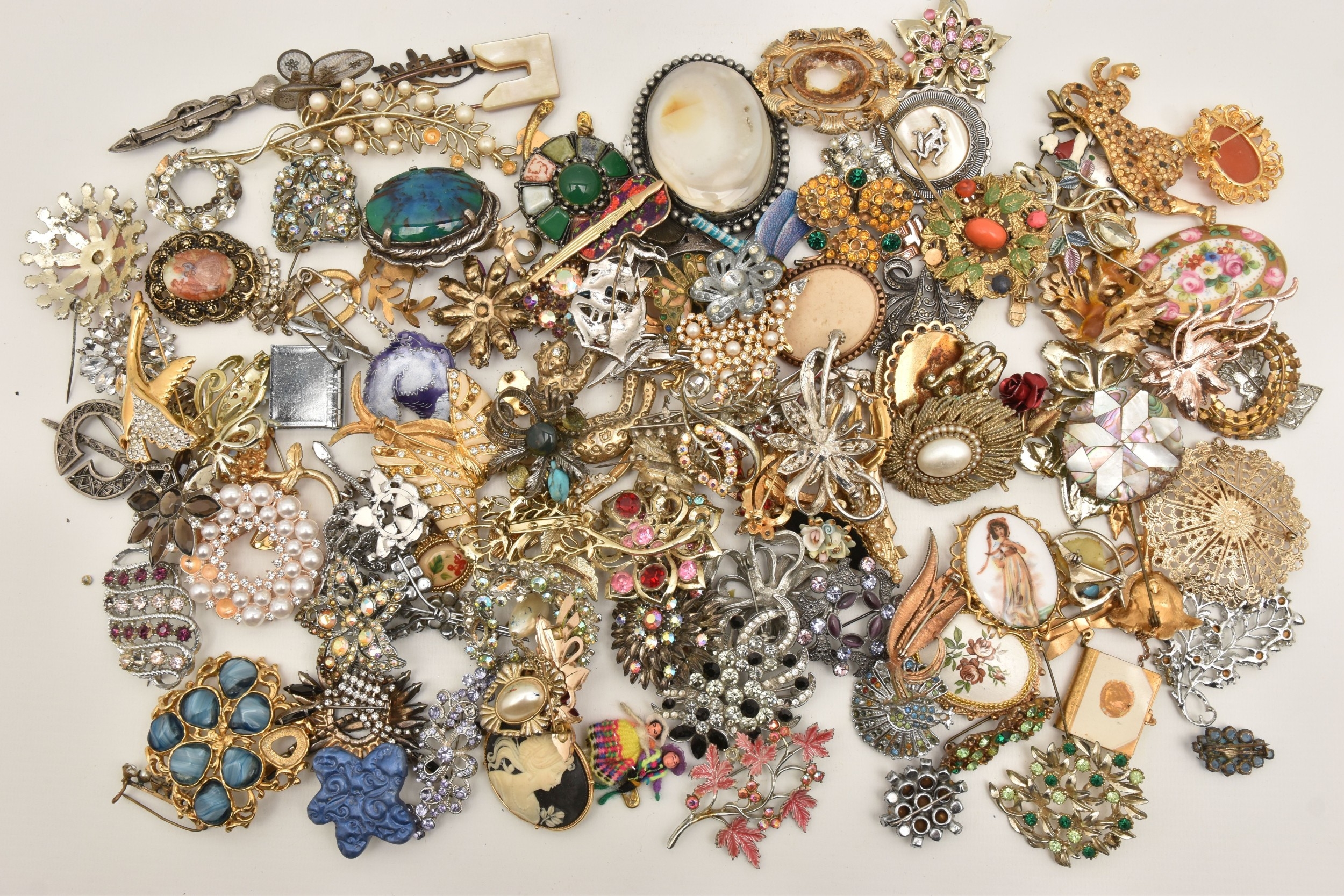 A LARGE ASSORTMENT OF COSTUME JEWELLERY BROOCHES, one hundred brooches, spares repairs and broken parts