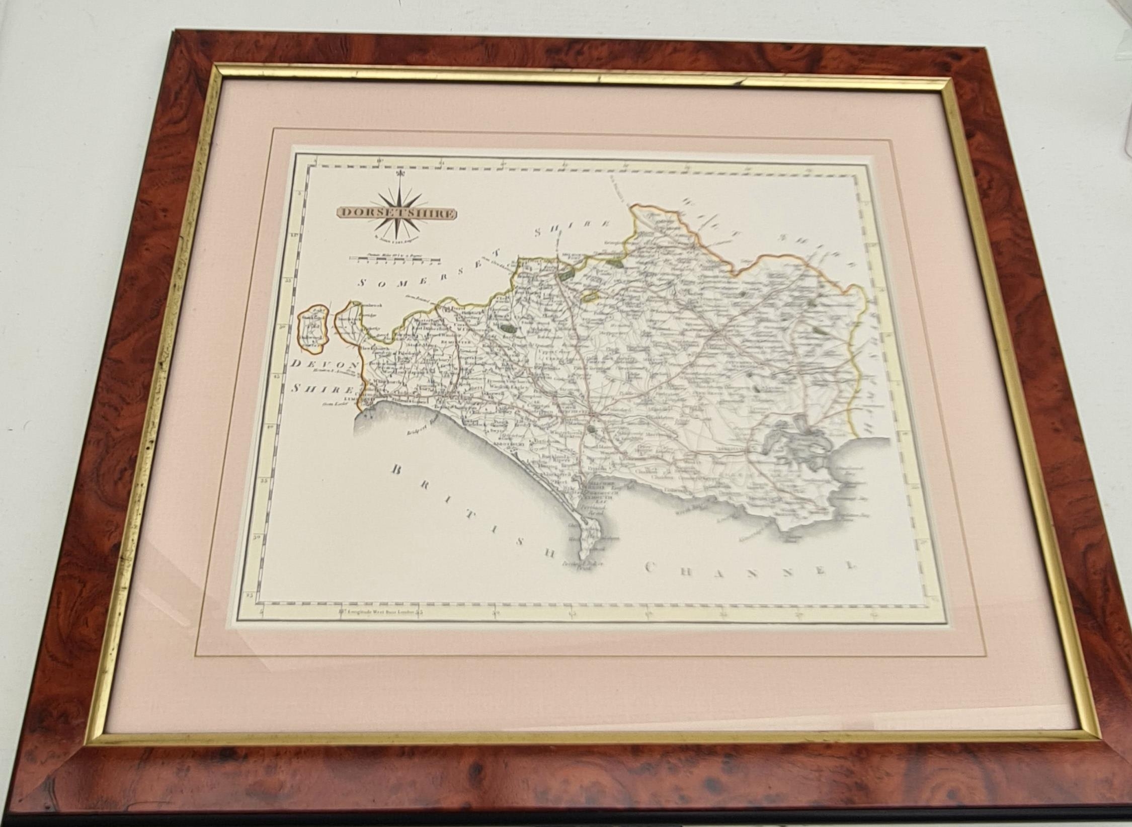 Antique Framed Map of Dorsetshire. Originally framed and sold by Manuscript Ltd, England. Overall measures 40cm by 36cm. Shipping is available. Please ask for a quote before bidding. Where possible we combine shipping costs. Remember, if you are the highest bidder above reserve on this Lot you have bought the item and are legally responsible for the item. Viewing is recommended in either person or via video link. Contact us to arrange.
