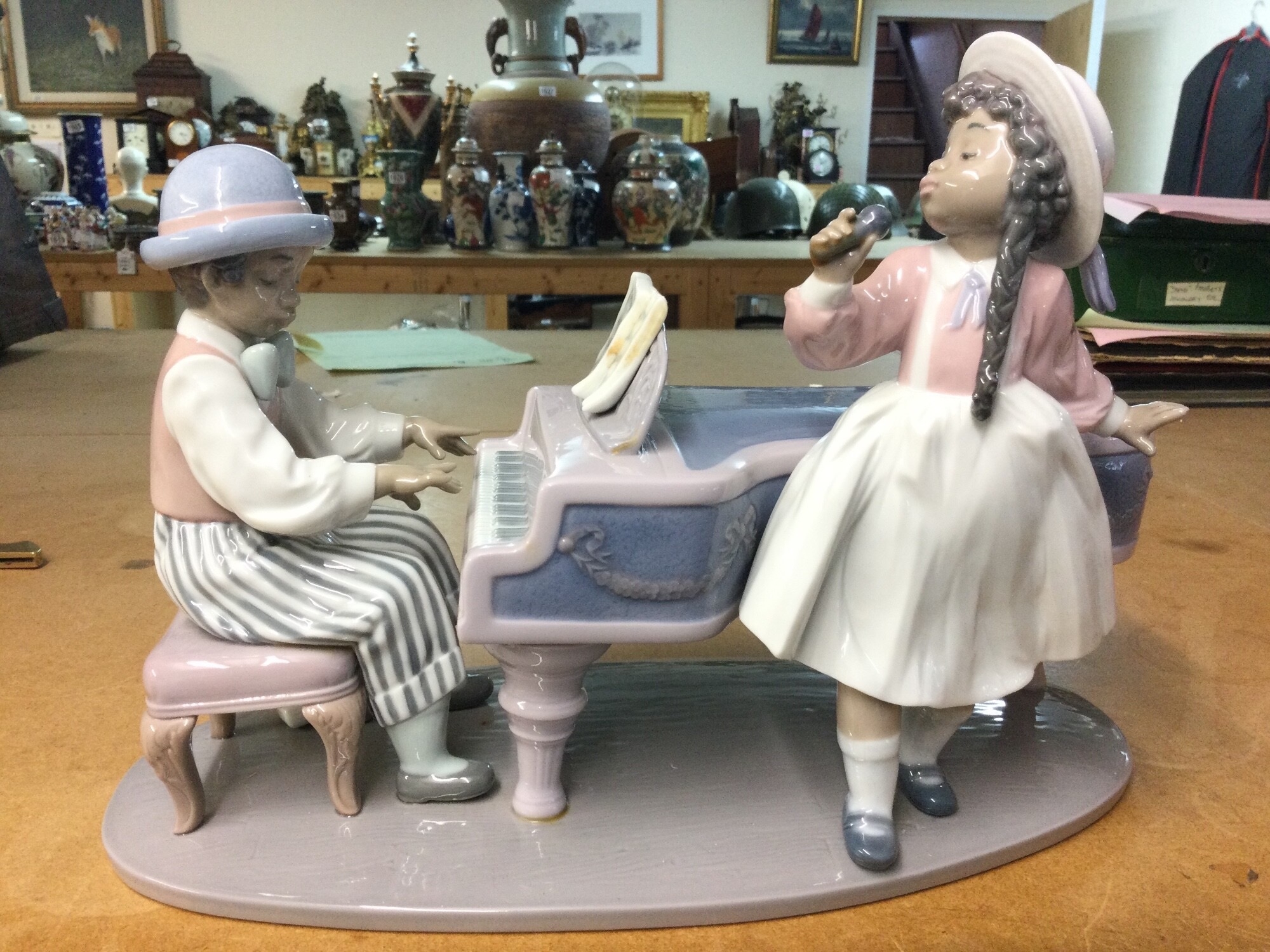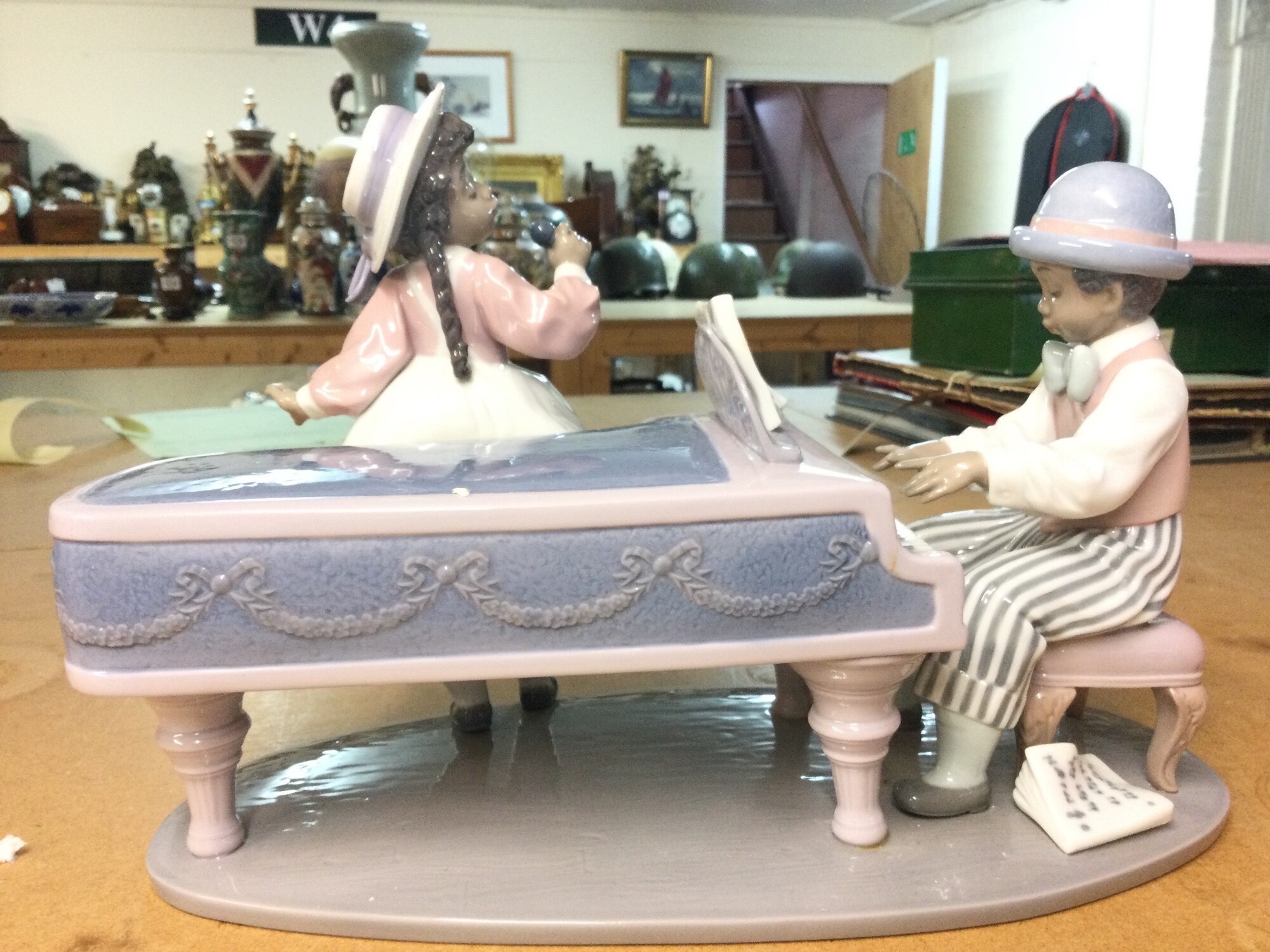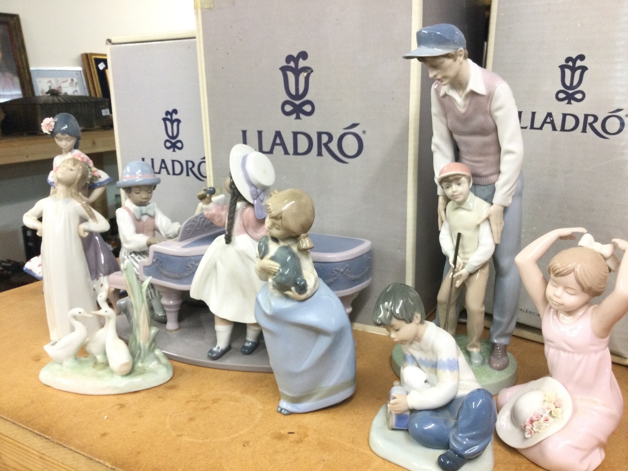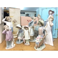 A collection of boxed Lladro and Nao porcelain figures including Jazz Duo, Flor Maria, like father like son. (8)