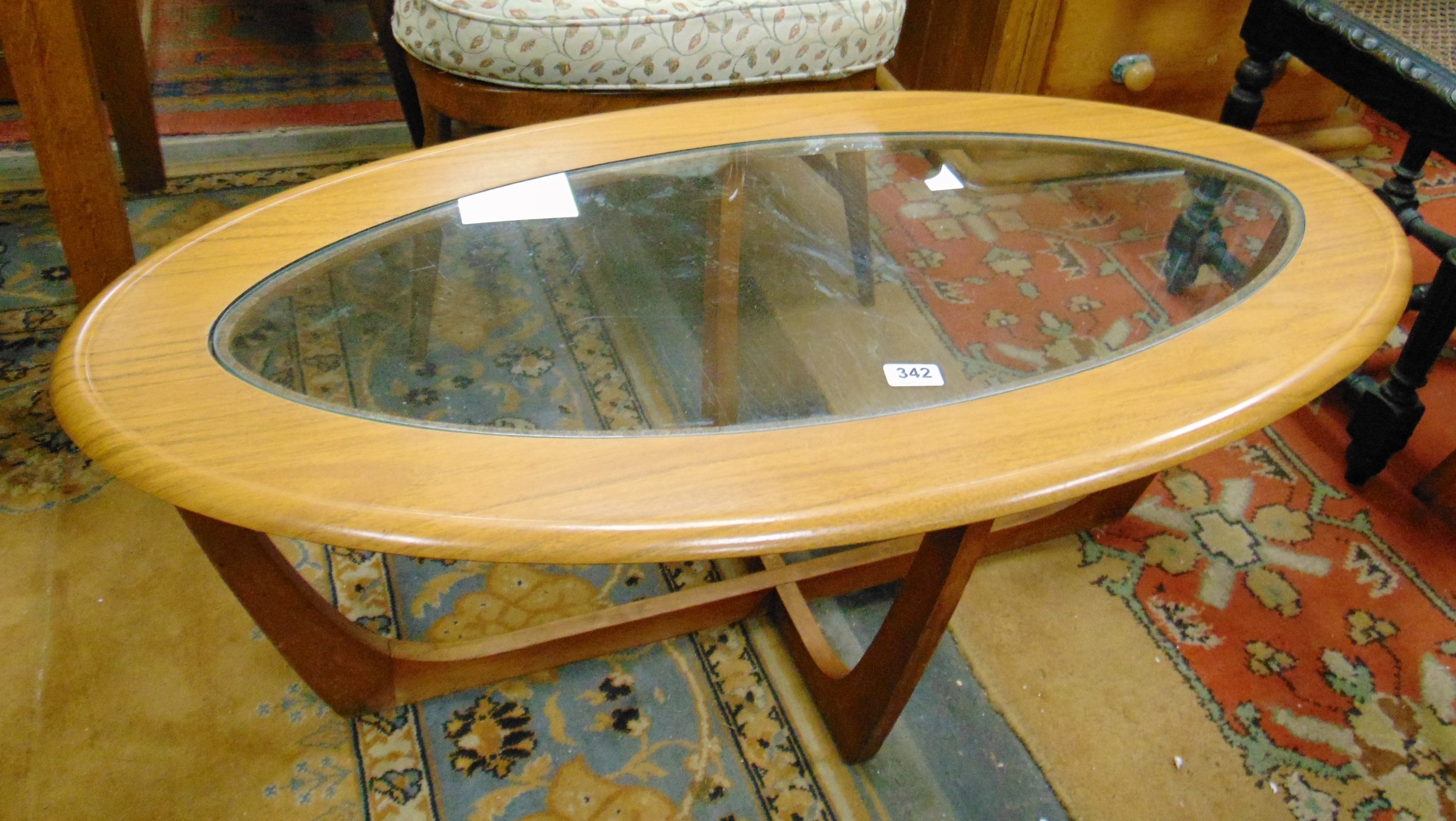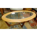Retro oval glass topped coffee table, 15 x 41 x 20" deep.