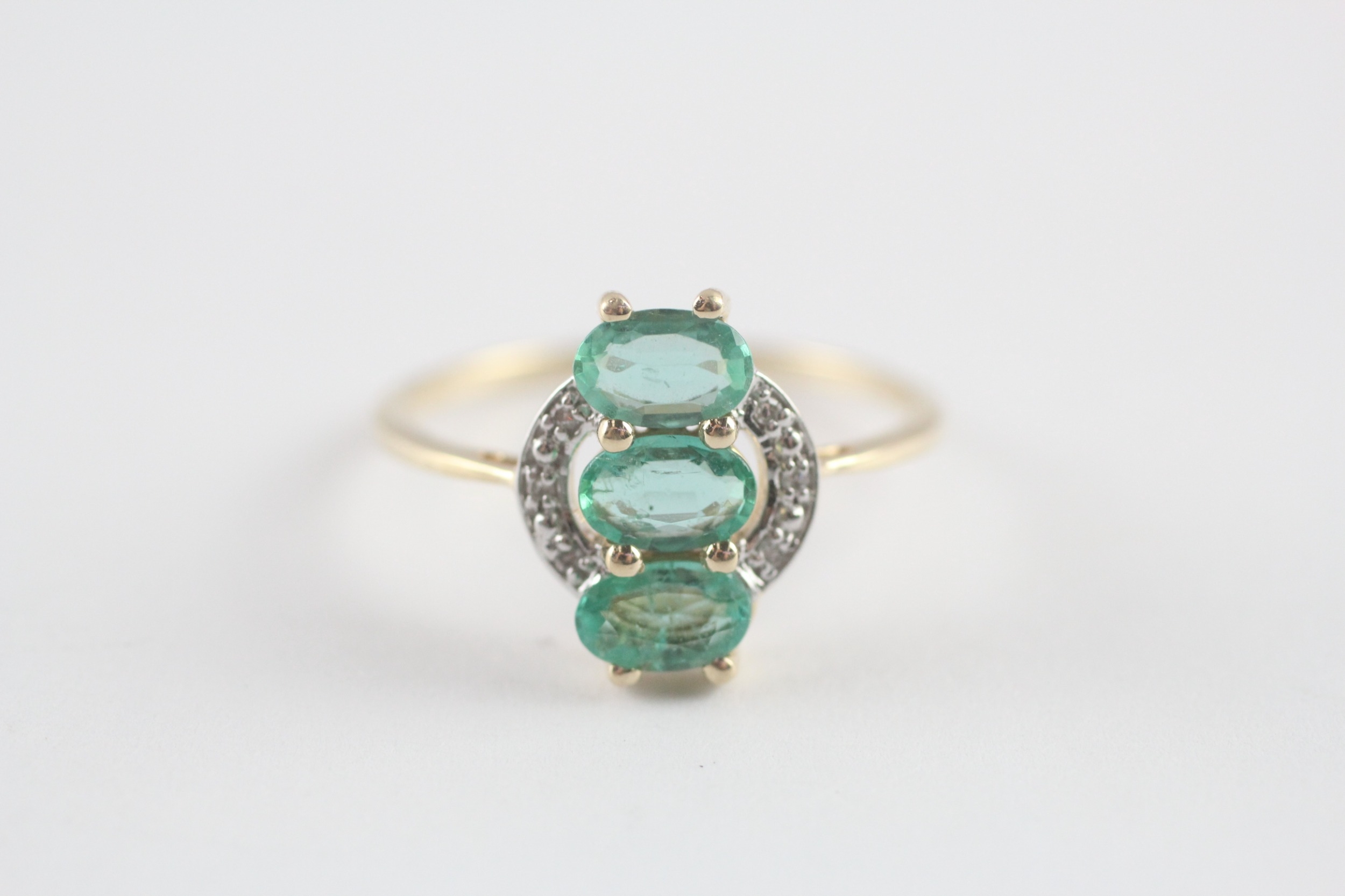 9ct gold emerald diamond dress ring (2g) Size P 1/2