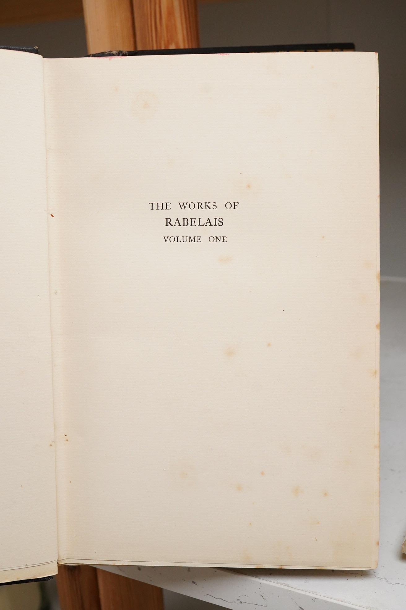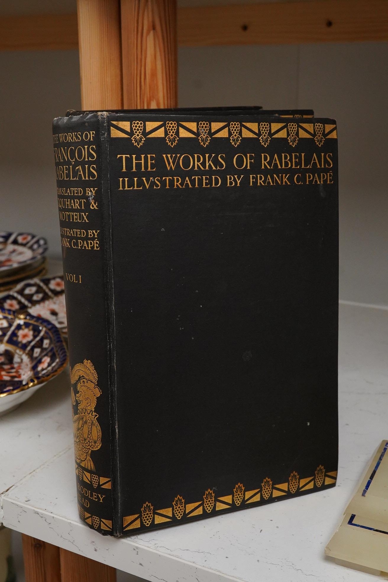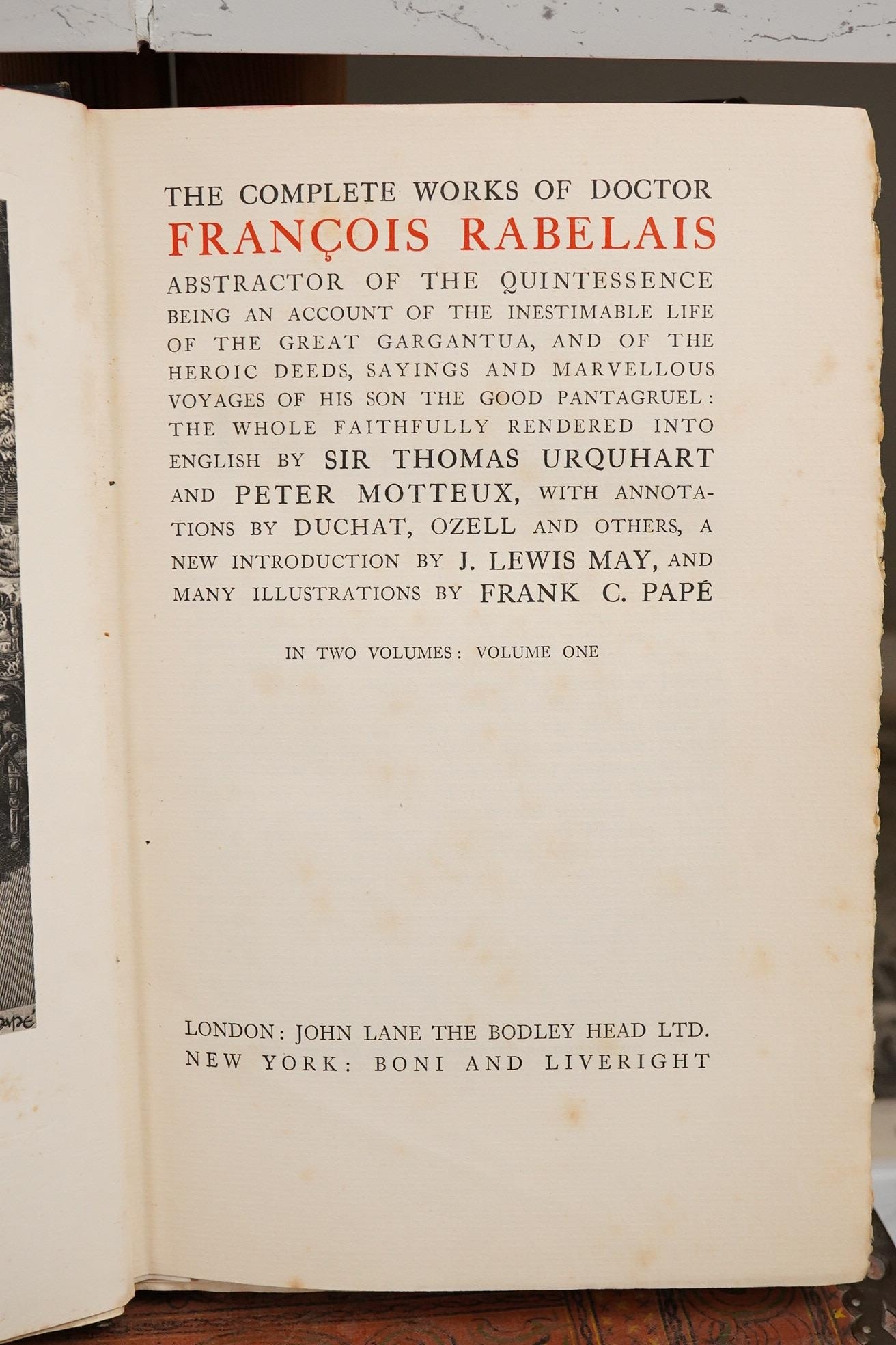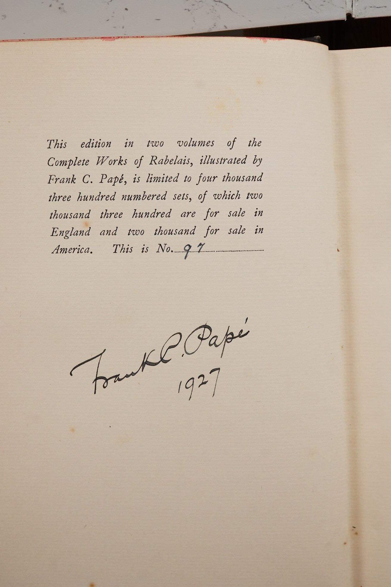 ° ° Rabelais, Francois. Complete Works illustrated by Franck. C Pape. In Two volumes, limited edition 97/4300 signed by the illustrator. publisher's cloth gilt. Bodley Head. 1927