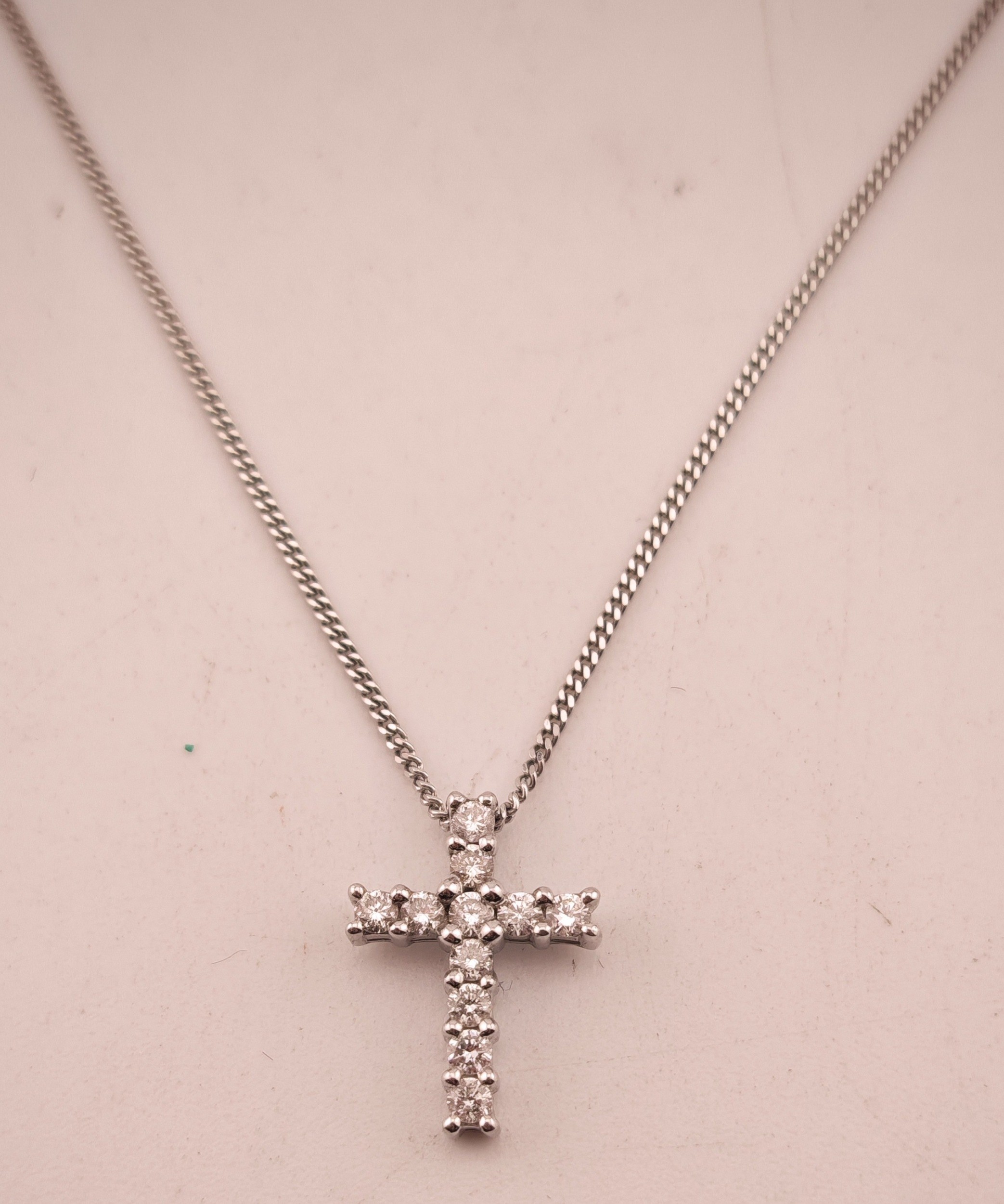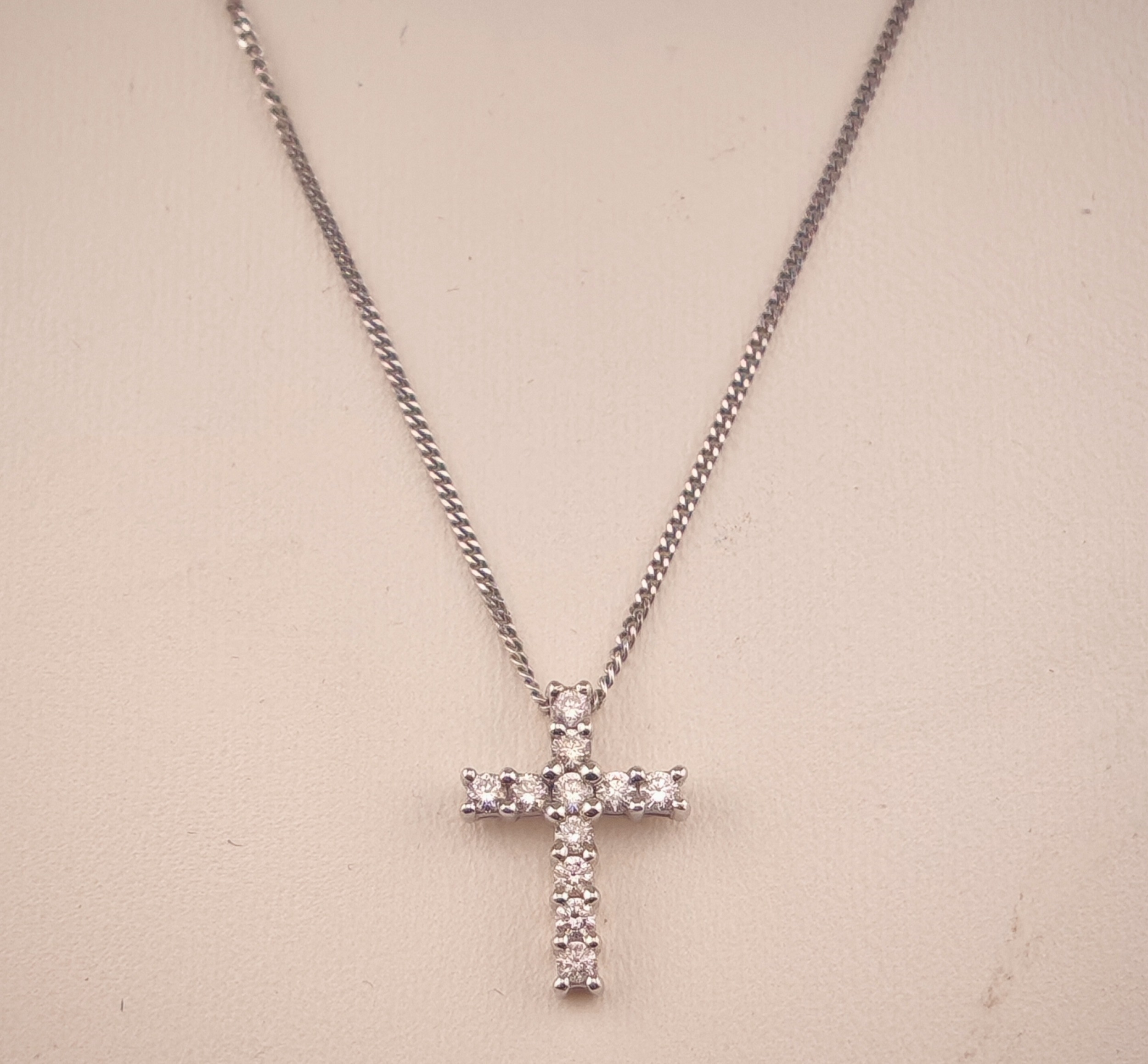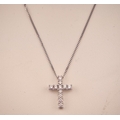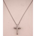 Ladies 9ct Gold Diamond Set cross on 9ct gold chain 0.25ct. 44cm in Length. 2.1g total weight