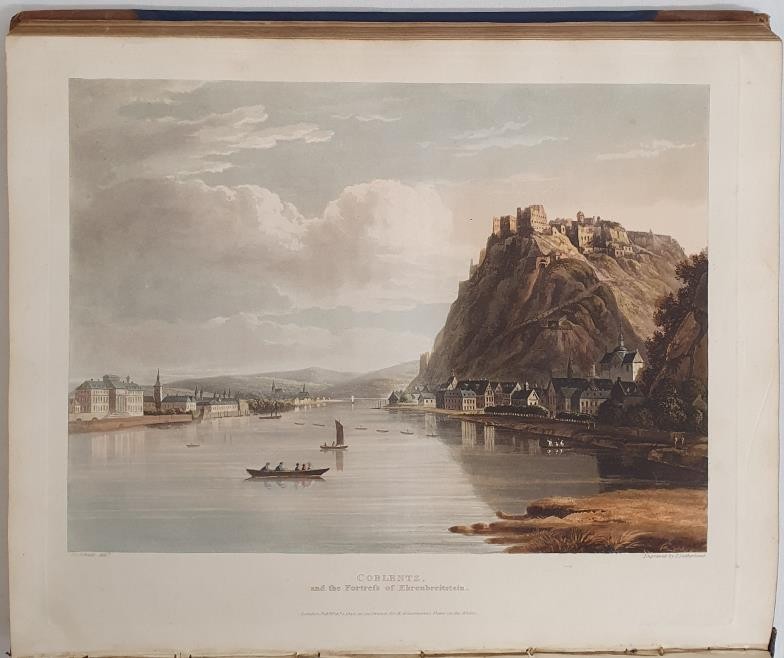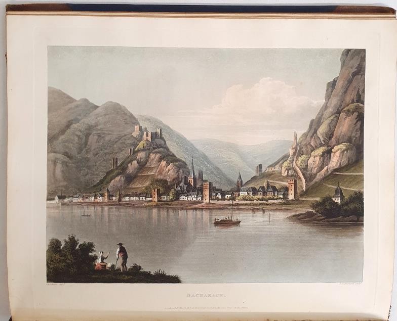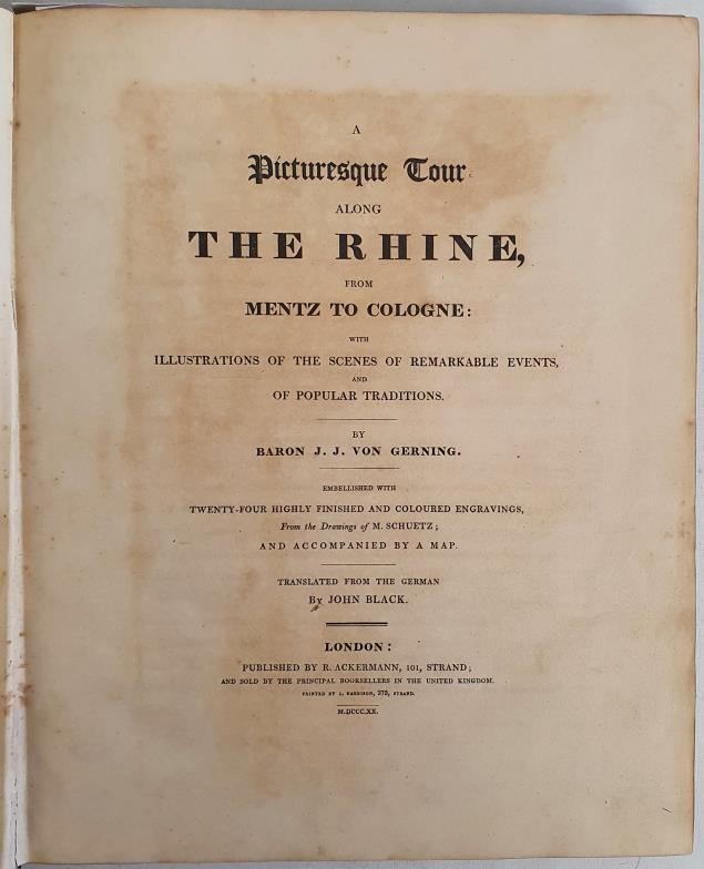 Baron J.J. Von Gerning. A Picturesque Tour along the Rhine from Mentz to Cologne. London. 1820. First With 24 beautiful hand coloured plates of Rhine scenery and topography and large folding map. Contemporary half calf, gilt title. Rare
