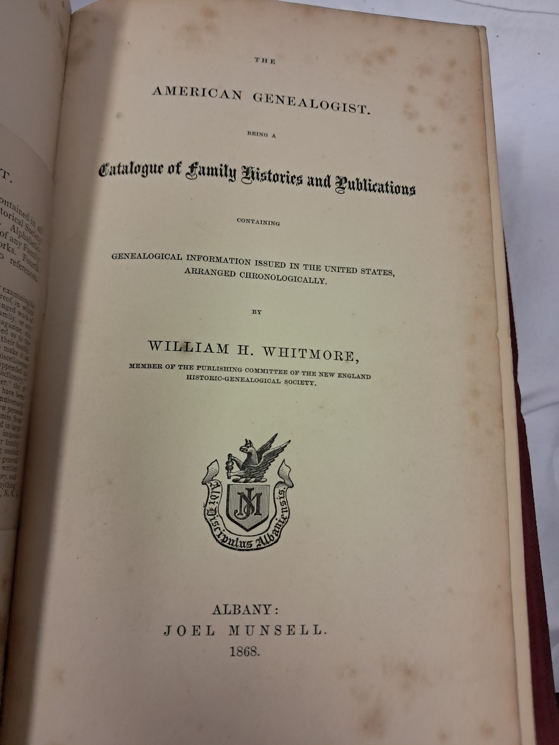 Burke "Selection of Arms Authorised by The Arms of Heraldry "Index to Pedigrees" - Volume 1 & 2 Whitmore & Durrie "Index to American Genealogies" The Manual of Rank and Nobility Burke "Selection of Arms Authorised by The