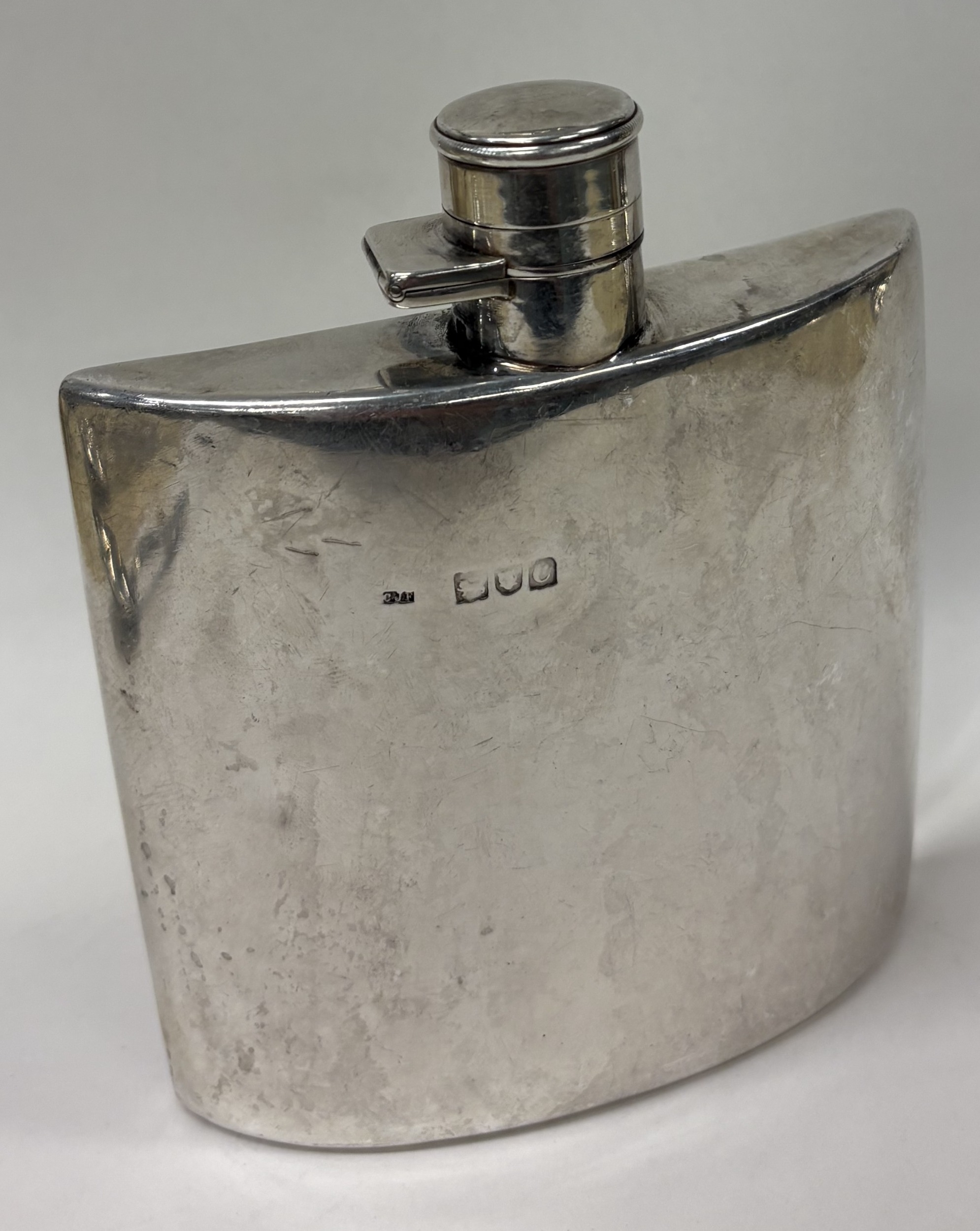 A large silver flask of curved form. London 1898. Approx. 220 grams. Est. £250 - £300.