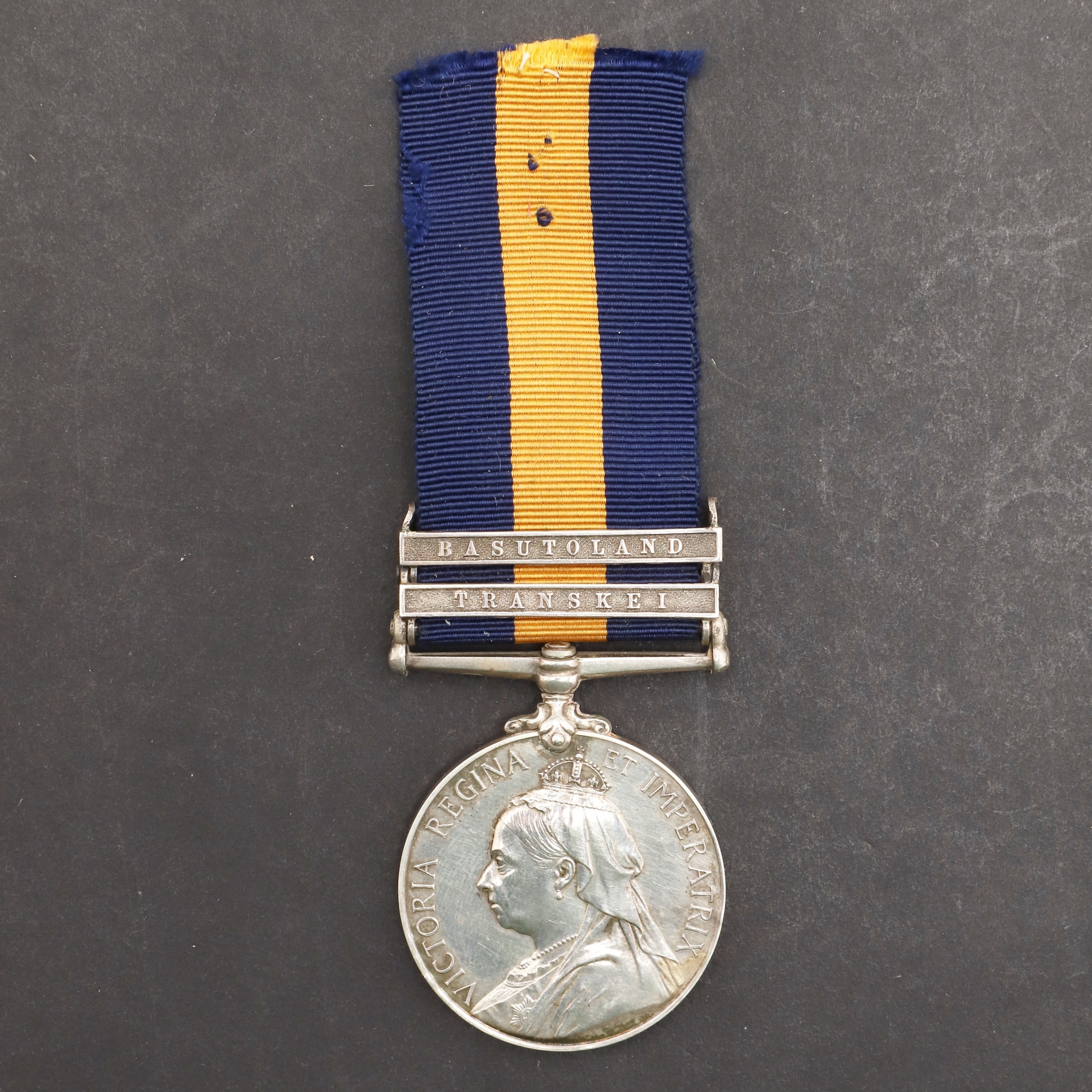 A TWO CLASP CAPE OF GOOD HOPE GENERAL SERVICE MEDAL 1880-97 TO THE C.T. RANGERS. A Cape of Good Hope Medal with Transkei and Basutoland clasps named to Pte J. Zinn C.T. Rangers. Cape Town Rangers, officially impressed naming undertaken in Cape Town by jewellers Armstrongs. Clasps confirmed to the roll. Thought to be one of only 490 such medals with this two clasp combination.