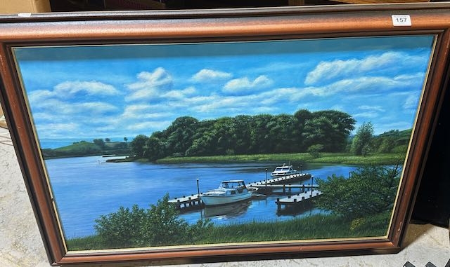 Large Framed J. Mc Gultion Oil - Boats At Dock
