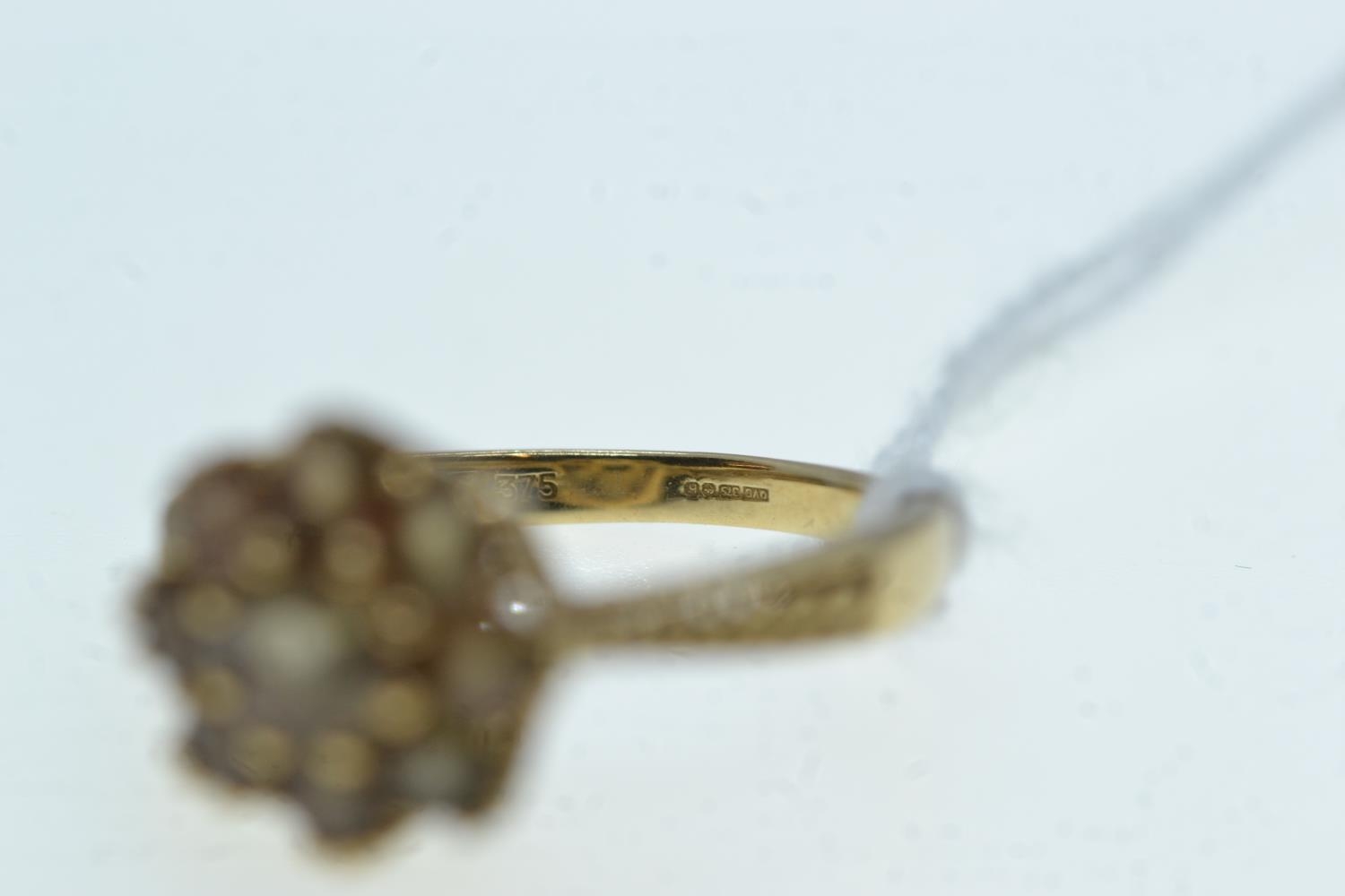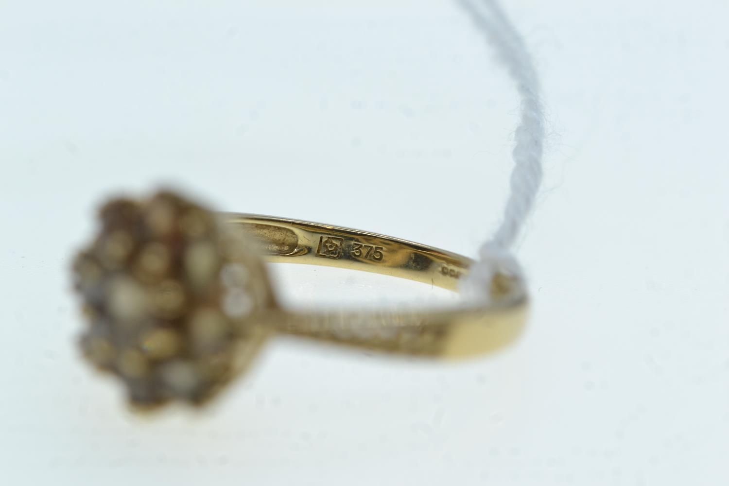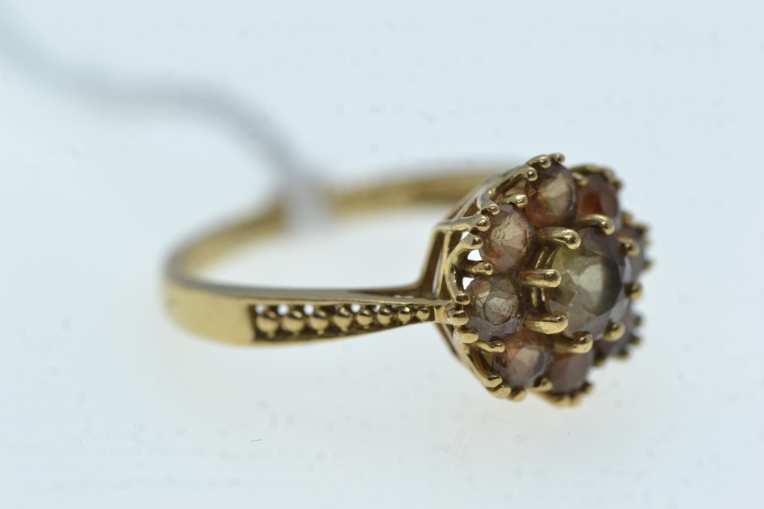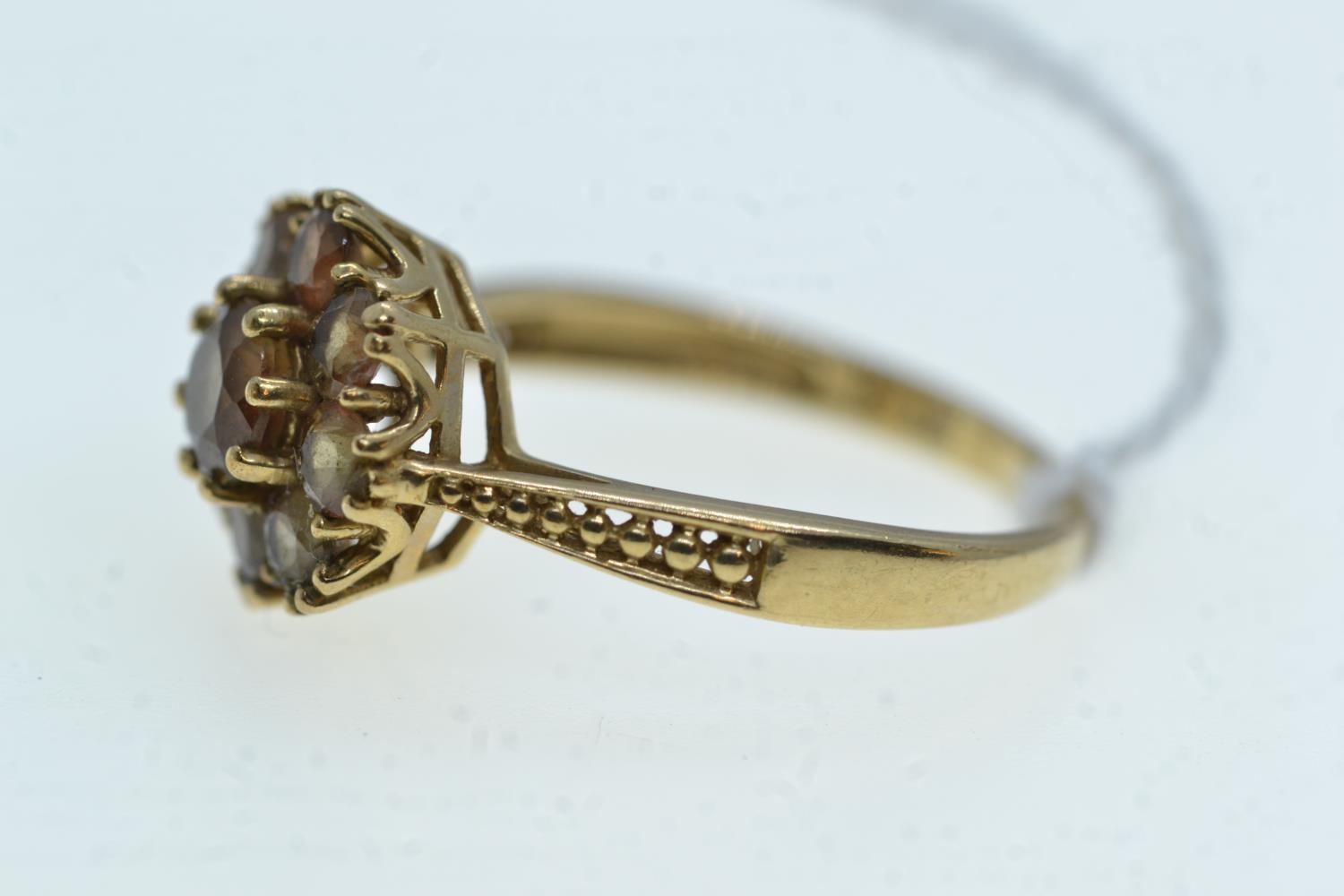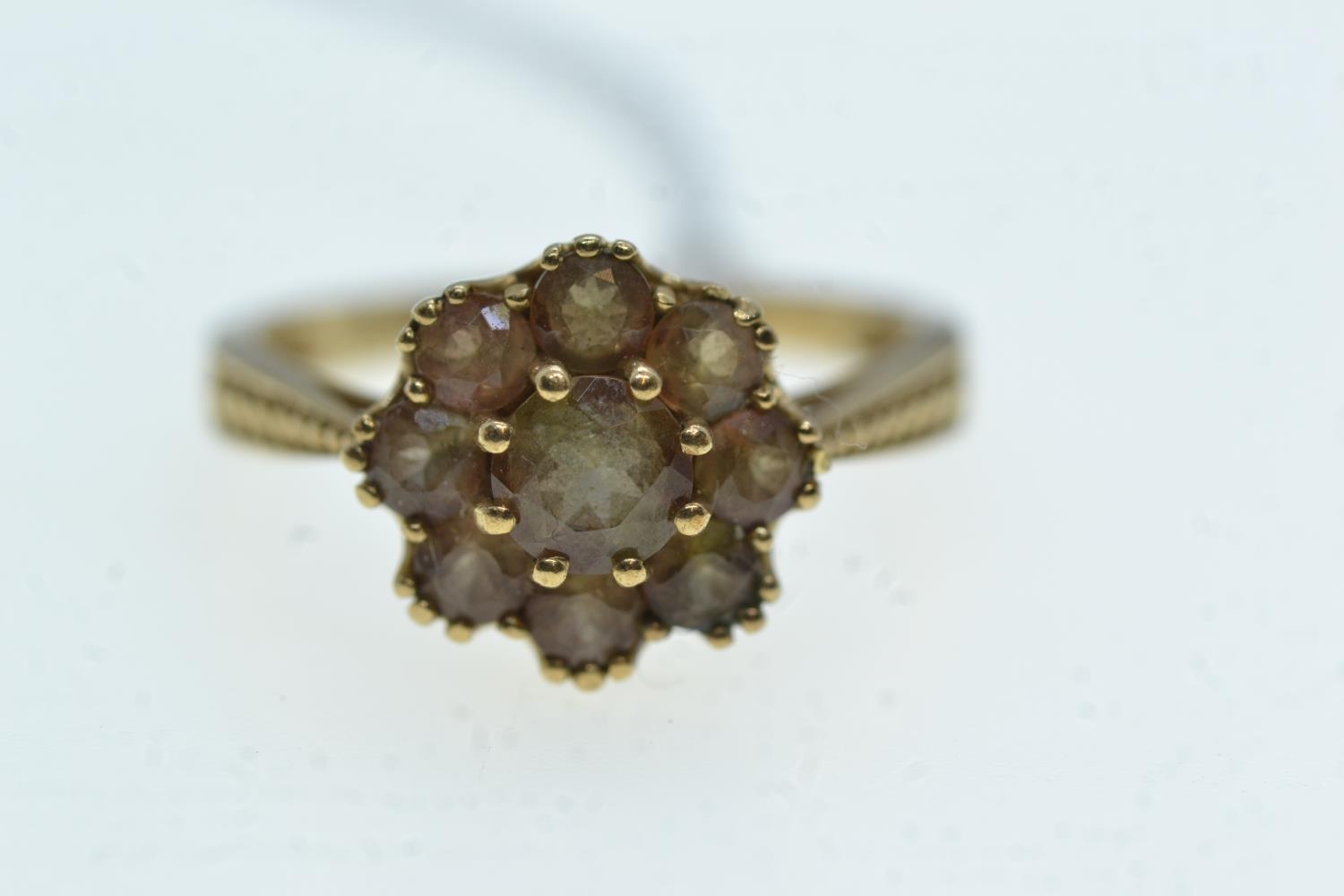 9ct gold & brown stone cluster ring, size N, 2.51 grams