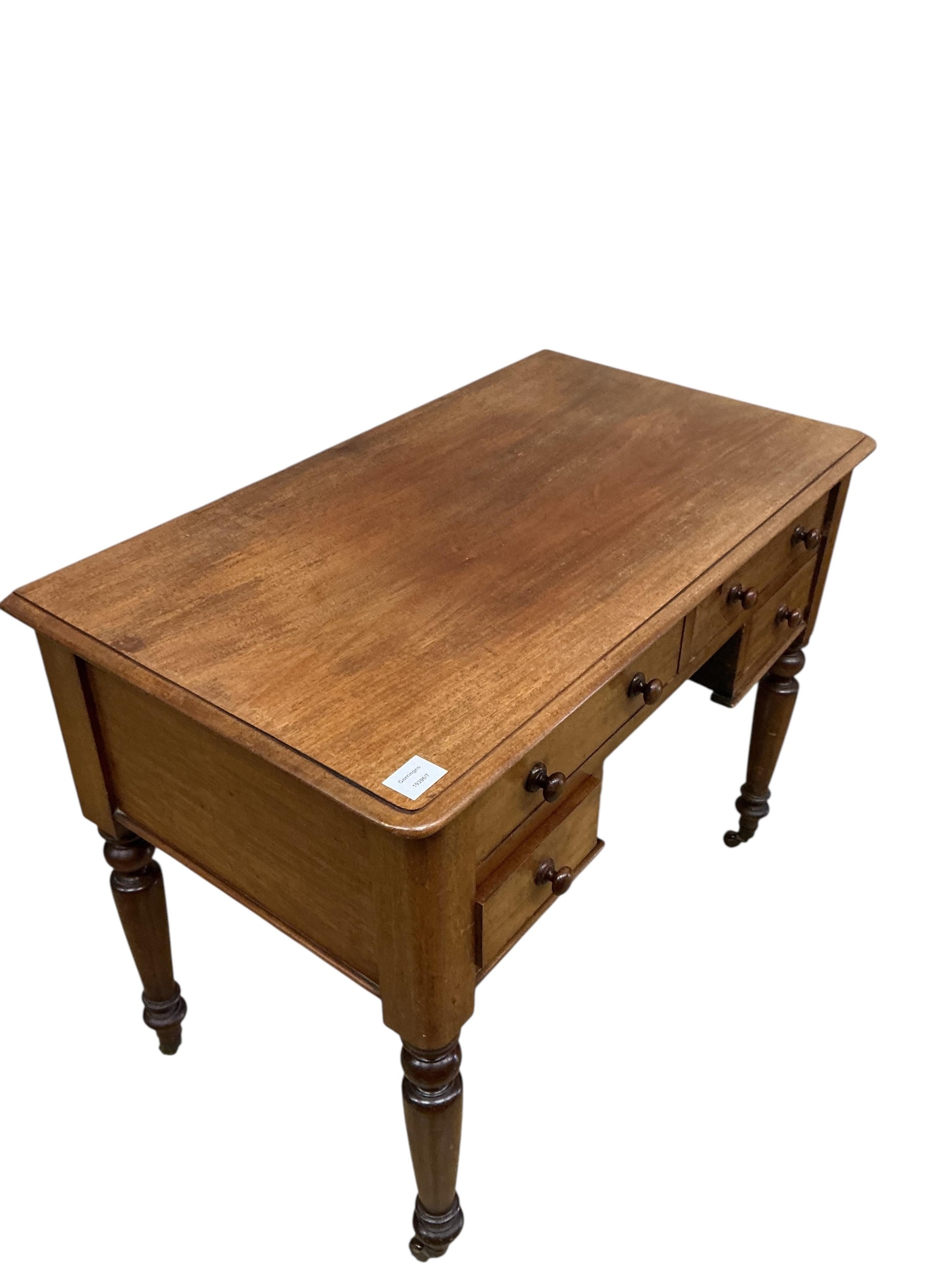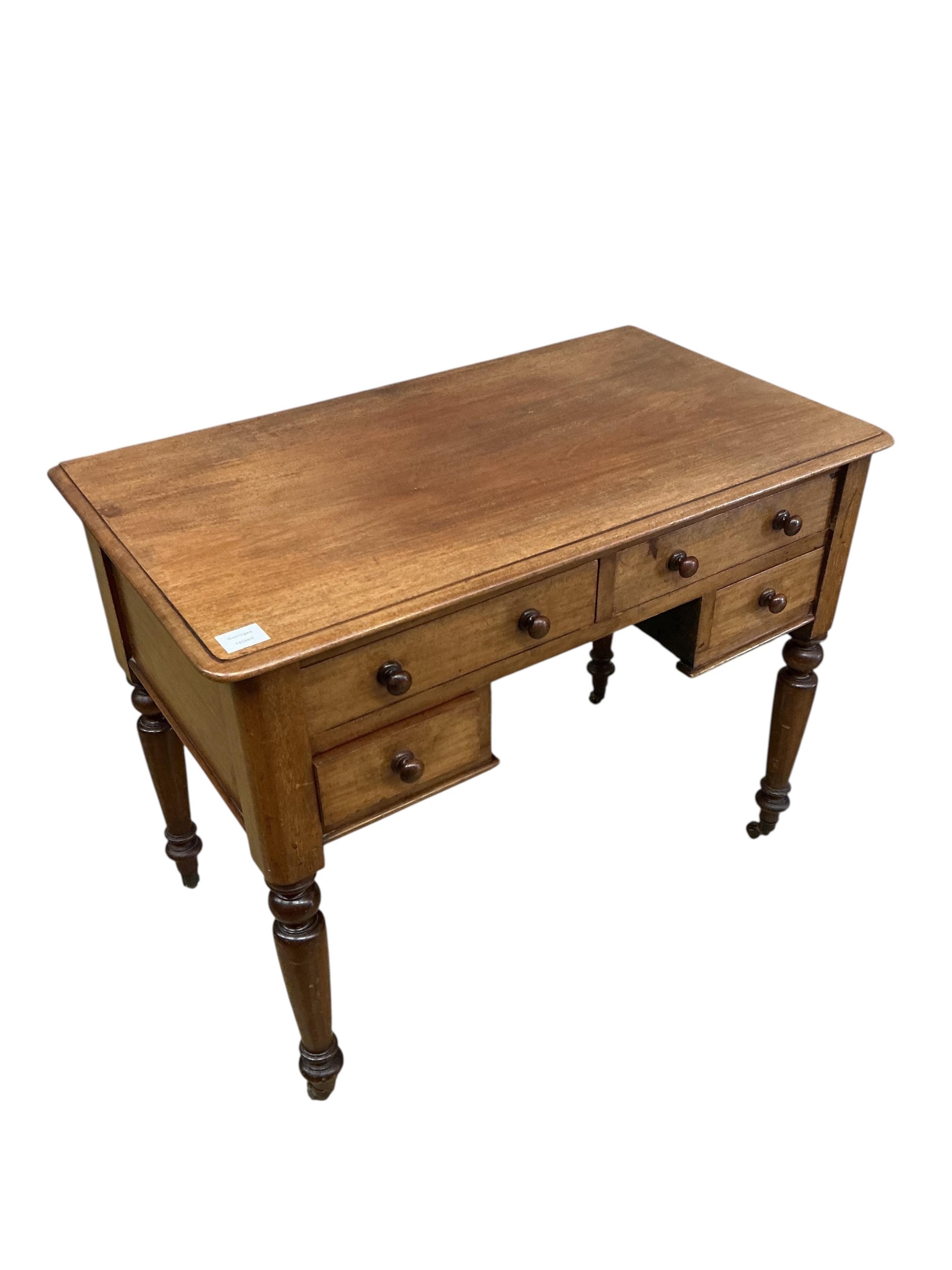 A Victorian mahogany kneehole dressing table, width 91cm, depth 51cm, height 74cm
