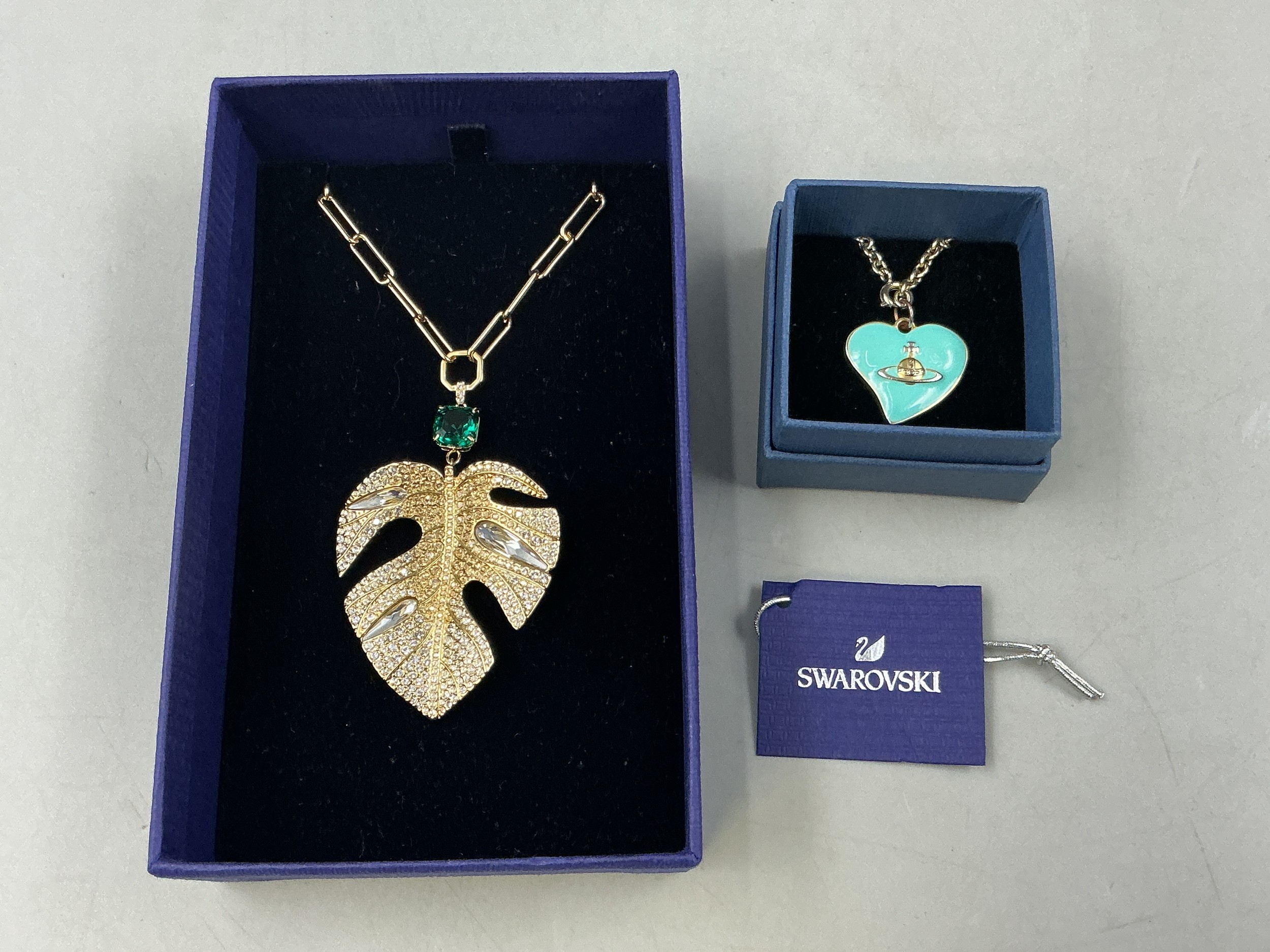 Swarovski Tropical Leaf Gold - Tone Necklace with Green Gemstone and a Vivienne Westwood Fragrance Charm