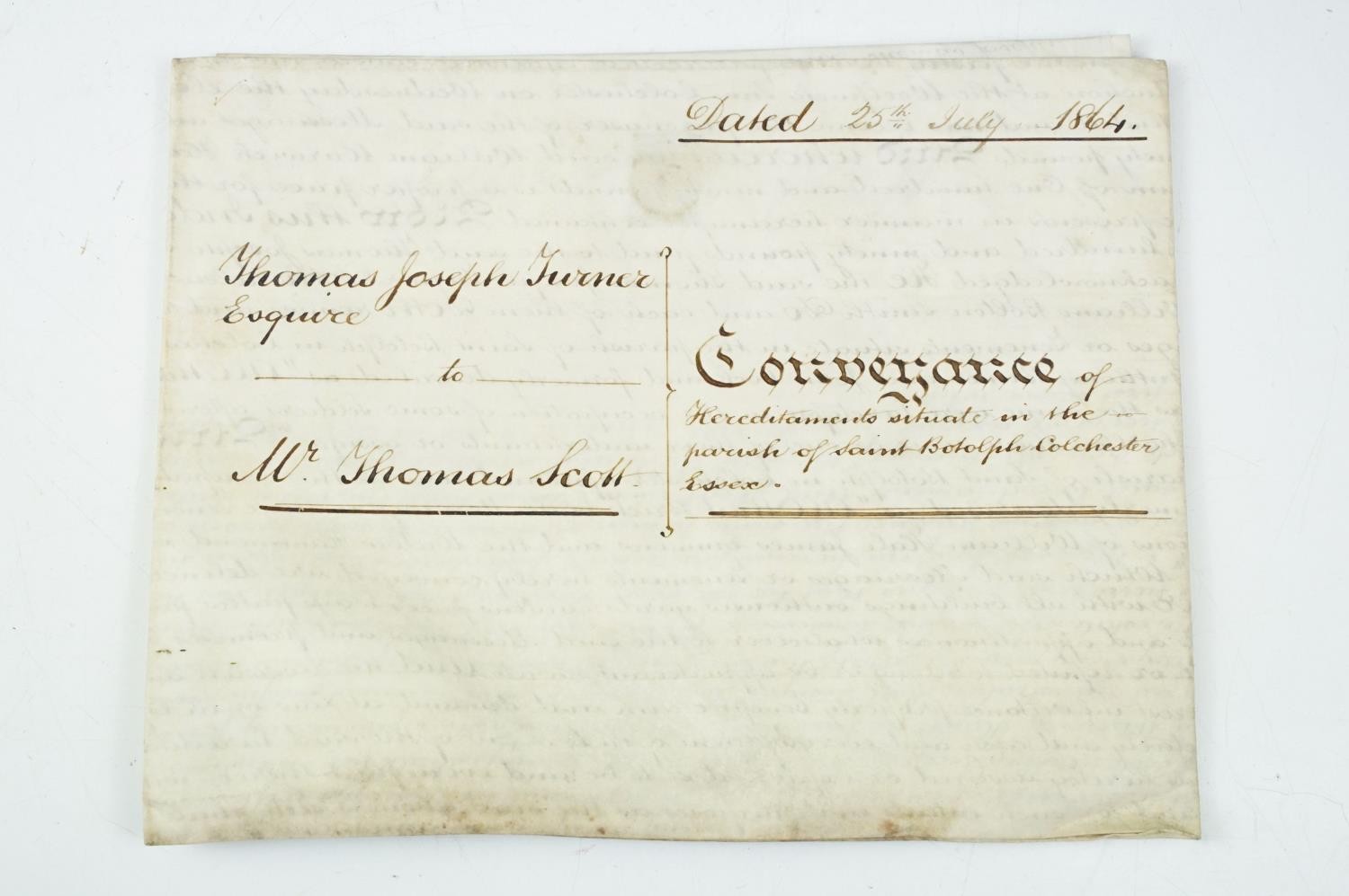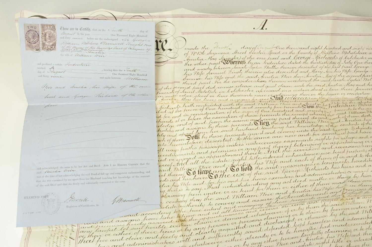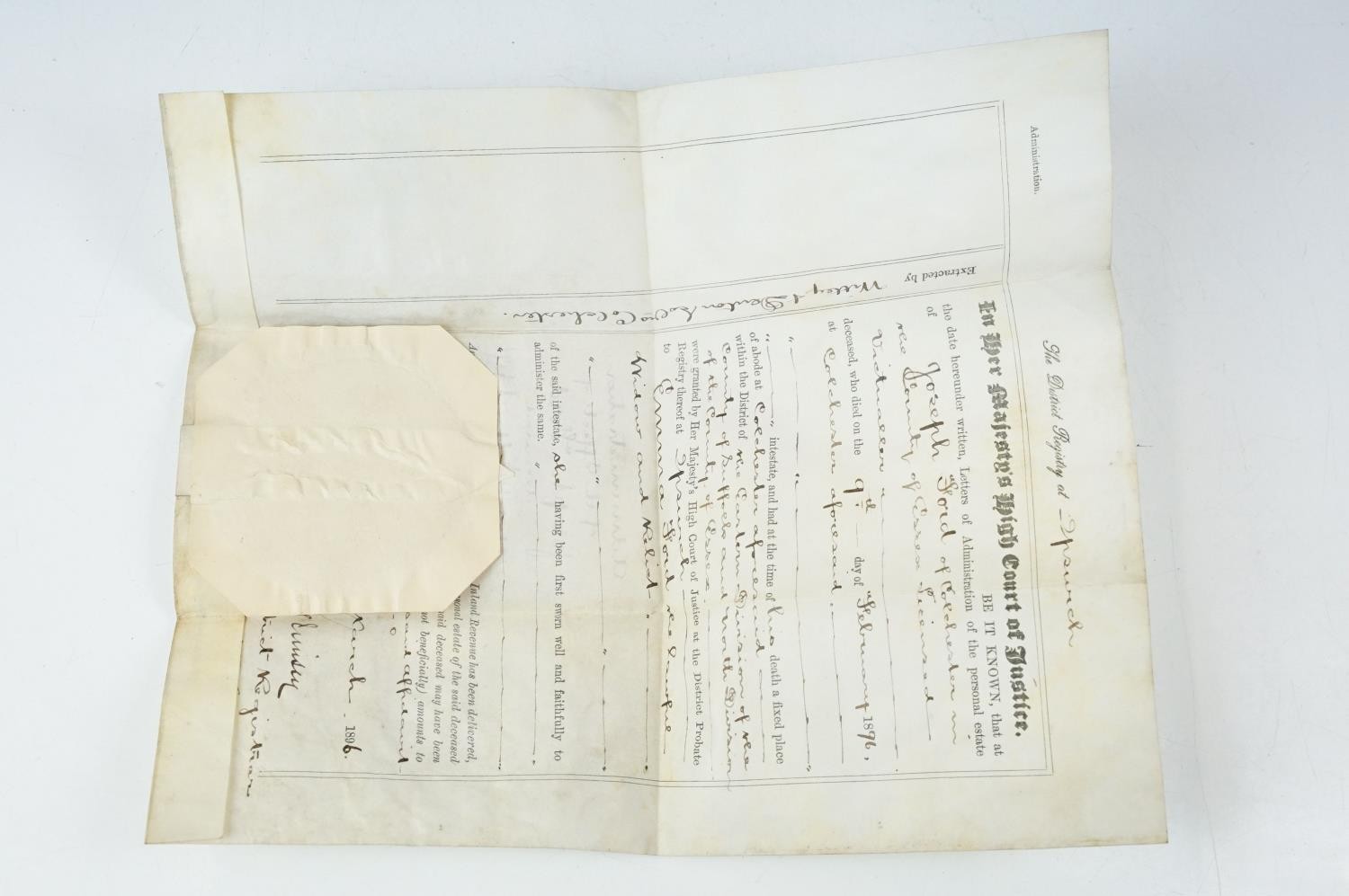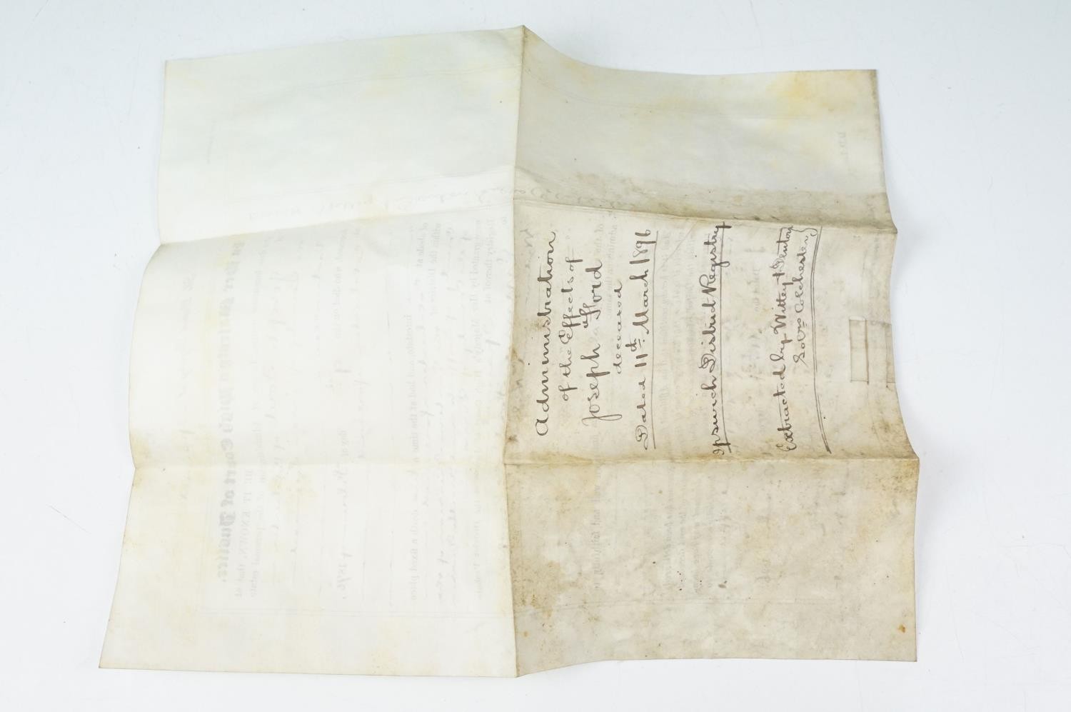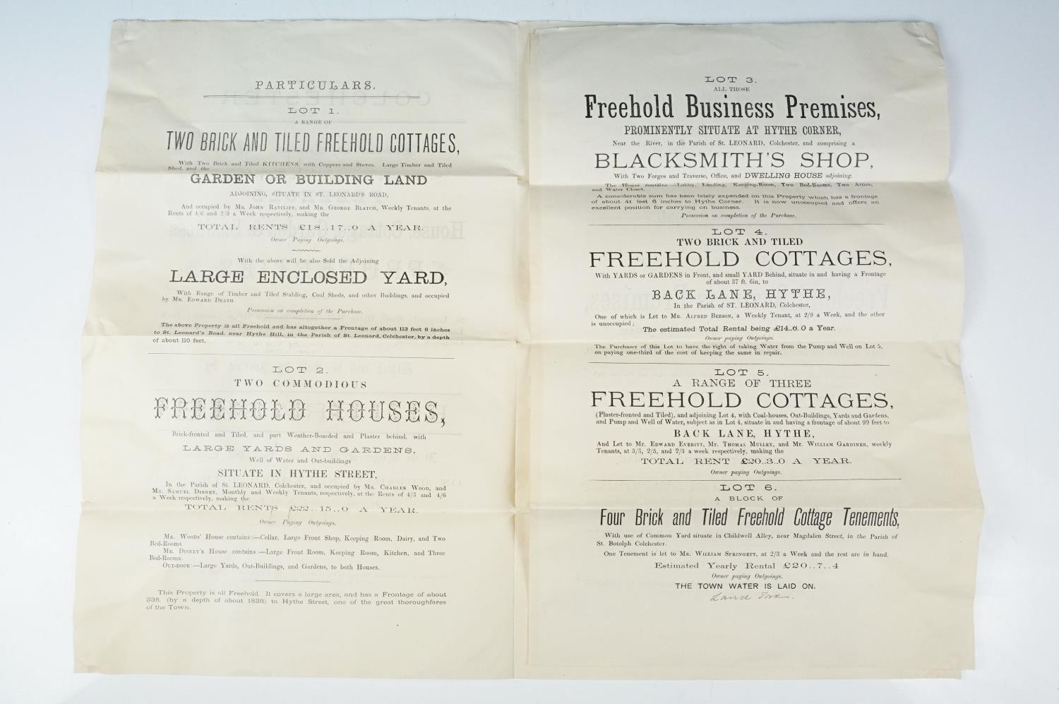 Ephemera - two indentures, 1863 and 1869, Particulars and Conditions of Sale for Properties sold by auction by EJ Craske, 1886, an Abstract of the Title, 1890 and a letter from the High Court of Justice relating to a person dying intestate in 1896 (5)