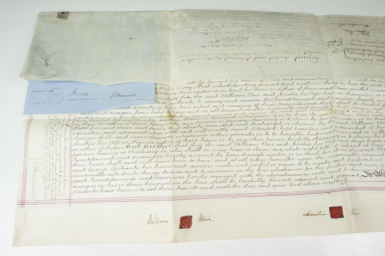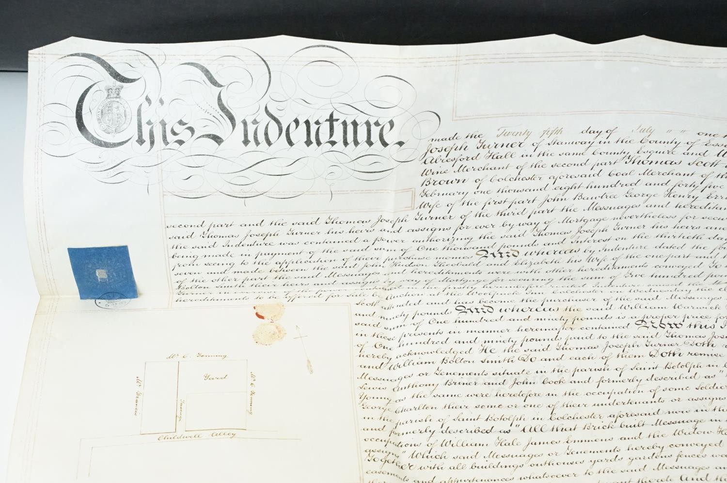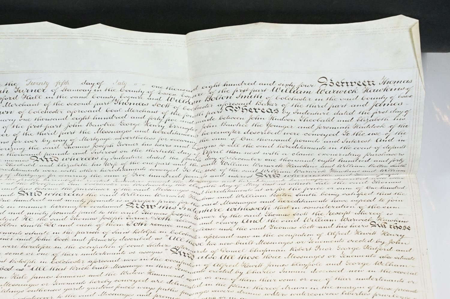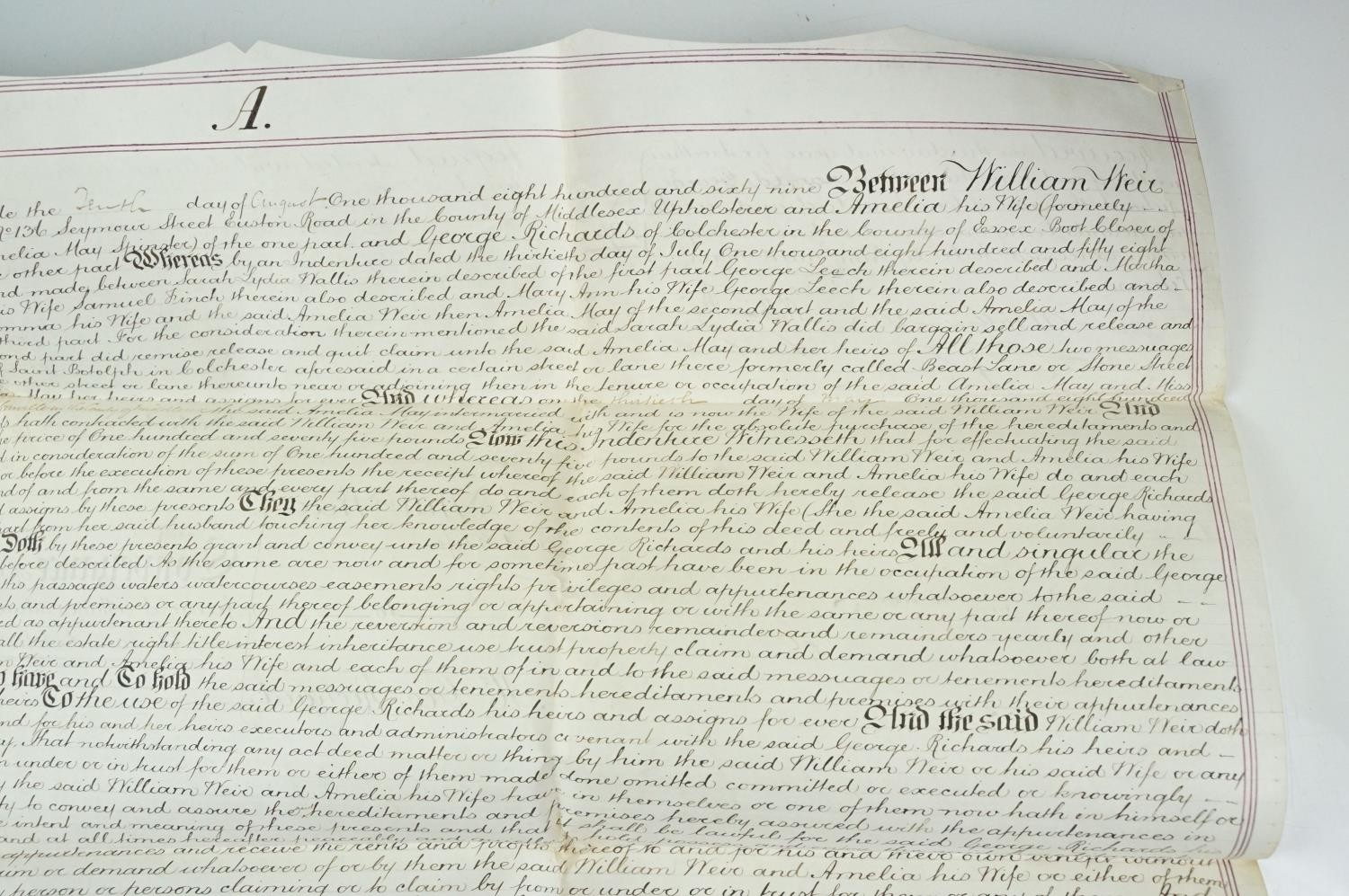 Ephemera - two indentures, 1863 and 1869, Particulars and Conditions of Sale for Properties sold by auction by EJ Craske, 1886, an Abstract of the Title, 1890 and a letter from the High Court of Justice relating to a person dying intestate in 1896 (5)