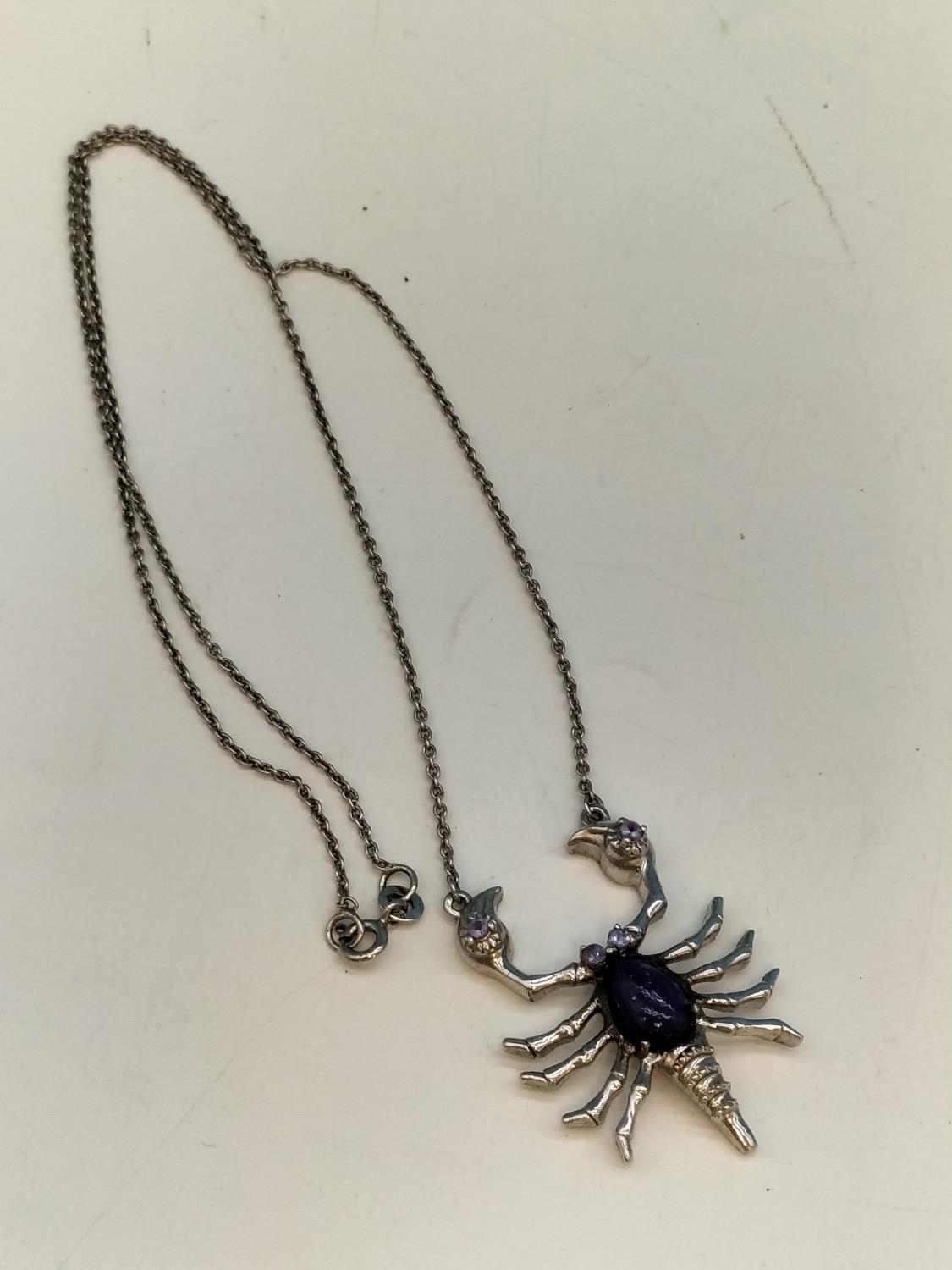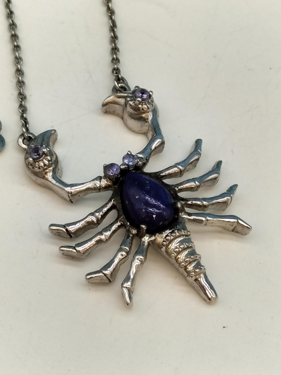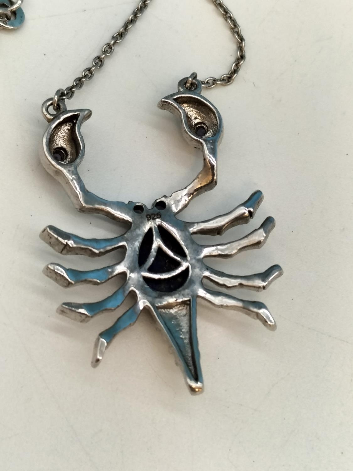 925 Silver Lobster Pendant set with Lapis on 16" Chain.