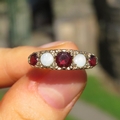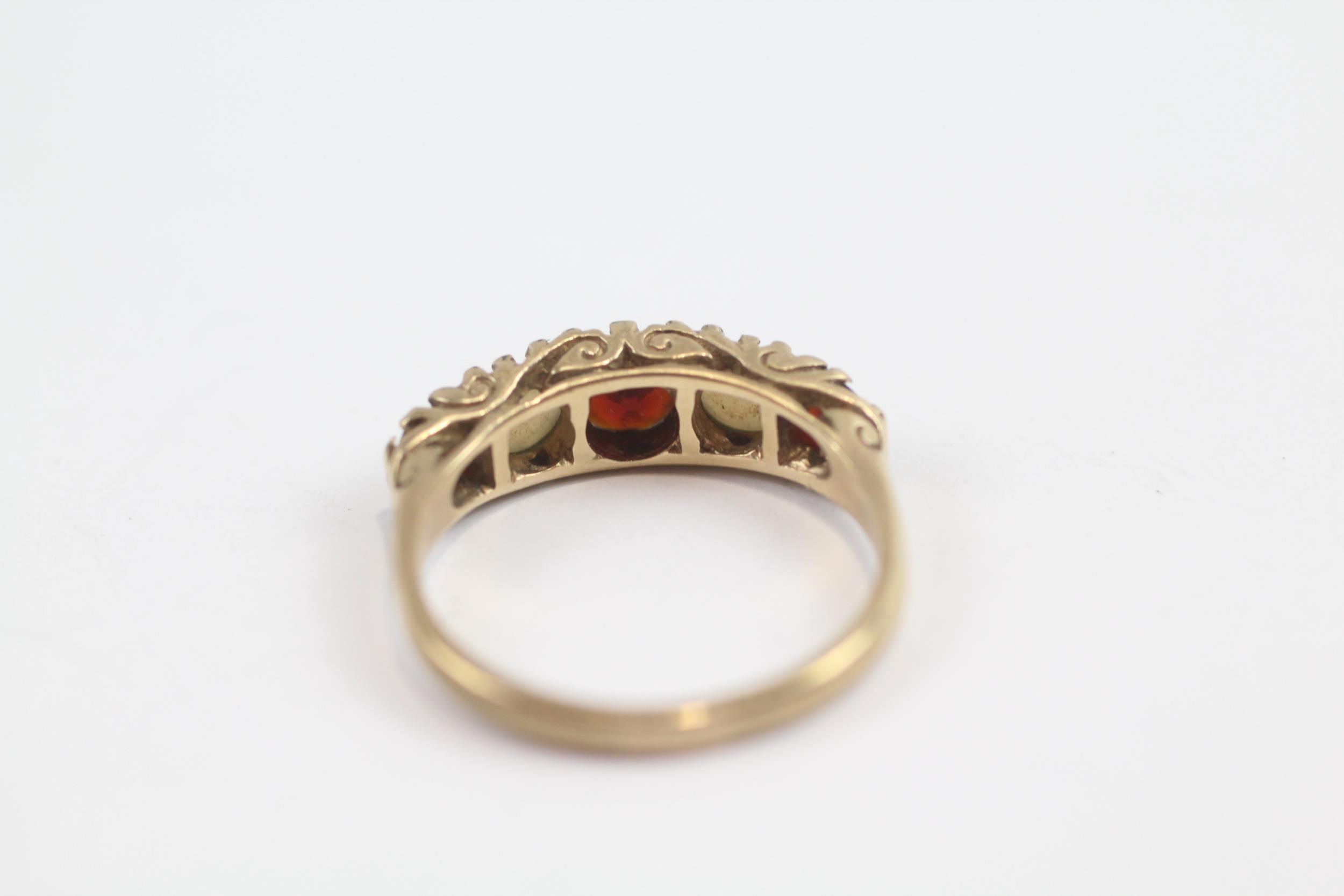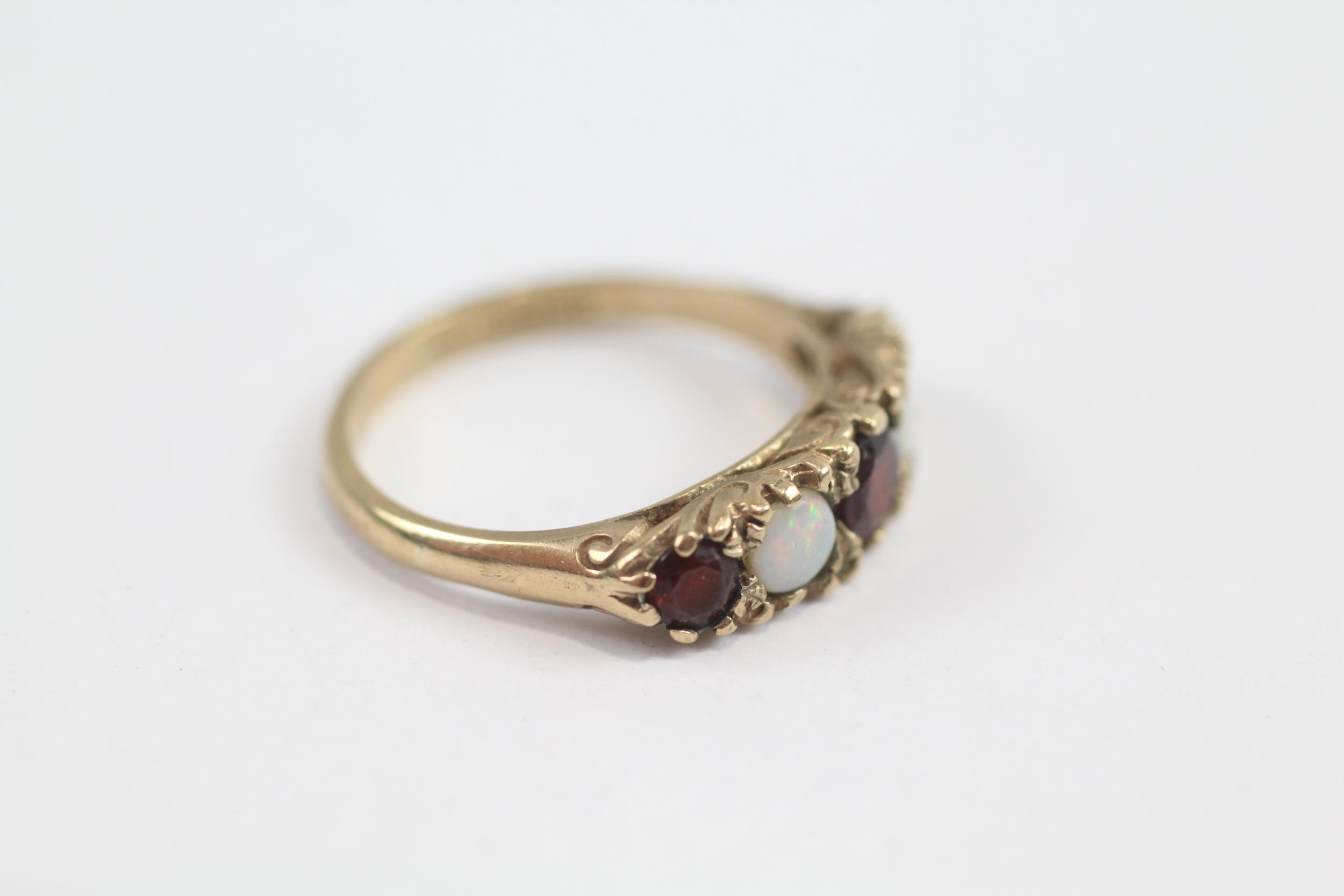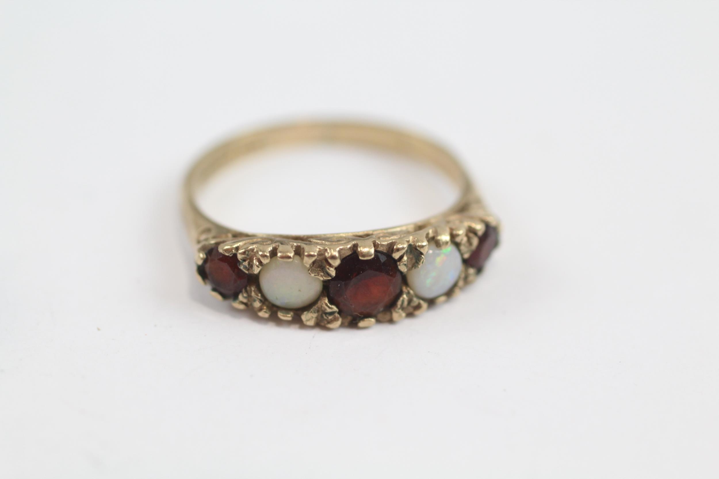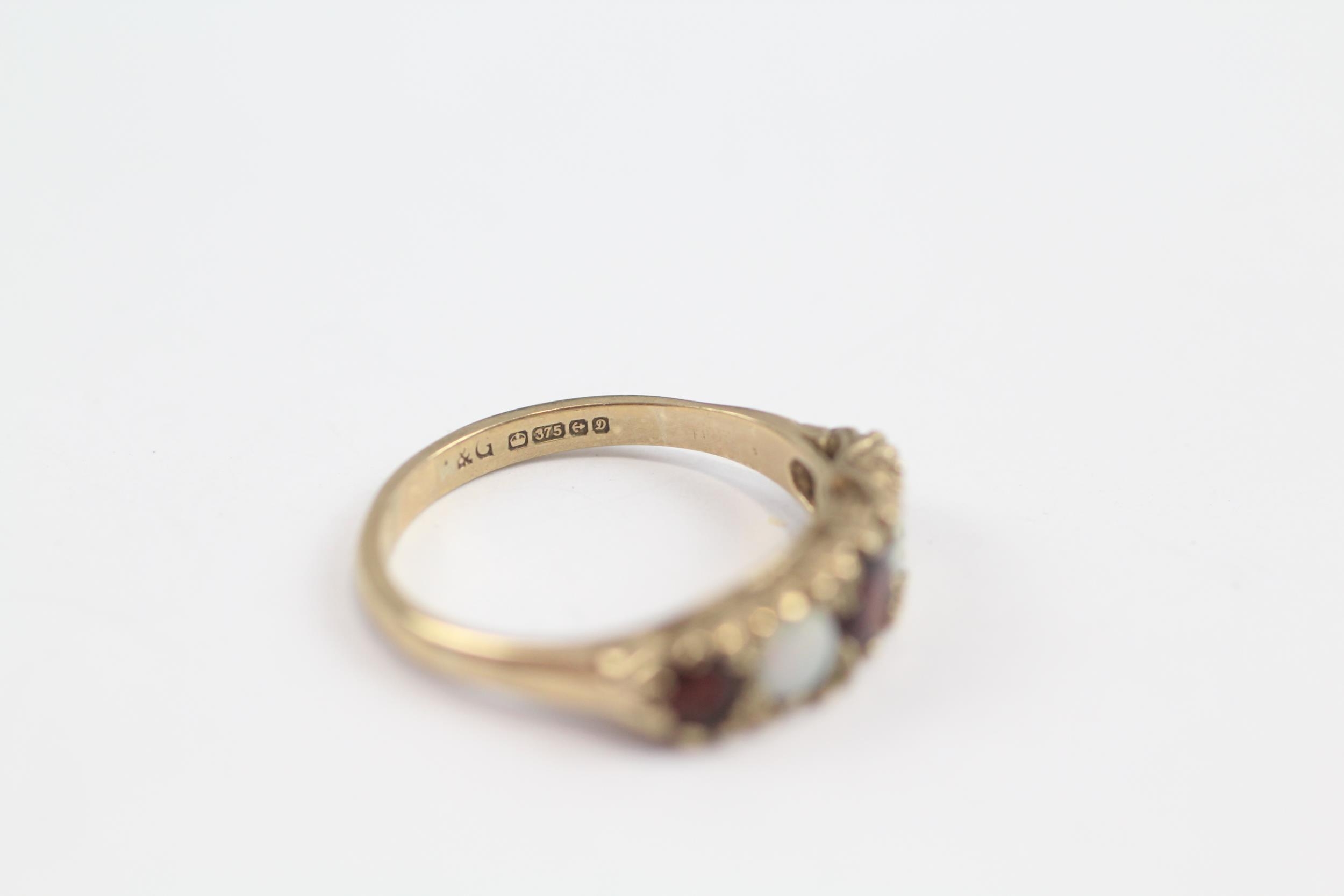 9ct Gold Garnet & White Opal Five Stone Ring (3.1g) Size O