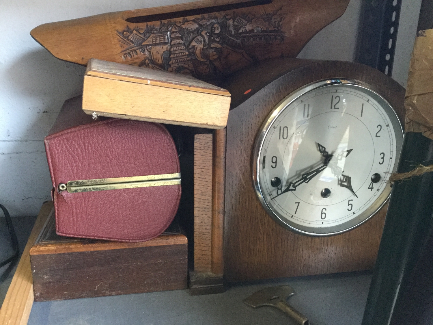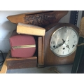 A mixed lot,to include oak cased mantel clock, vintage bag etc -