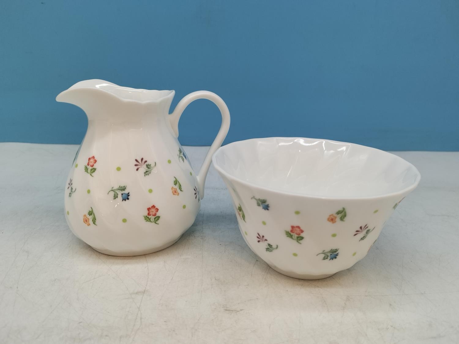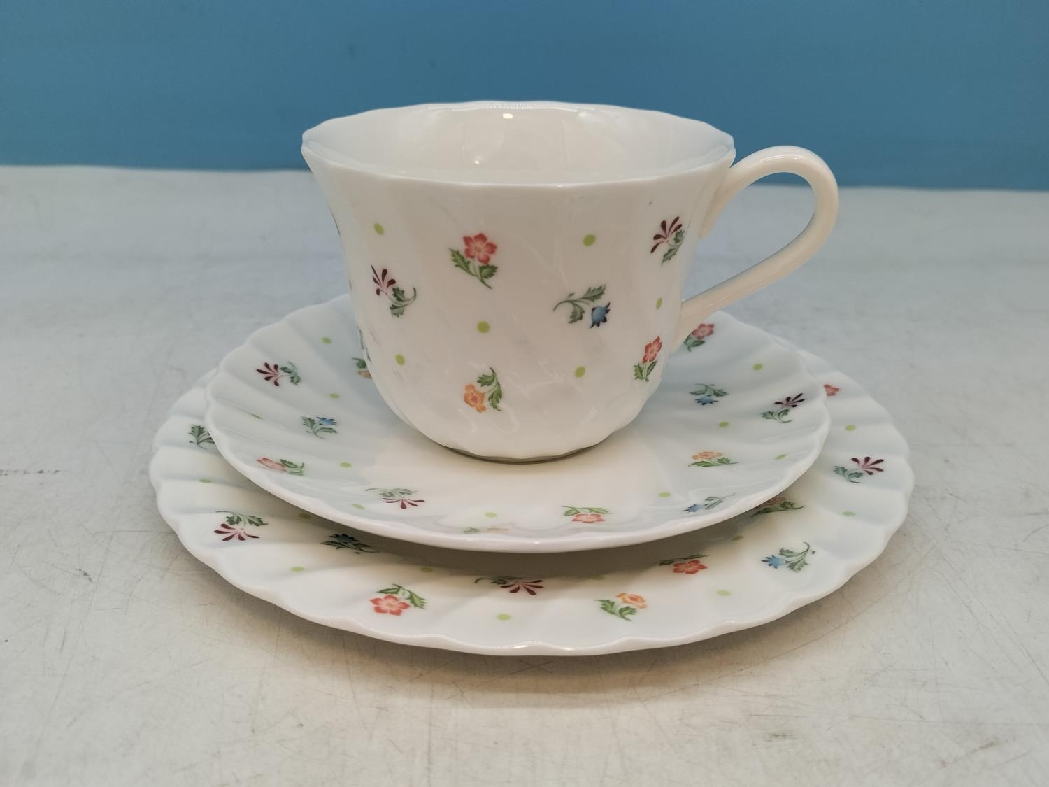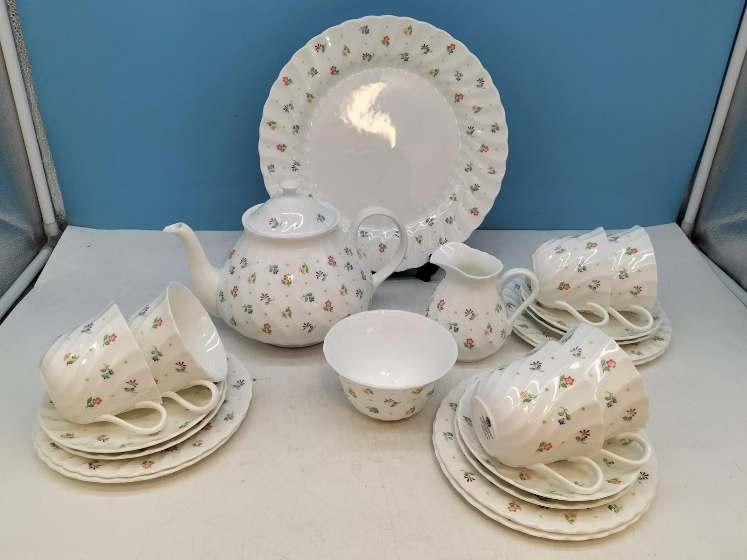 Wedgwood China 22 Piece Part Tea Set in the 'Cascade' Pattern to include Teapot, Milk Jug, Sugar Bowl, Trios (6) and Large Plate.