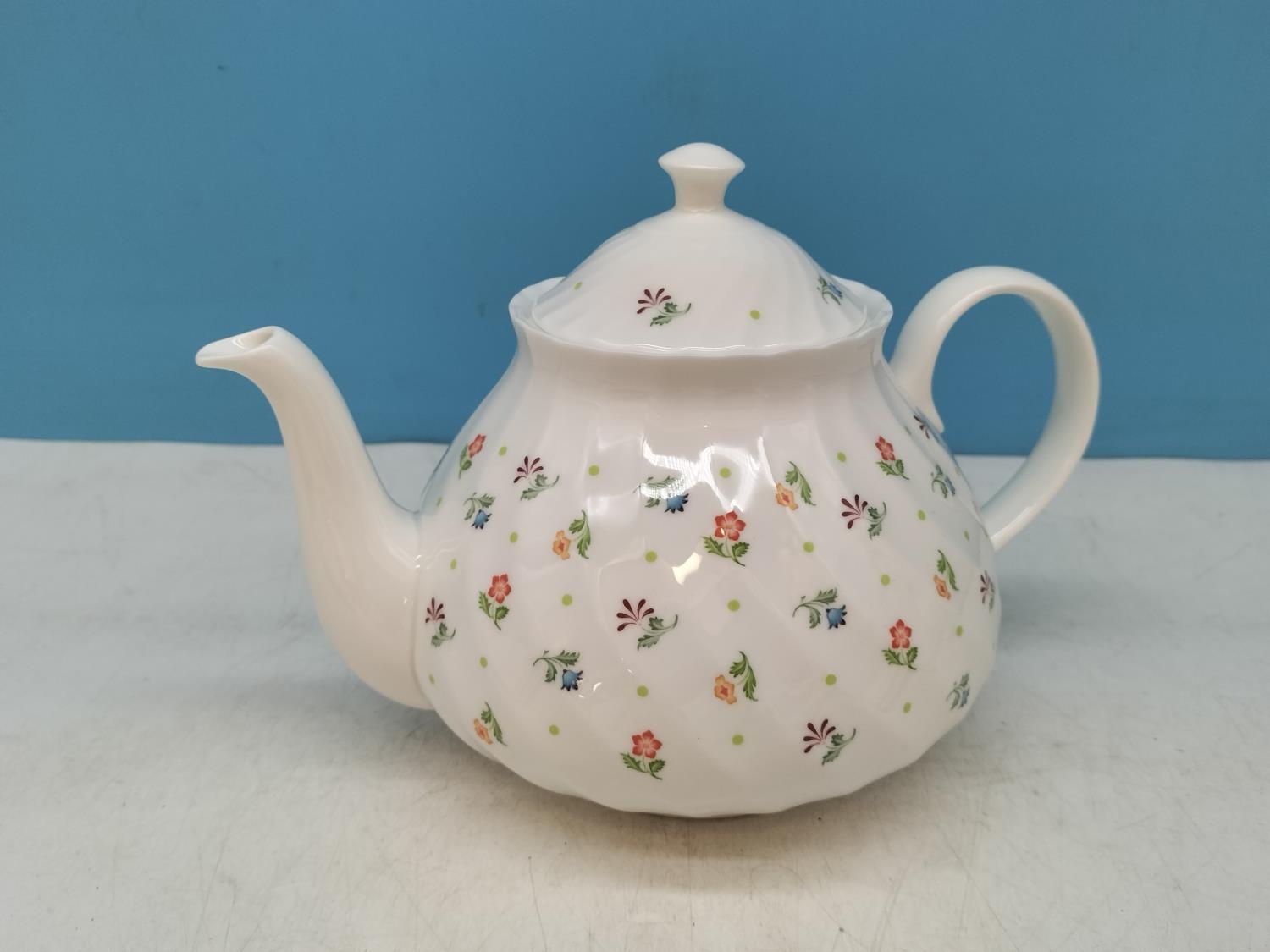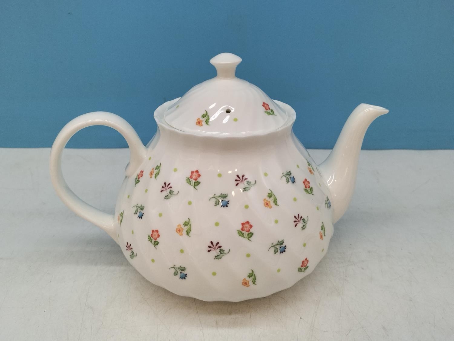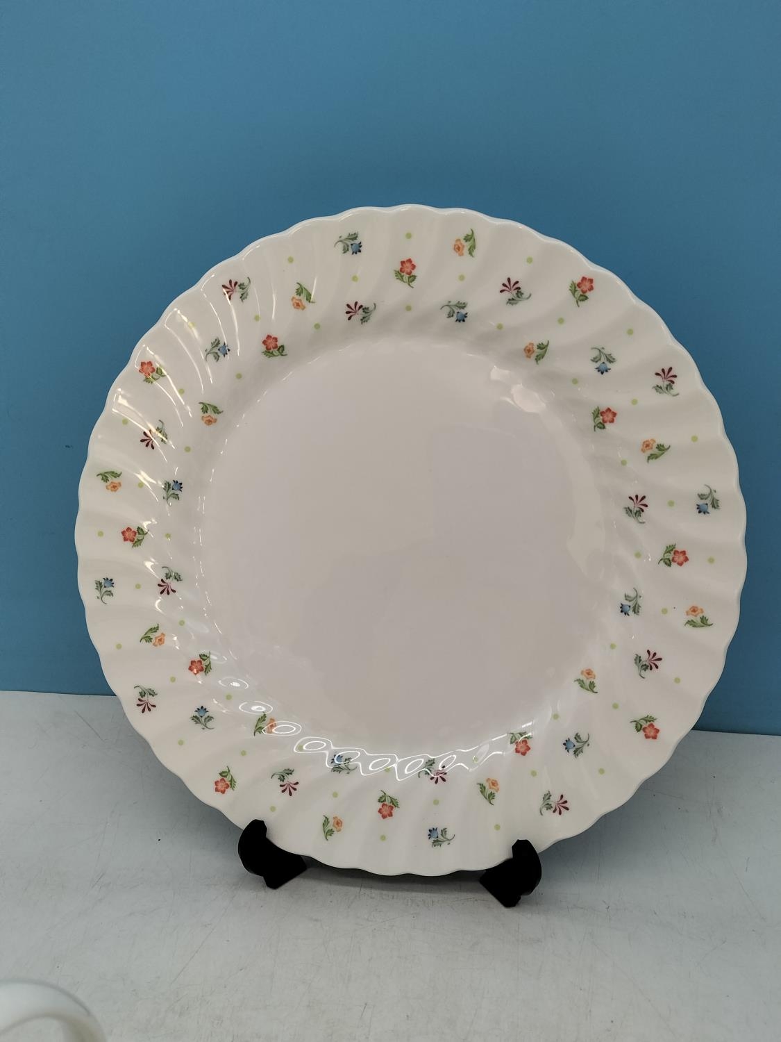 Wedgwood China 22 Piece Part Tea Set in the 'Cascade' Pattern to include Teapot, Milk Jug, Sugar Bowl, Trios (6) and Large Plate.