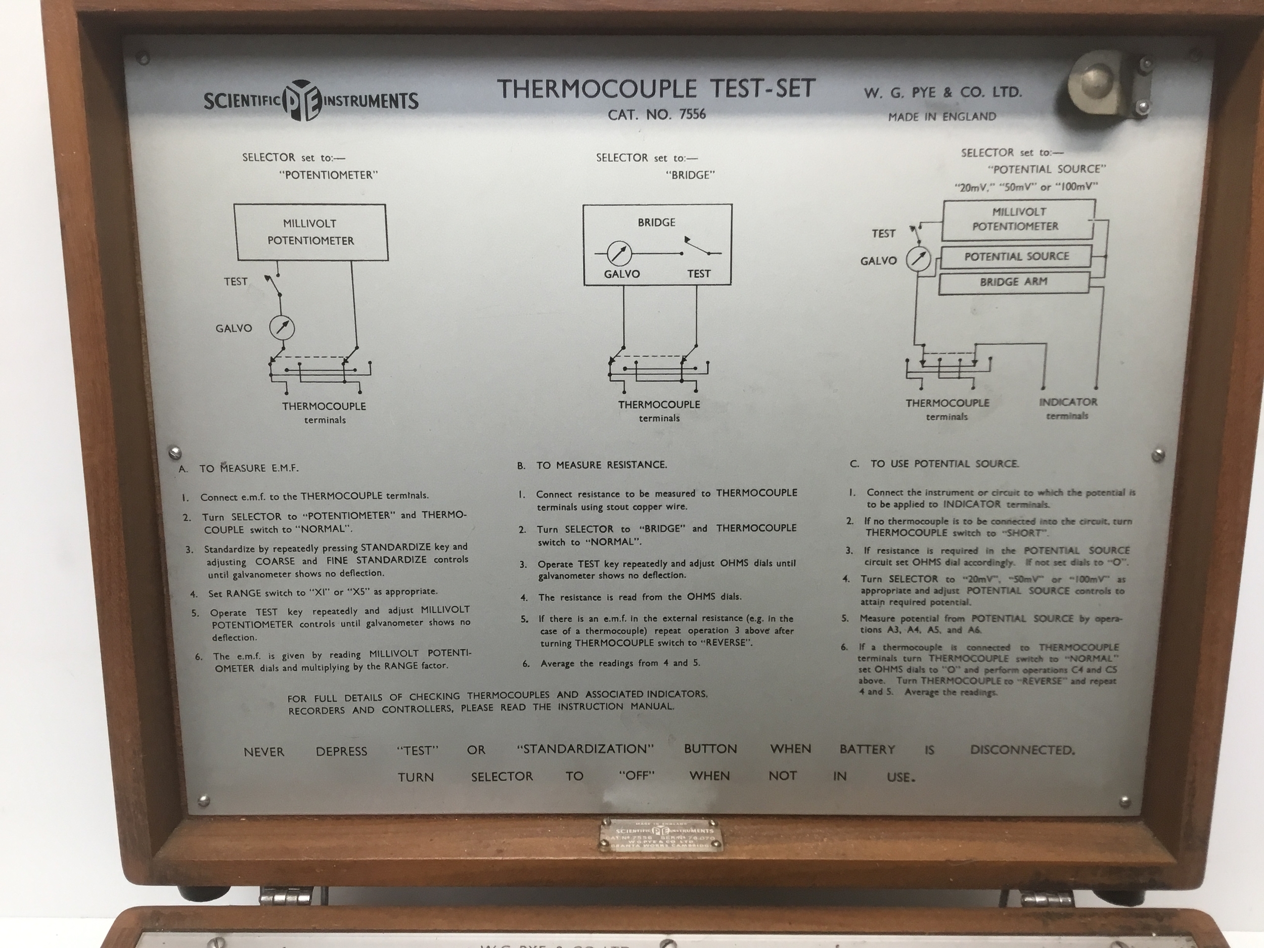 Pte scientific instruments thermocouple test set in a wooden case