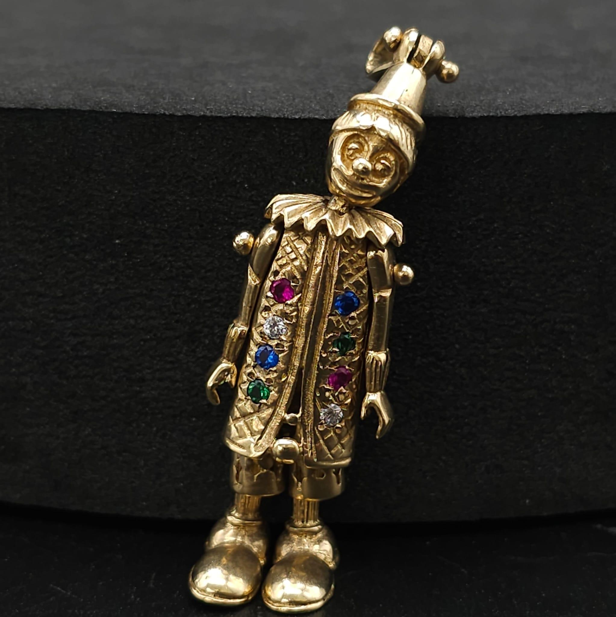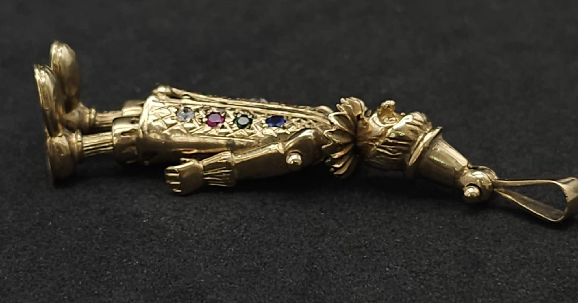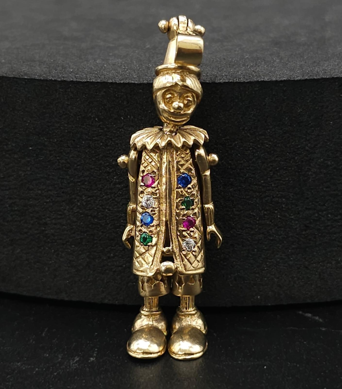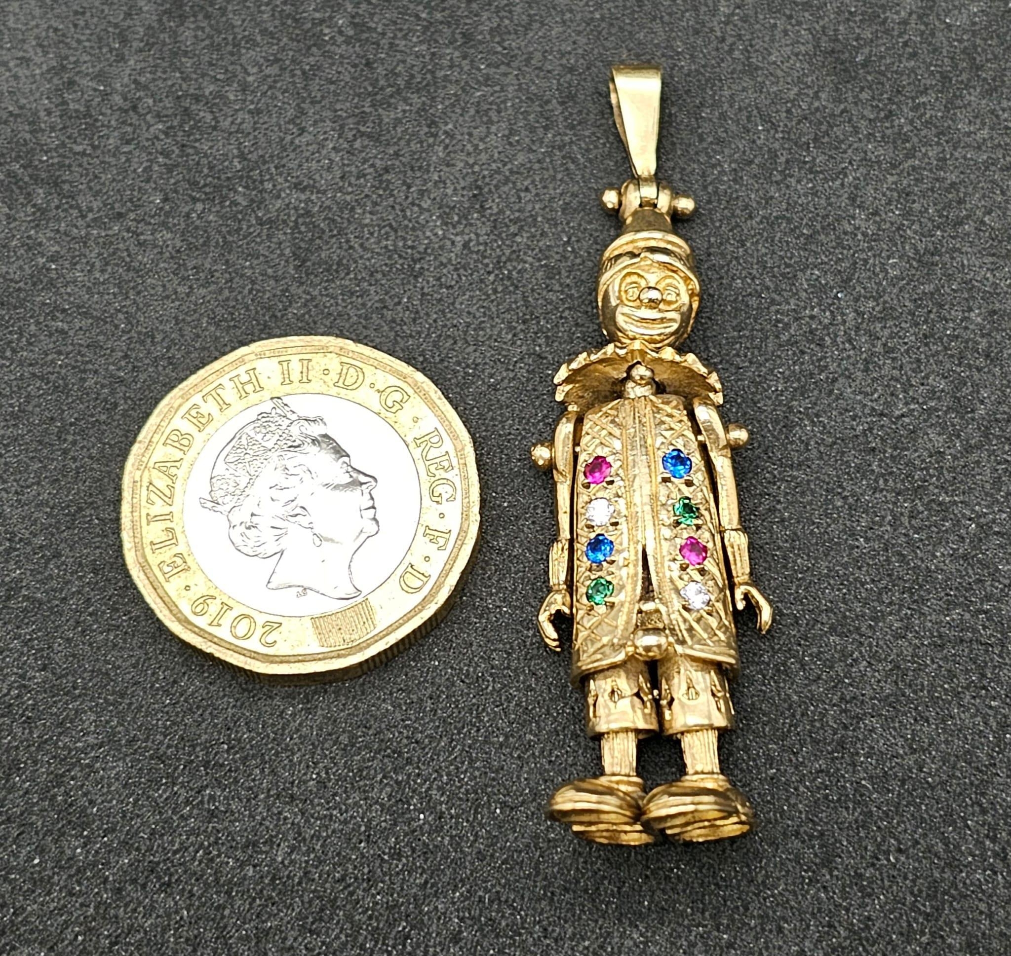 A LARGE 9K YELLOW GOLD GEM SET CLOWN PENDANT, WEIGHT 9.7G AND 5CM LONG APPROX