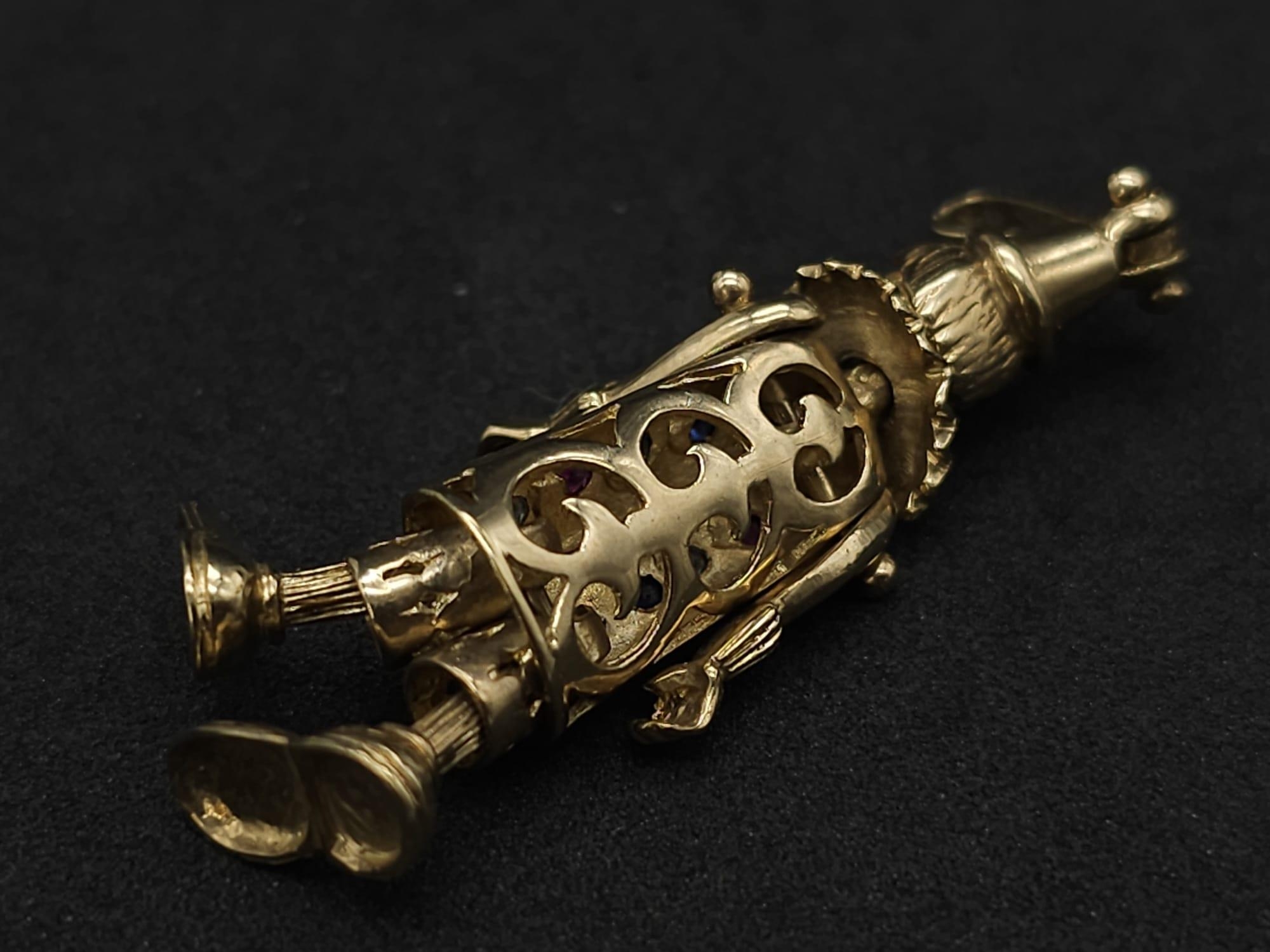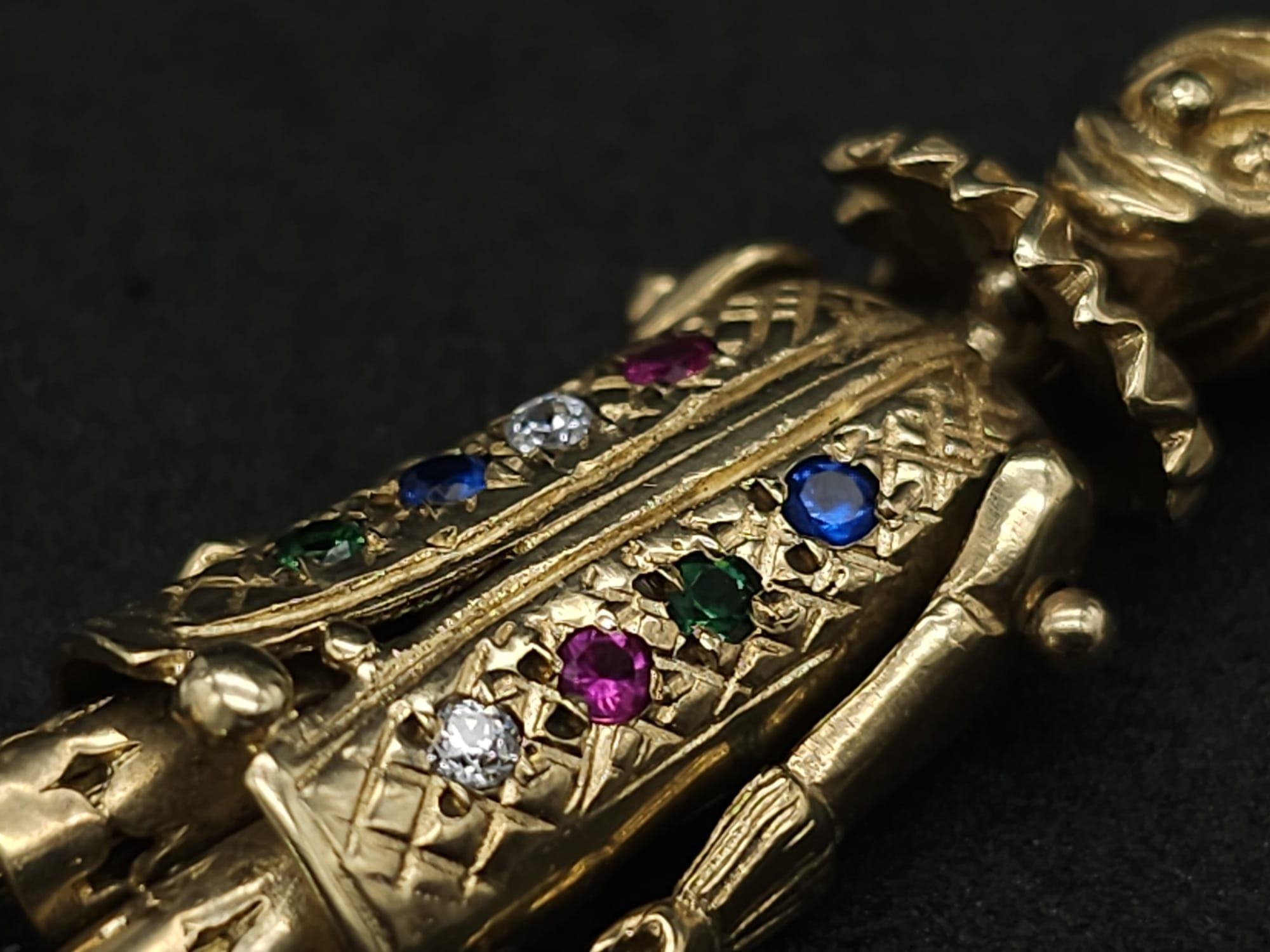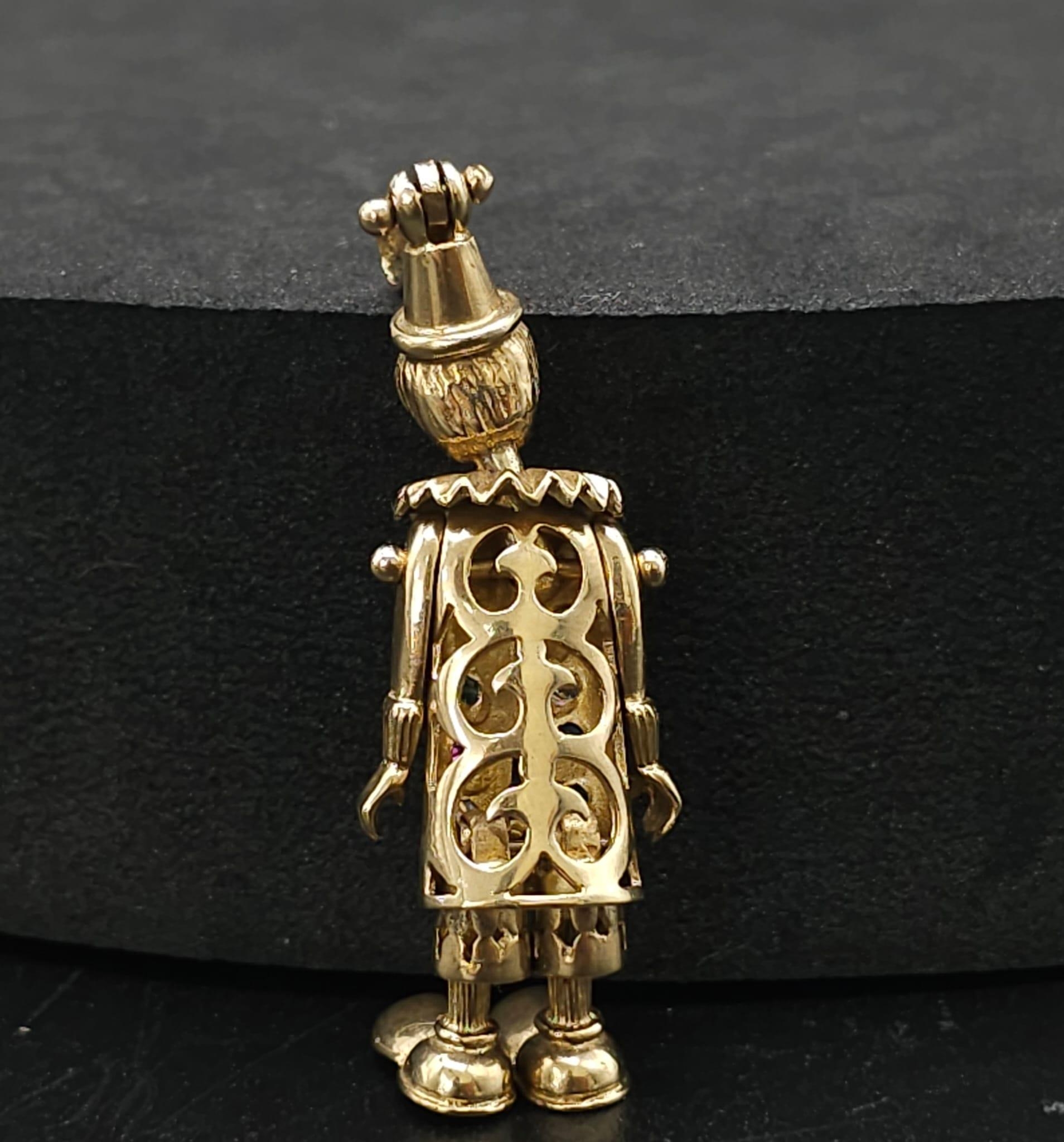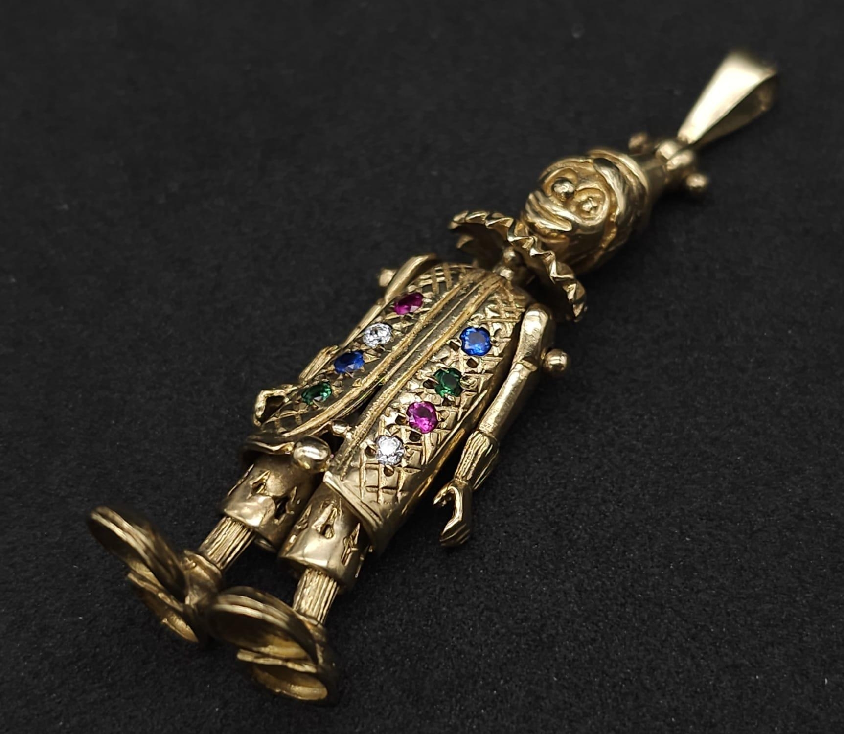 A LARGE 9K YELLOW GOLD GEM SET CLOWN PENDANT, WEIGHT 9.7G AND 5CM LONG APPROX