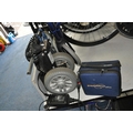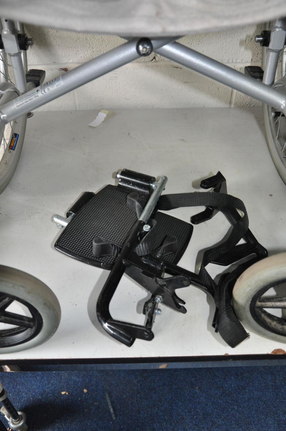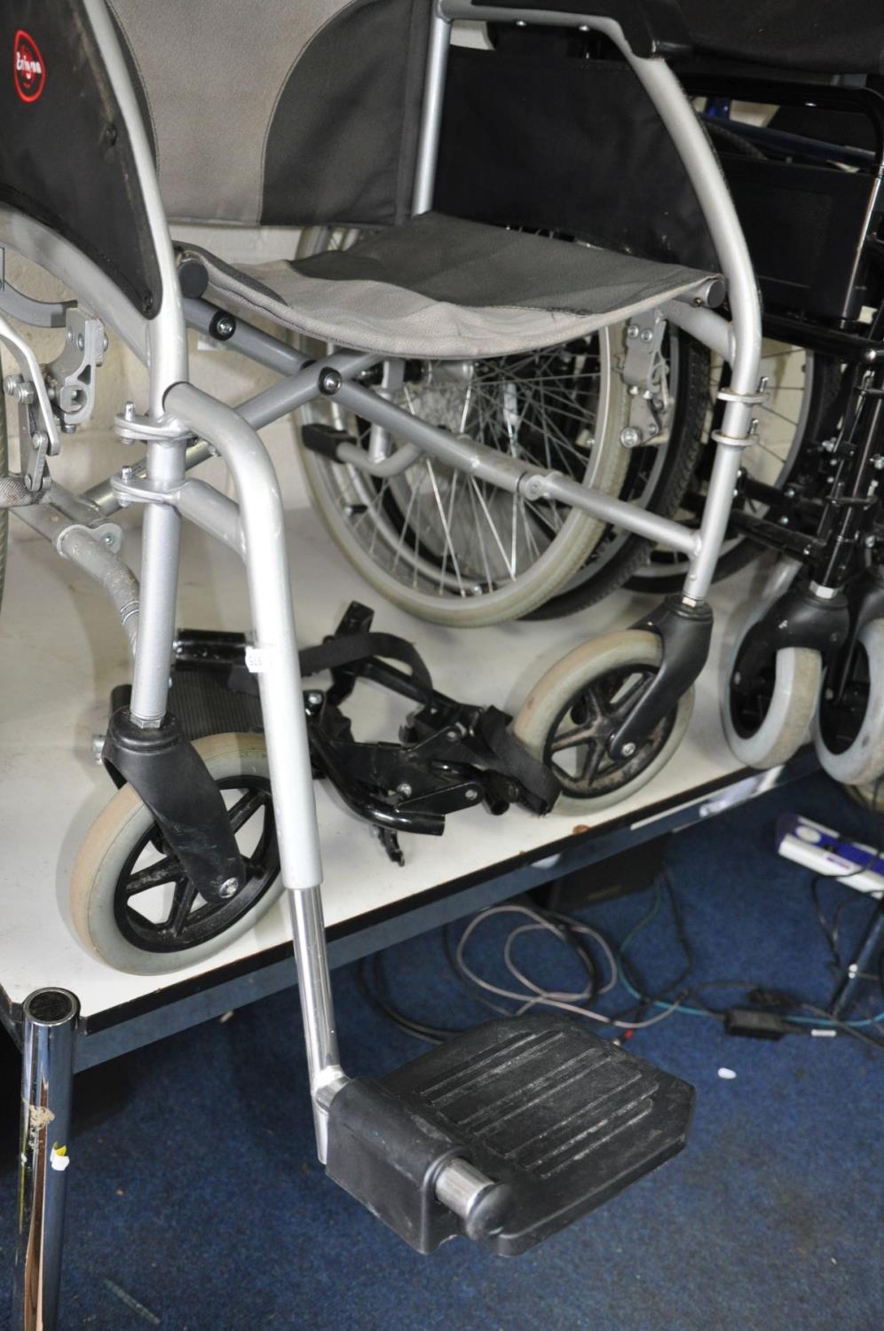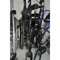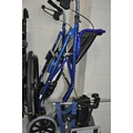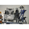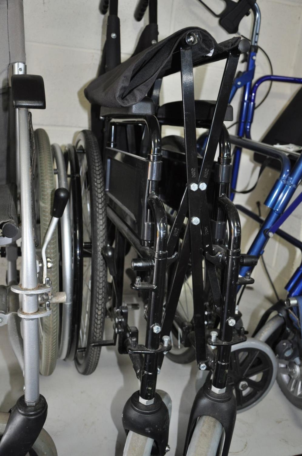 AN ENIGMA FOLDING WHEELCHAIR (missing one footrest), another folding wheelchair, a Disability walker and a Powertec wheelchair converter with charger and one battery (PAT pass and ?????)