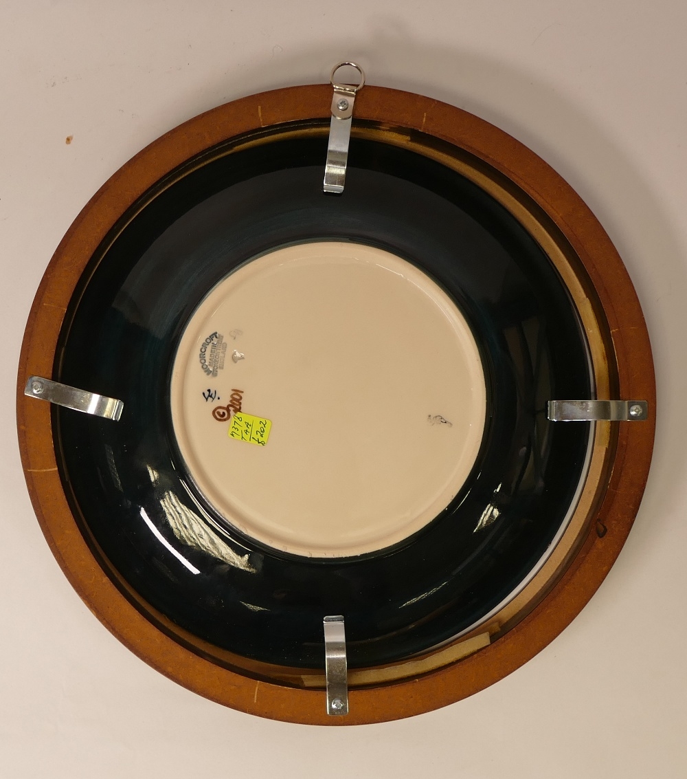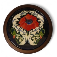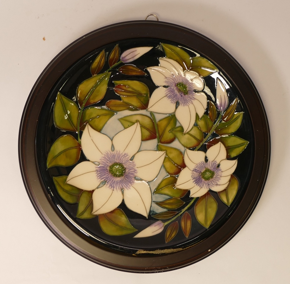 Moorcroft Plate 783/10, 'Sophie Christina' designer Sian Leaper on dark blue ground measures 30cm including surround with box