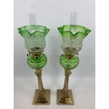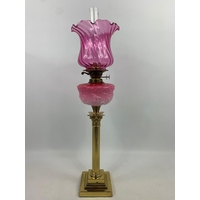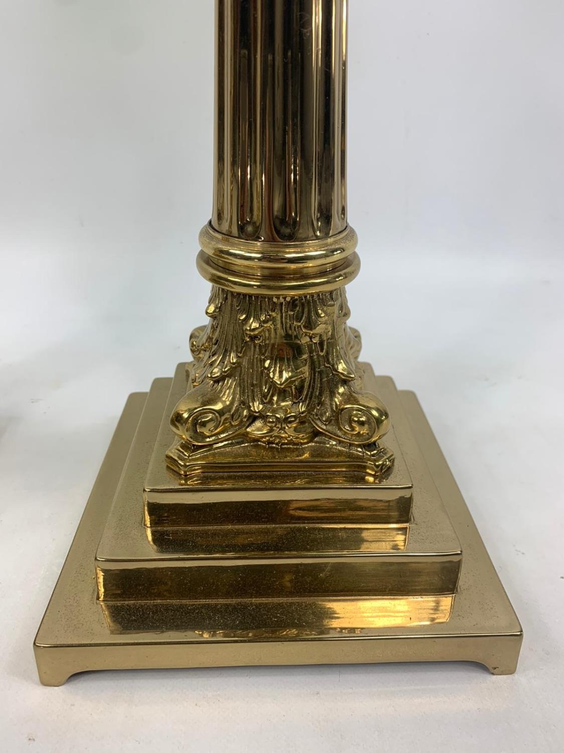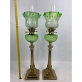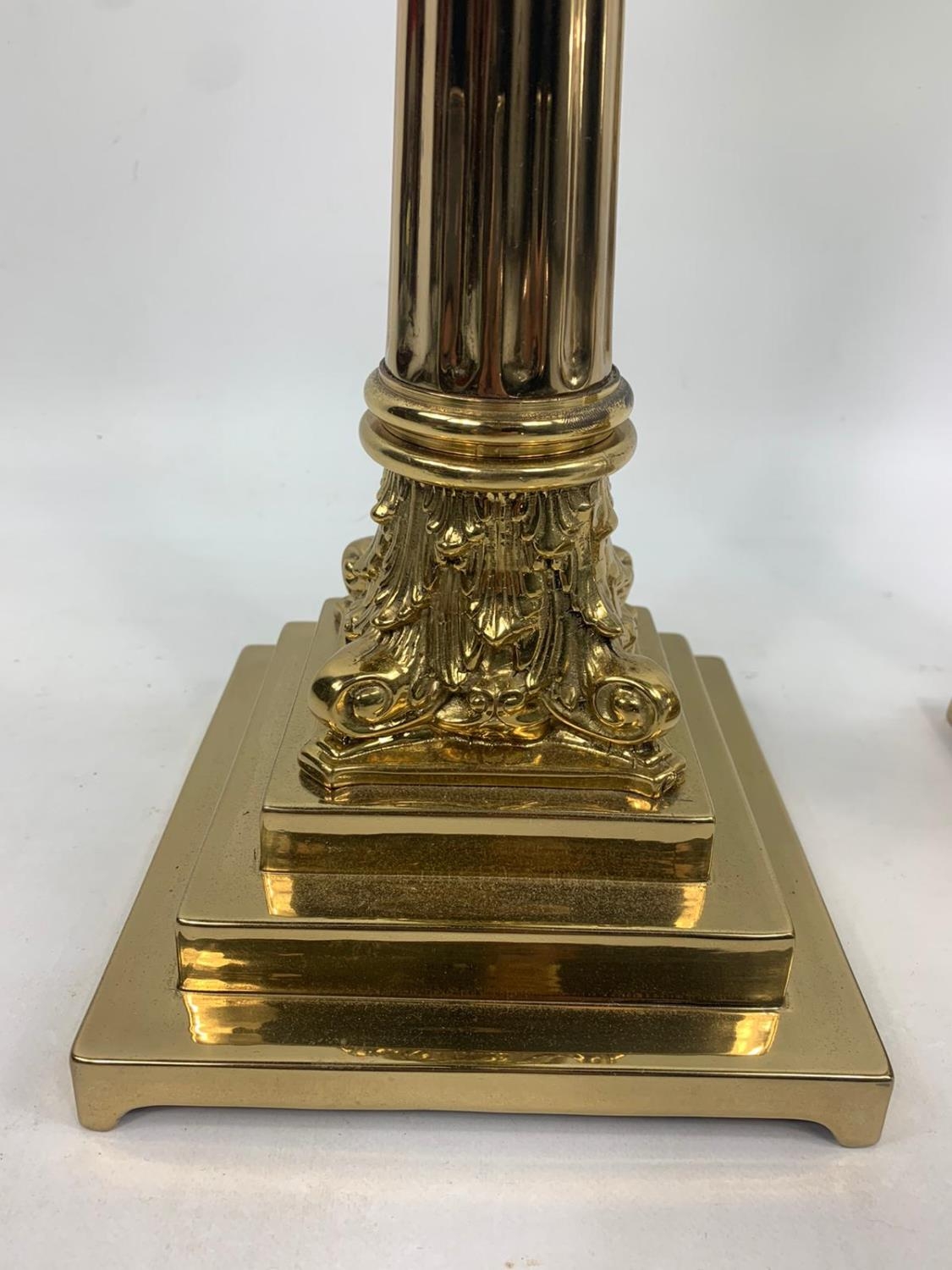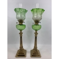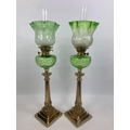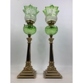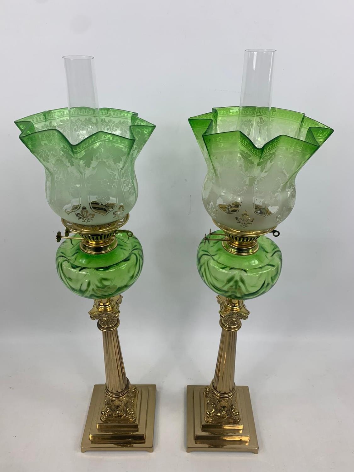 Pair of tall Victorian style oil lamps with Corinthian style pillars, 84cm