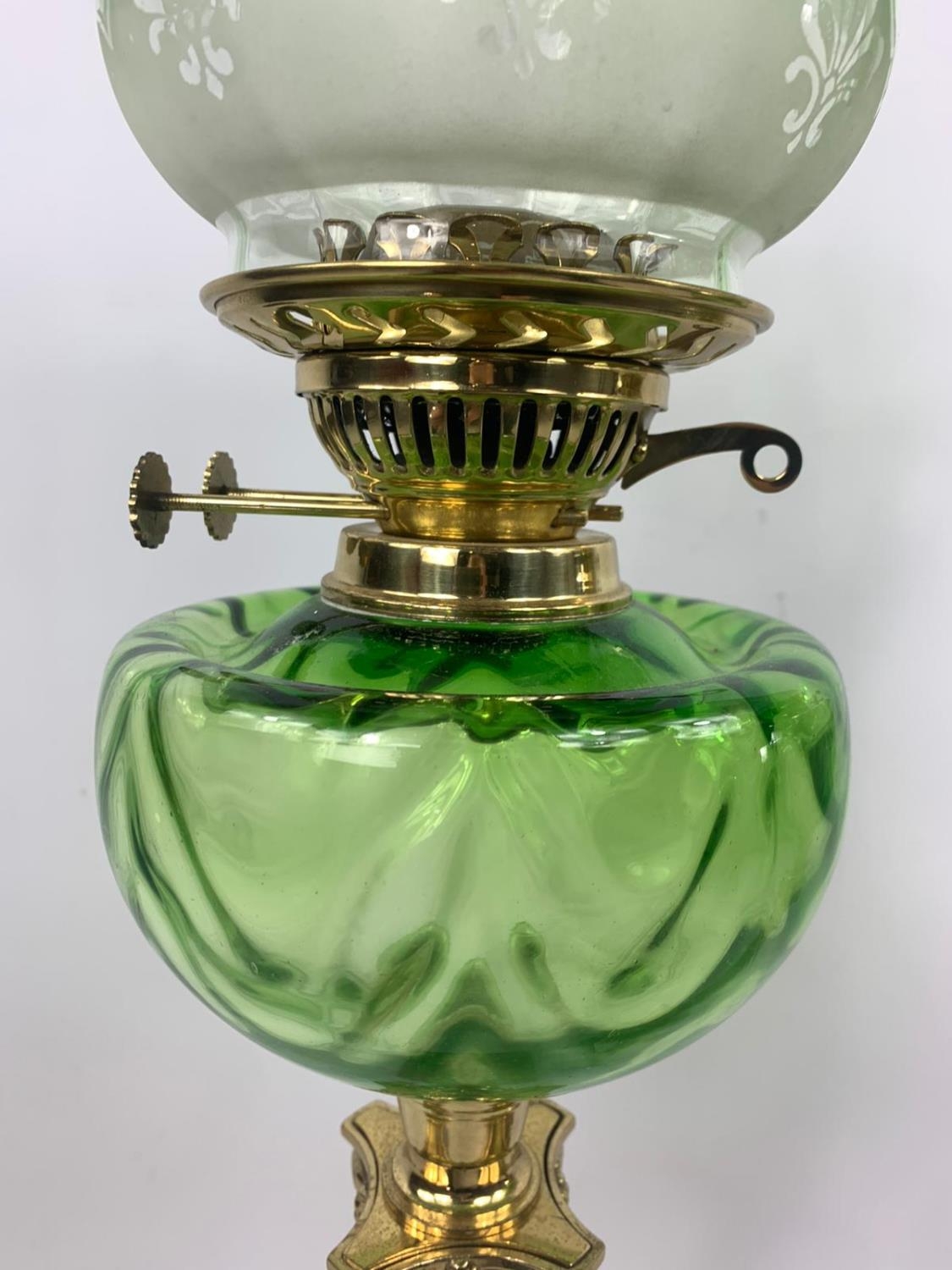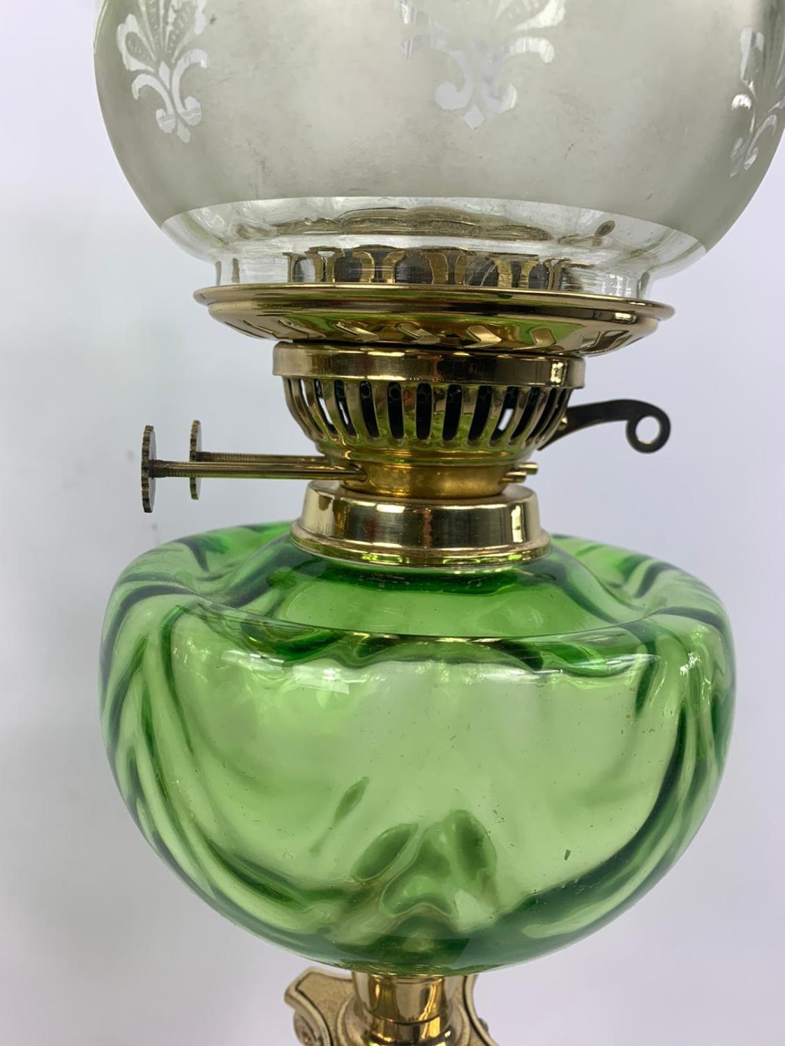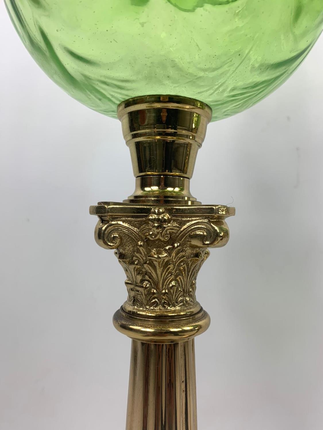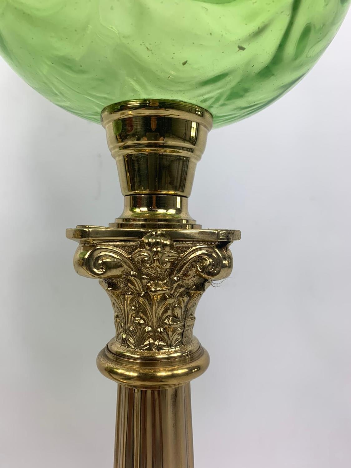 Pair of tall Victorian style oil lamps with Corinthian style pillars, 84cm