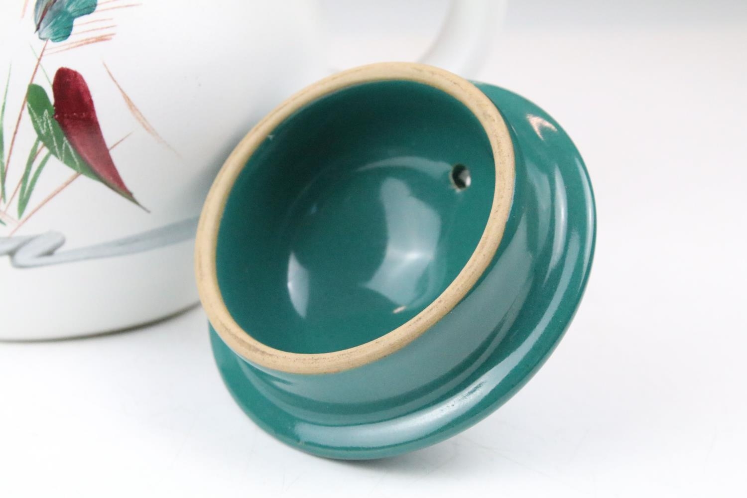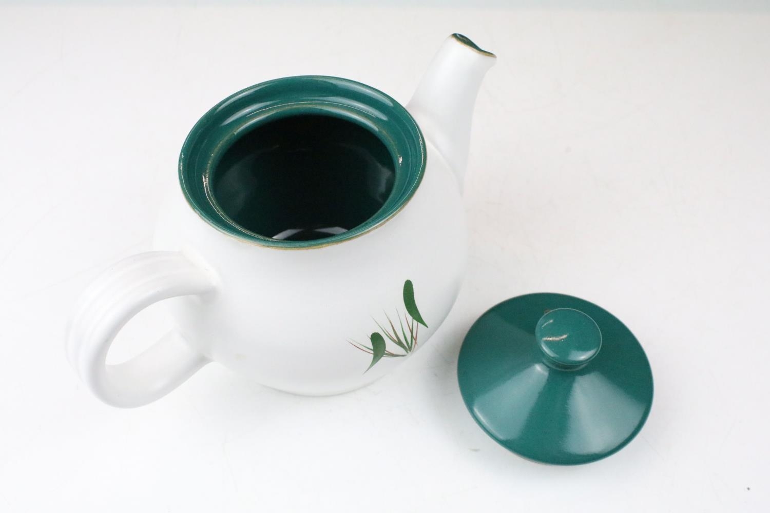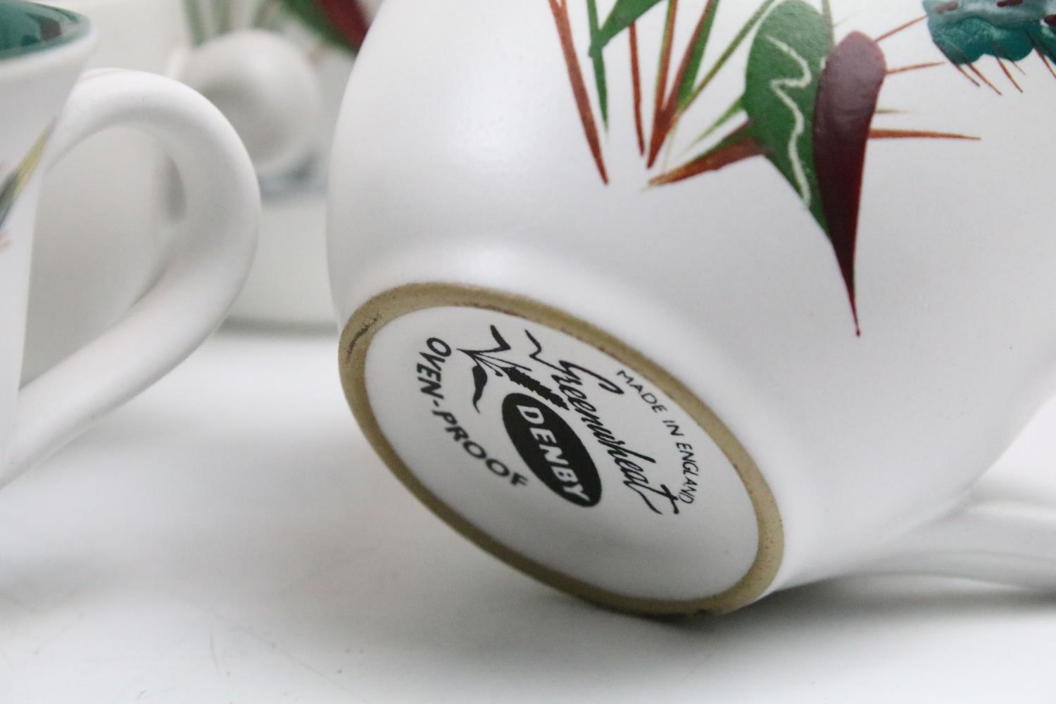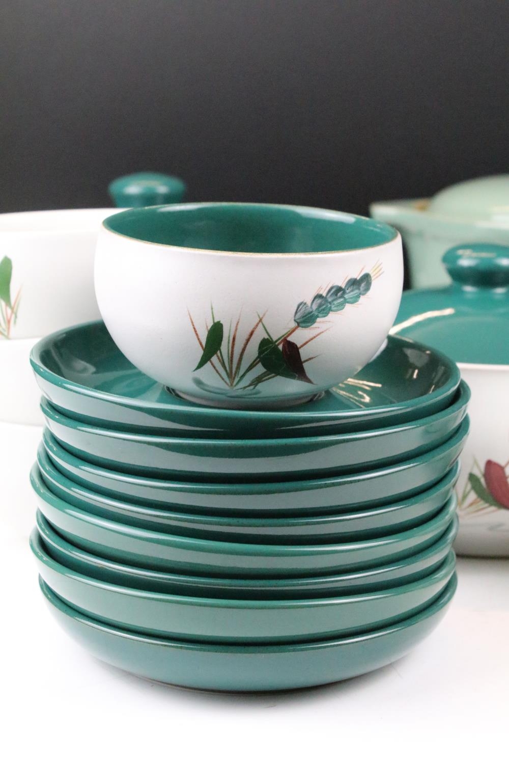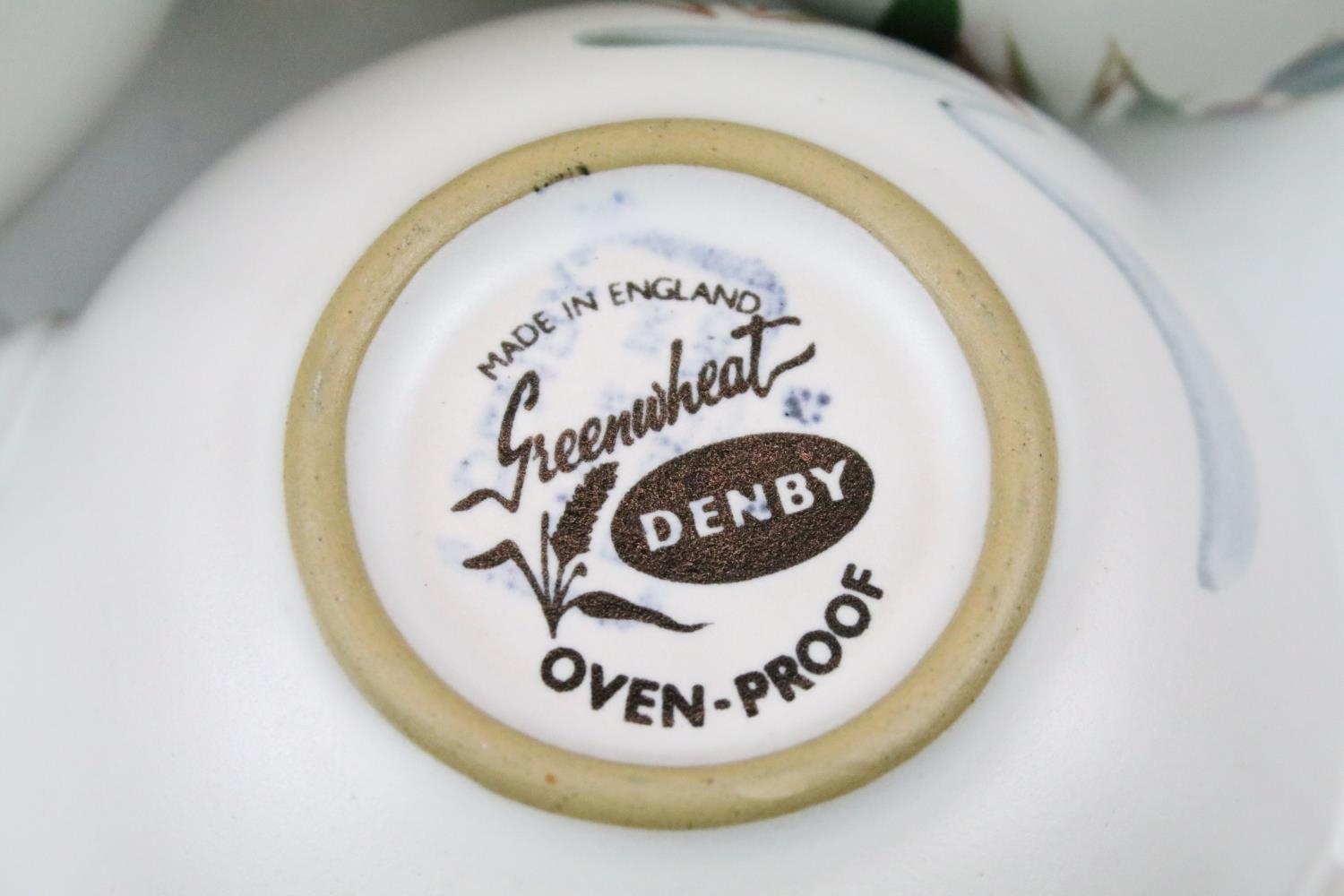 Denby 'Greenwheat' pattern ceramics to include a tea set and tureens, plus a Denby green glazed covered dish. (2)