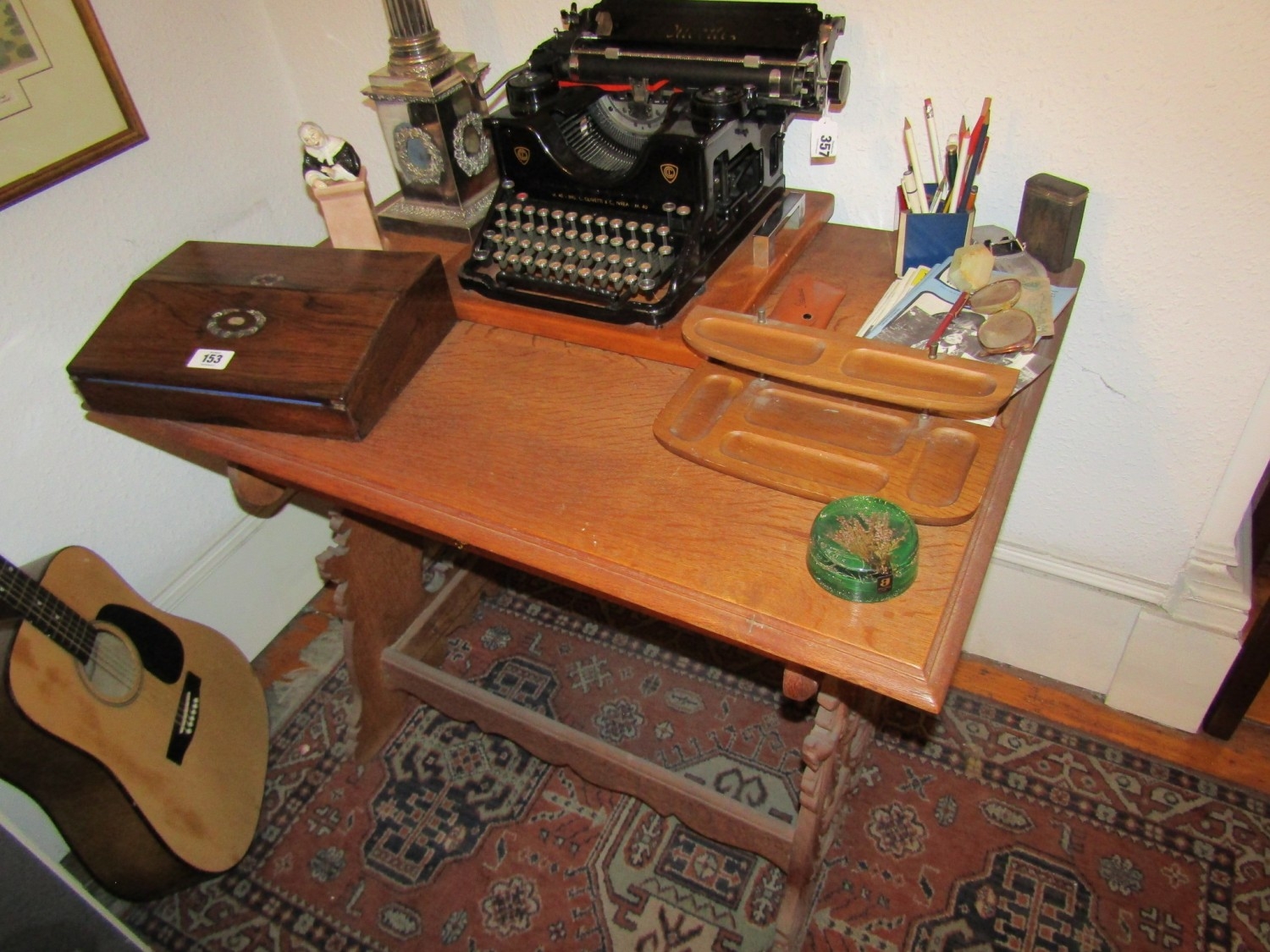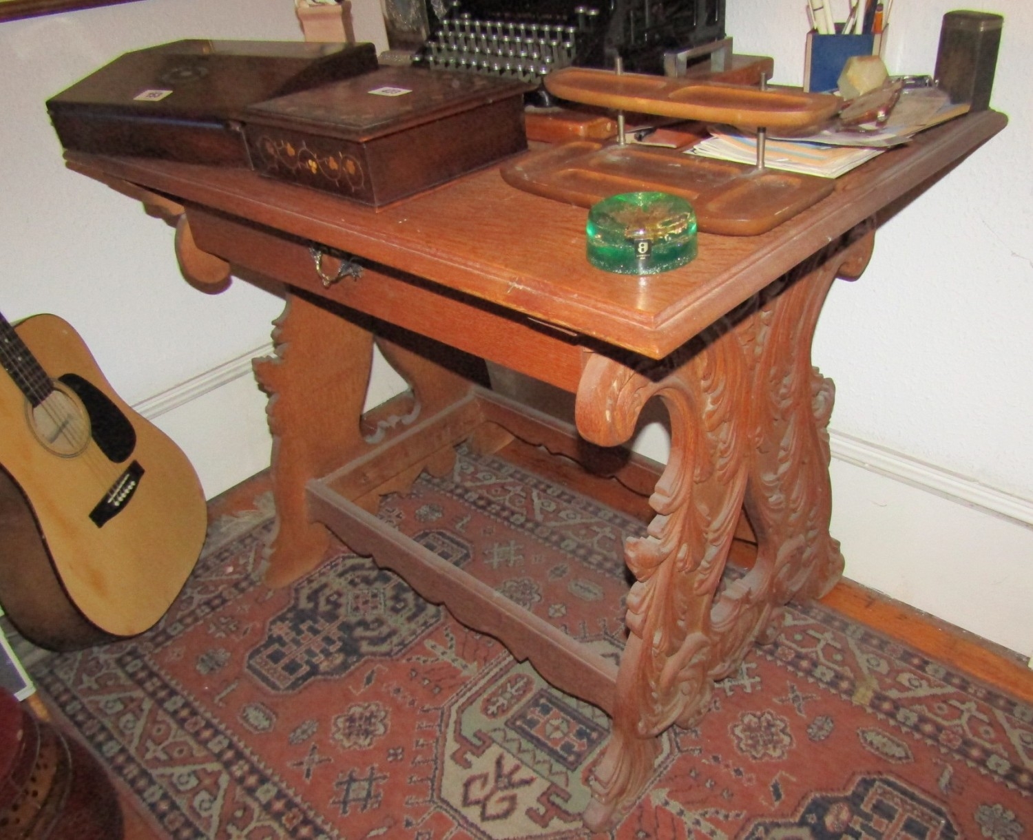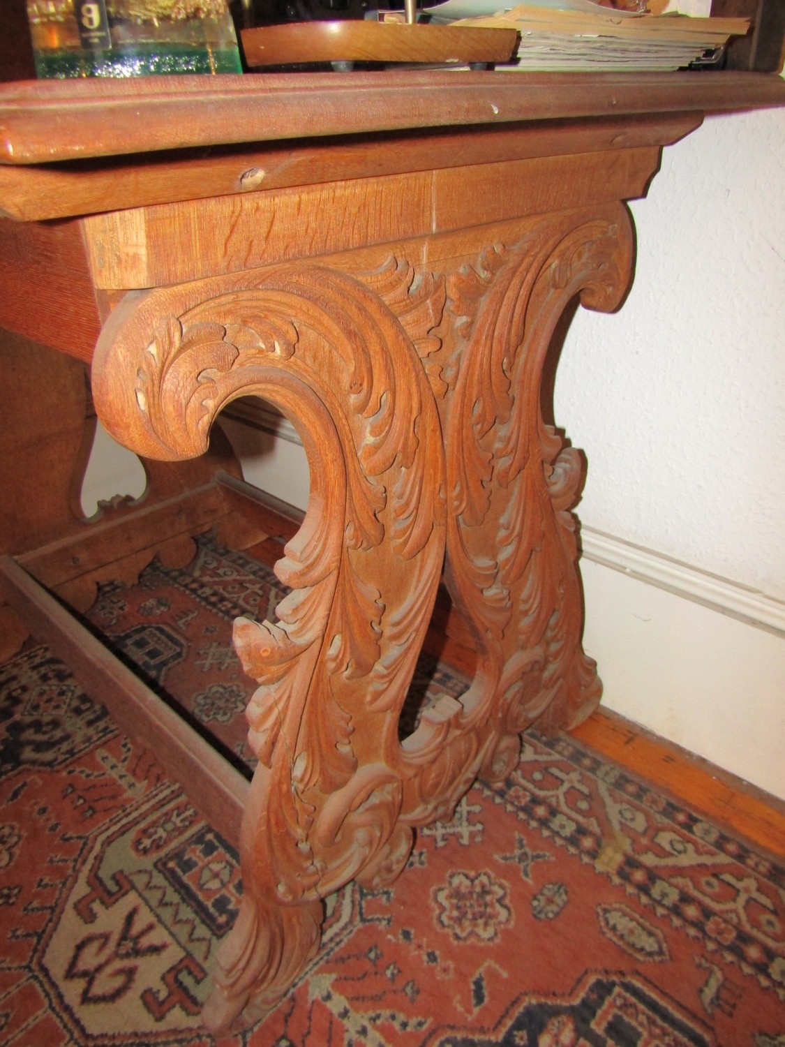 Antique Carved End Table with Single Drawer Antique Approximately 4ft Wide