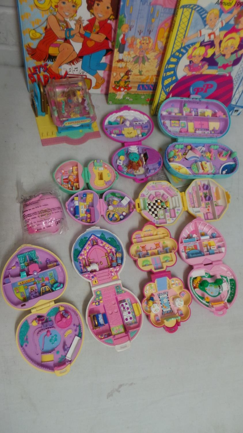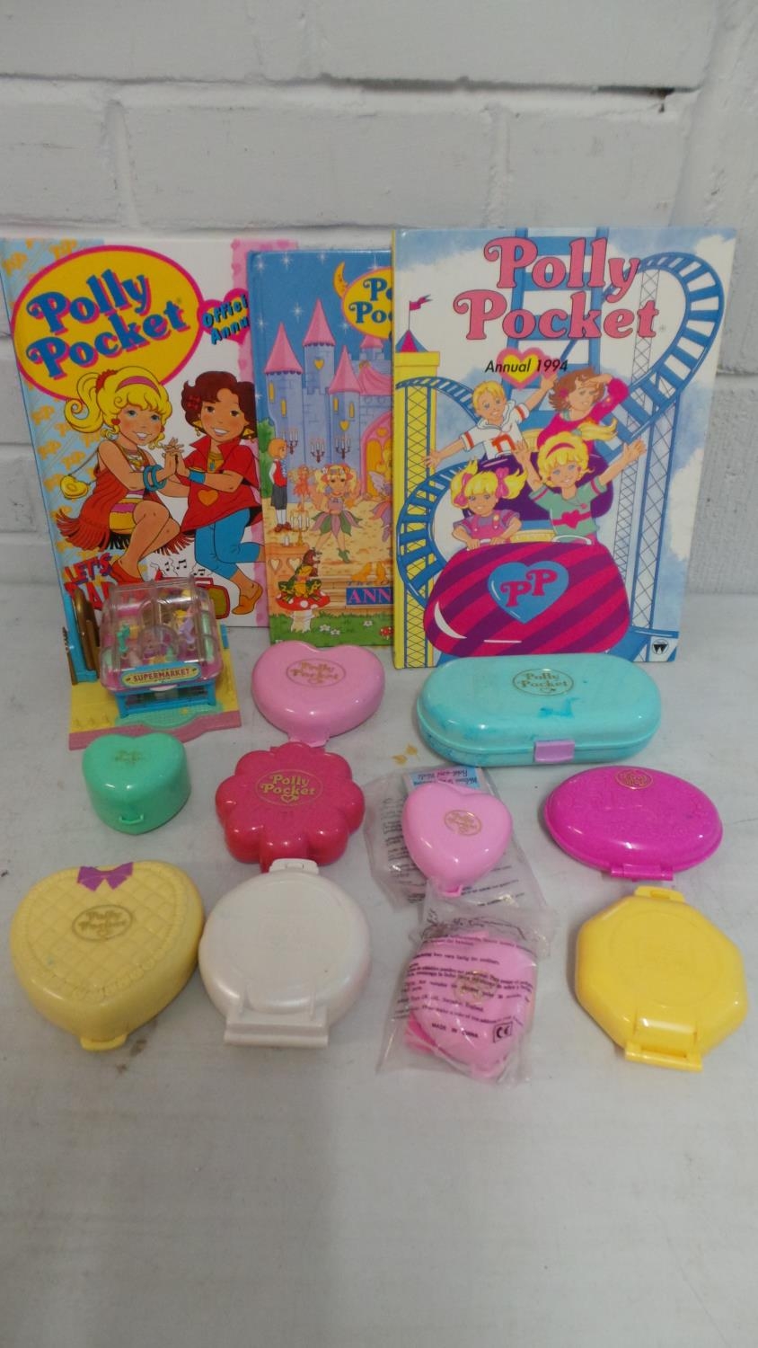 A selection of polly pocket playsets not checked for completeness together with annuals etc