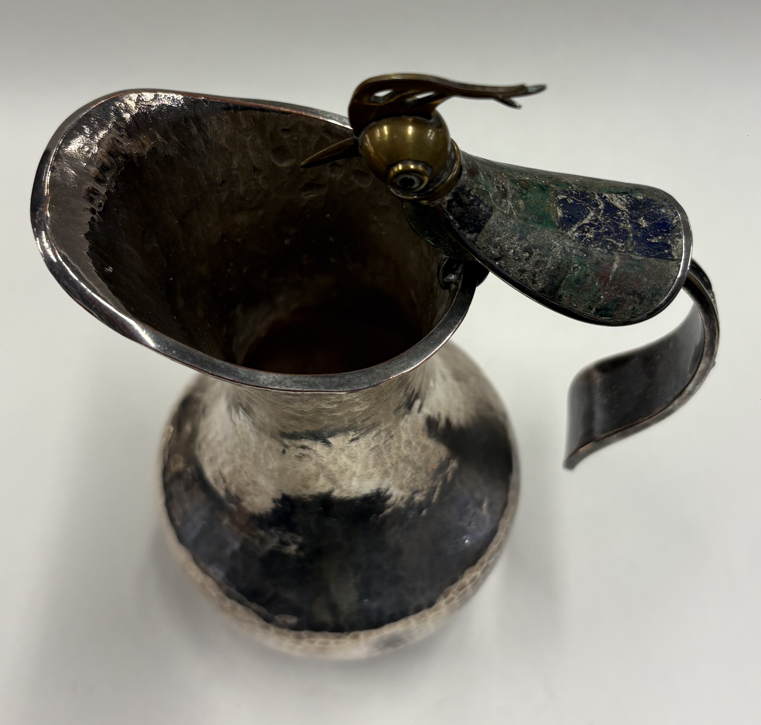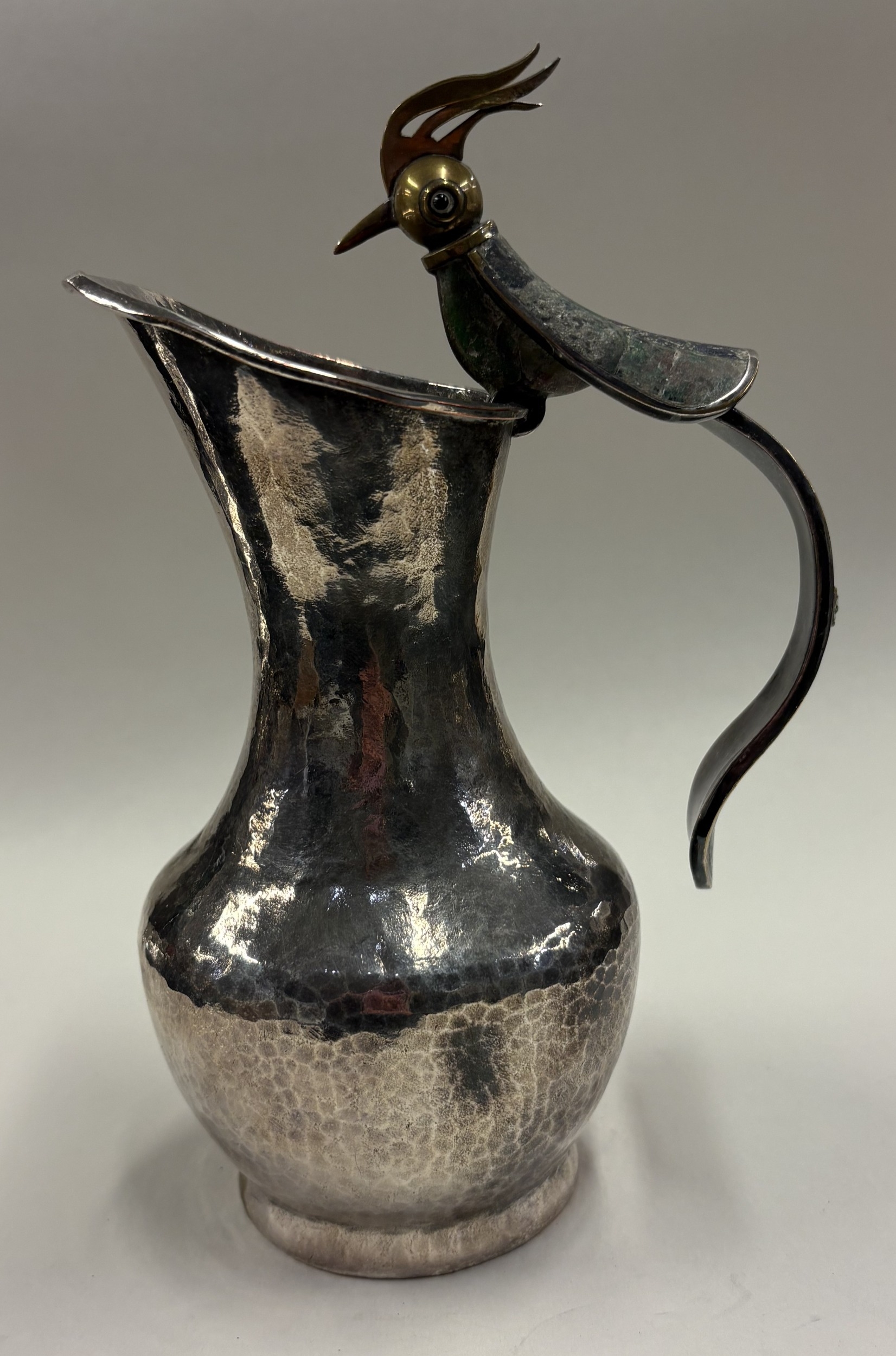 A silver-plated jug with handle in the form of a bird. Est. £30 - £40.